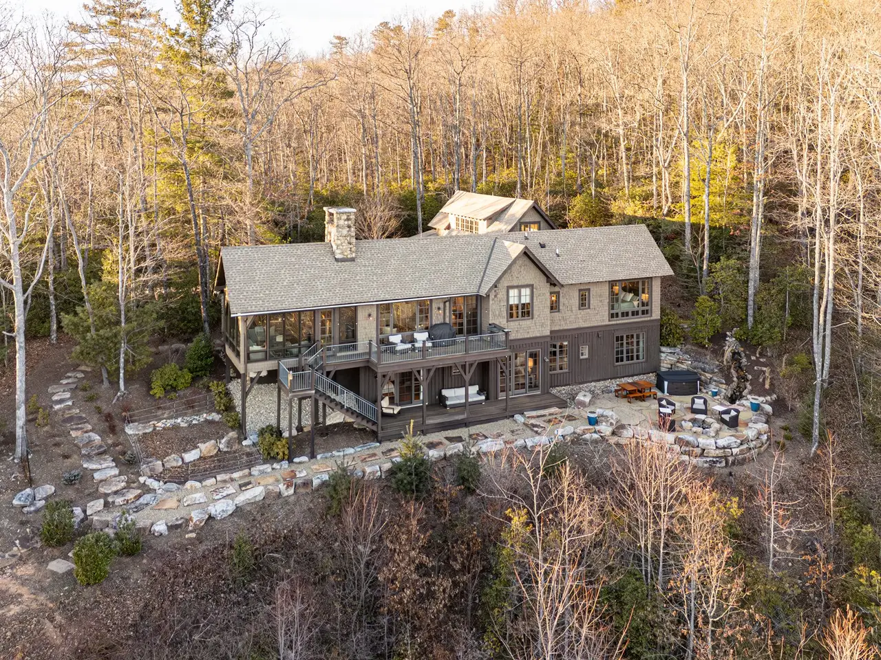 Picture postcard views and a modern mountain masterpiece in the exclusive Richland Ridge Conservation Community is ready for you. This stunning home conceived by Platt Architecture offers breathtaking long-range mountain views from nearly every room. Situated on one of only 25 home sites, this property is surrounded by over 500 acres of permanently protected land & river, ensuring privacy for generations to come. Tastefully curated features include reclaimed wood ceilings and exposed beams, leathered granite countertops and top-of-the-line Viking appliances. A light-filled four seasons room provides a serene space for relaxation or al fresco inspired dining. Retreat to the terrace level where a Finnleo cedar sauna, wine storage, and guest spaces await. Outside, an inviting patio with a built-in firepit and hot tub create the ideal setting for memorable gatherings. A full apartment above the garage offers privacy for guests. Ideally located in Lake Toxaway.