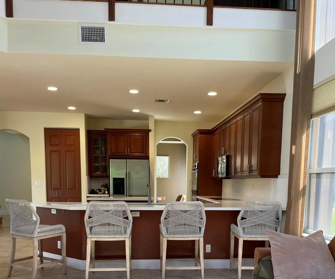 This splendid executive-style home is located in the Country Cove Estates community. As you enter the foyer and formal living room, soaring ceilings welcome you home. The home offers an exquisite layout with five bedrooms, 4 baths, and a den. The master bedroom is located on the first floor and has direct access to a pool area. Three of the bedrooms and a loft are located on the 2nd floor. The pool and patio overlook a lake. This beautiful home sits on a .37-acre lot and is ideal for entertaining.