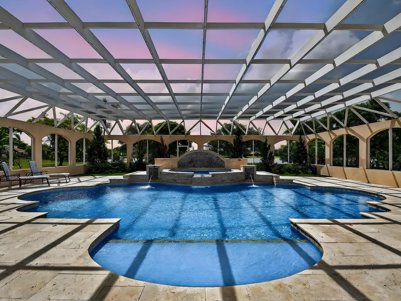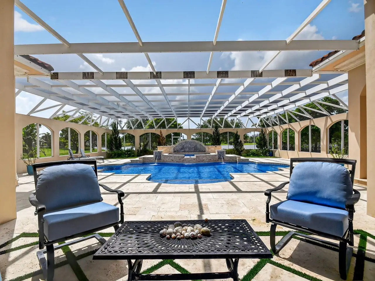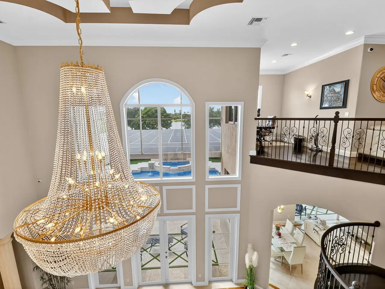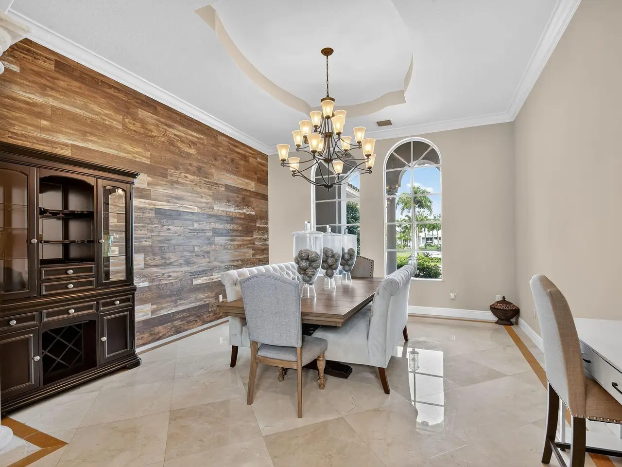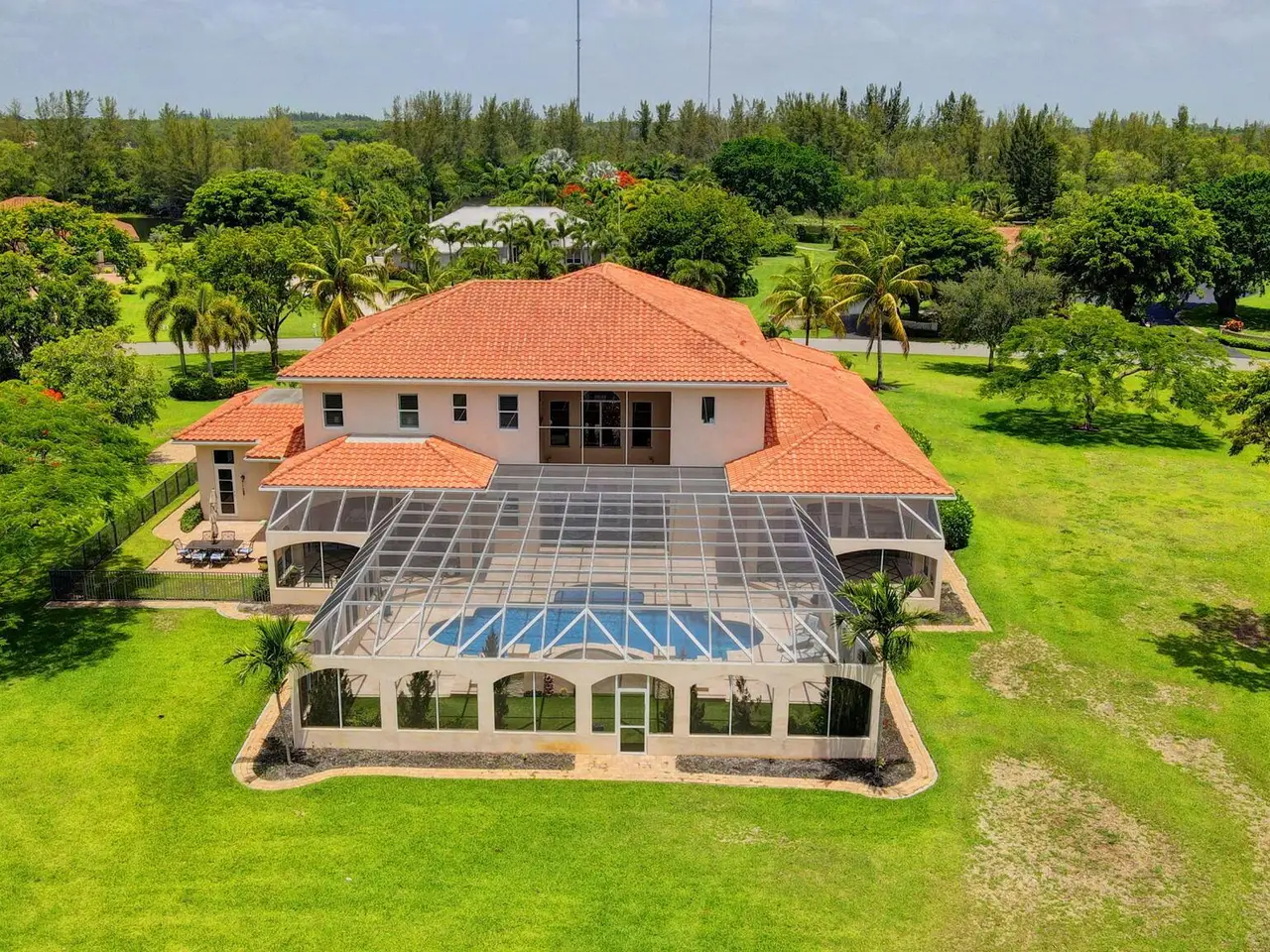 Casual elegance & exquisite craftsmanship define this magnificent custom-built home featuring 6 bedrooms, 7.5 bathrooms & 4 car garage. Situated on over 2 acres, the estate welcomes you with a wide circular driveway & fountain centerpiece. In the grand foyer, gleaming marble floors, a dazzling crystal chandelier & soaring ceilings create an unforgettable first impression. A breathtaking winding staircase sets the tone for the sophisticated design found throughout. The chef's island kitchen is a culinary dream, with 2 wall ovens, a Sub-Zero refrigerator & gas stove- perfect for entertaining or everyday luxury. Nearly every main room showcases a unique ceiling design, adding character & charm at every turn! Outside is your resort-style oasis. The pool/spa area is framed by elegant walled arches, creating a serene Mediterranean retreat. Multiple balconies & patios offer the perfect setting for al fresco dining, relaxation or entertaining. Wander down to the peaceful lakeside patio and soak in the views. Equestrians, your horses are welcome! Despite the serene seclusion, this exceptional home is conveniently located near restaurants, shops, cultural venues, & the Palm Beach International Airport. This one-of-a-kind estate is where timeless design meets modern luxury. Come experience it for yourself!