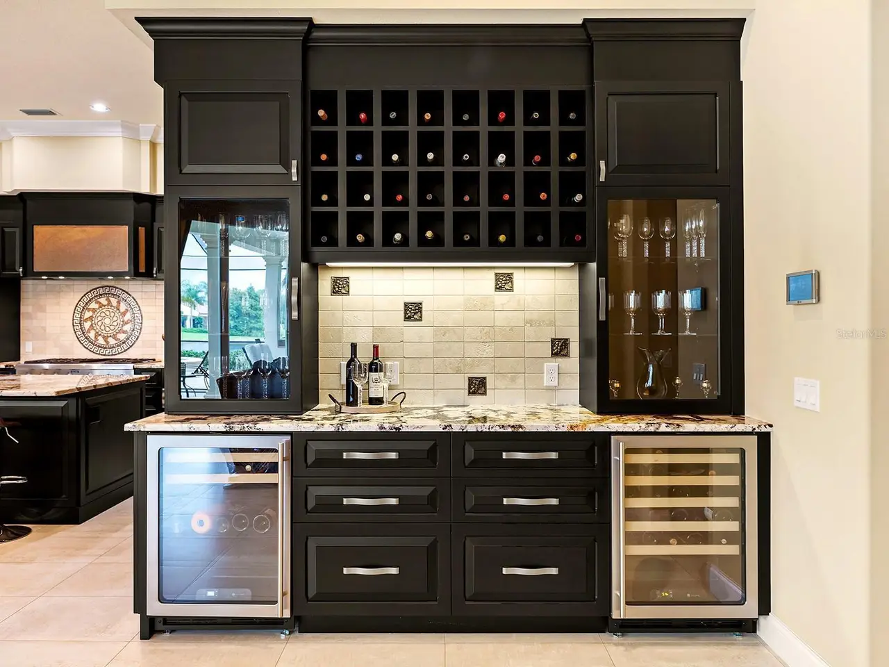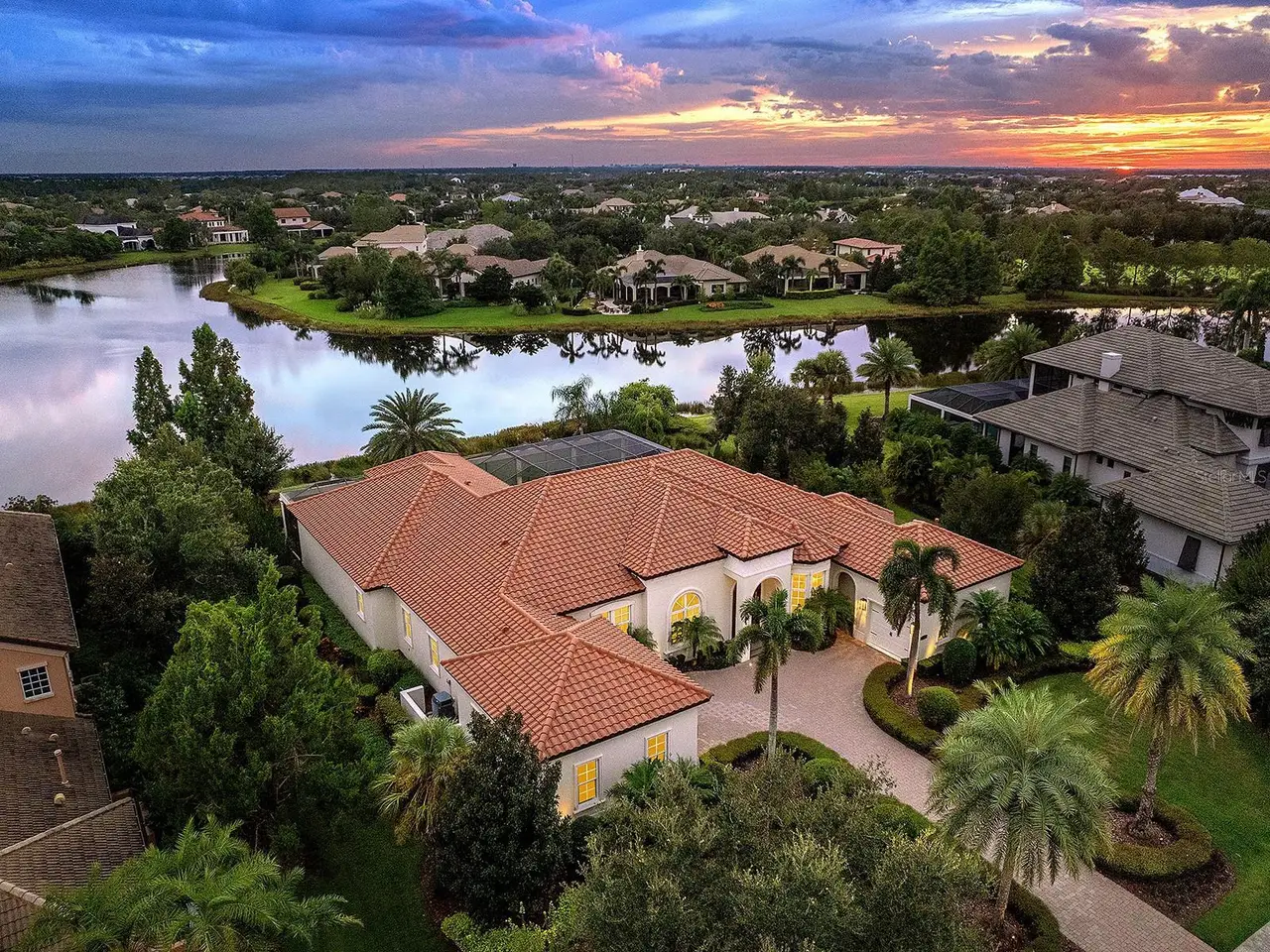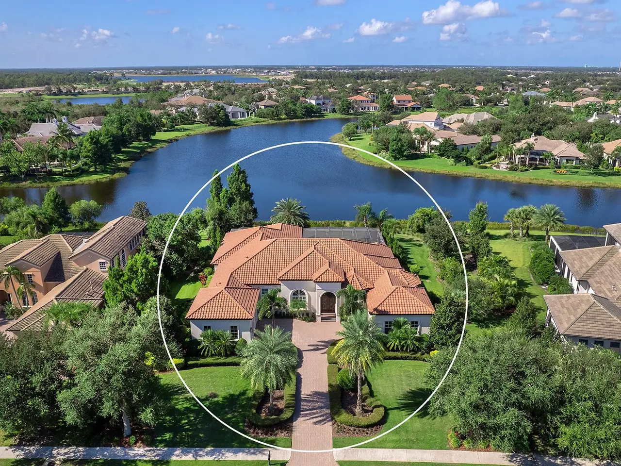 Located in the prestigious Lake Club, you will appreciate this custom Todd Johnston home on a prime 0.67-acre lot with southern lake views from the lanai and Linear Park right outside your front door. This peaceful setting is in the original and most desirable section of The Lake Club, known for its Tuscan-inspired charm, lush foliage, and interconnected lakes. Demonstrating a luxurious lifestyle, the hand-selected fine finishes in this home include Italian porcelain tile flooring, custom ceilings with crown molding, wide lake views, custom window treatments, custom entry door, in-ceiling speakers, and more in every room. The elegant floor plan offers versatile entertaining spaces from the formal living room with coffered ceiling and center-opening pocketing sliders, to the formal dining room, to the casual dinette with aquarium window, to the oversized family room with a wall of sliding glass doors, custom built-ins, and custom dry bar with two wine refrigerators. Outside on the shellstone paver lanai you’ll find a tranquil lakeside setting surrounded by classic colonnade screen enclosure plus sparkling heated pool and spa, and well-equipped outdoor kitchen. The kitchen is a true paradise with every upgrade imaginable including two islands with seating, custom cabinetry, and large walk-in pantry with shelving. The top-of-the-line appliance suite will be the envy of Michelin Star Chef’s with two Bosch dishwashers, two Thermador wall ovens each with separate warming drawers, Thermador gas cooktop with 6 burners and griddle, two U-Line wine refrigerators, built-in Thermador cappuccino maker, reverse osmosis, and split 30” Thermador freezer and refrigerators. If you’re searching for respite and relaxation, you will almost never need to leave your primary suite with a spacious bedroom, separate seating area, French doors to the lanai, walk-in closet with built-in safe, and custom morning bar with refrigerator and bar sink. Enjoy a five-star spa at home in the oversized primary bathroom with dual split vanities, separate make-up vanity, another walk-in closet, dual water closets for extra privacy, central whirlpool tub, and roman-style walk-in shower. Your guests won’t be left wanting with two spacious guest suites large enough for king beds and outfitted with walk-in closets and en-suite bathrooms with walk-in showers. When you’re ready to work select from the front study with double doors, or the rear office with a private en-suite bathroom and plenty of space for a future closet if you prefer a 4th en-suite bedroom. Fun, flexibility and function can be found in the separate bonus room and media room – including a custom theatre with 133” screen and 7.1 surround sound system. Rounding out this impressive estate is two powder bathrooms for guests, laundry with plentiful storage, two-car garage bay with direct access, and one-car garage bay with golf cart parking area and covered breezeway. Peace of mind is secured with impact windows and doors throughout, water filtration system, smart home integrations, zoned AC system, 2025 freshly painted exterior, and 2025 epoxy garage flooring. The Lake Club is an exclusive premier, gated community with a Grande Clubhouse, restaurant, pool, tennis, pickleball and more.