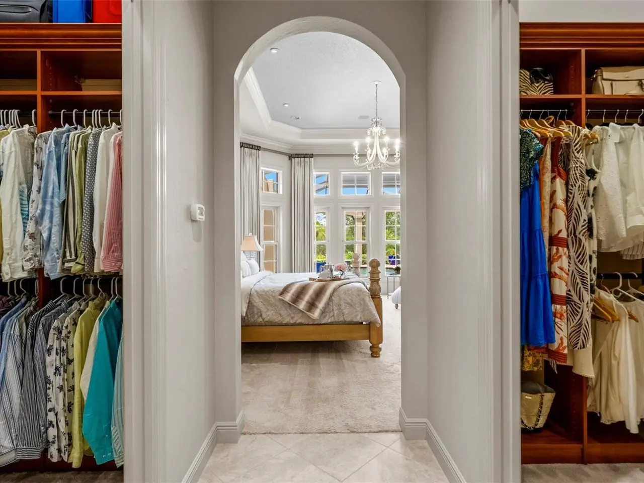 This spectacular Lakewood Ranch Country Club residence built by John Cannon offering three bedrooms and three-and-a-half baths is perfectly situated on an estate-sized corner homesite of more than three-quarters of an acre, surrounded by pristine gardens and lush landscaping. Upon arrival, you're greeted by magnificent iron doors that open into a grand, open-layout living area where tray ceilings, crown moldings, and beautiful French doors frame a dramatic floor-to-ceiling stone fireplace, setting a tone of refined elegance. The gourmet kitchen is both beautiful and functional, boasting striking wood cabinetry, gleaming quartz countertops, and high-end appliances that include Wolf and Thermador ovens, a Sub-Zero refrigerator, and a built-in wine cooler. Whether you're preparing a casual meal or hosting an elaborate dinner party, this kitchen delivers performance and style in equal measure. Entertainment reaches new heights in the state-of-the-art home theater, where a 128-inch curved masking screen by Stewart Screens, 4K Sony projector, and invisible in-wall Klipsch surround-sound system immerse you in every scene, while plush leather recliners ensure ultimate comfort. When it's time to unwind, the expansive master suite awaits, complete with custom closets and a spa-inspired bath featuring a frameless glass shower, deep soaking tub, and dual vanities. Two additional guest suites, each with their own private bathroom, offer luxury and privacy for visitors. Step outside to discover a 2,200-square-foot screened lanai laid in gorgeous wood-look tile planks, where a saltwater pool and spa invite refreshing dips and relaxation. An outdoor kitchen provides the perfect backdrop for alfresco dining and social gatherings. Meticulous construction details—including foam insulation, a Generac backup generator, and LED lighting controlled by an integrated Crestron smart home system—ensure comfort, efficiency, and peace of mind. The climate-controlled third garage adds practical convenience, rounding out a home that truly defines country club living at its finest....