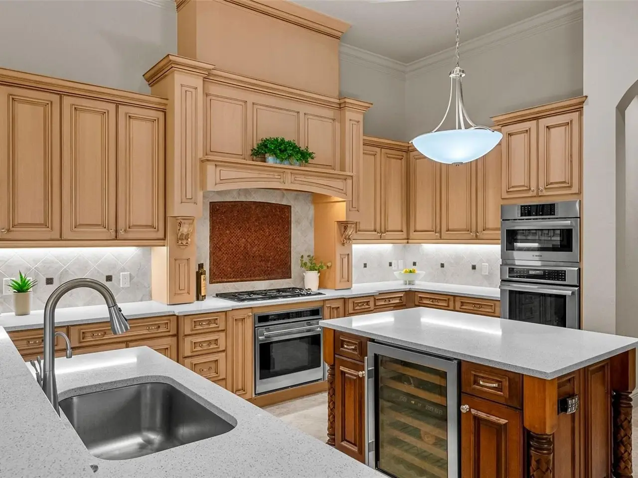 • Gourmet kitchen with wood cabinetry and high-end appliances