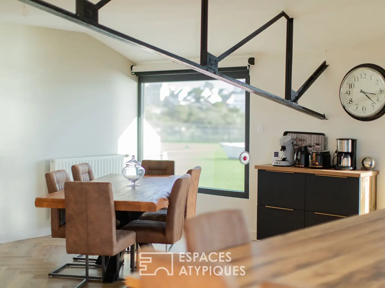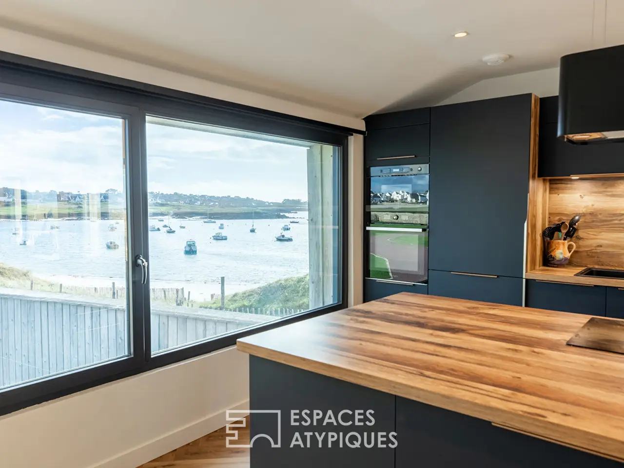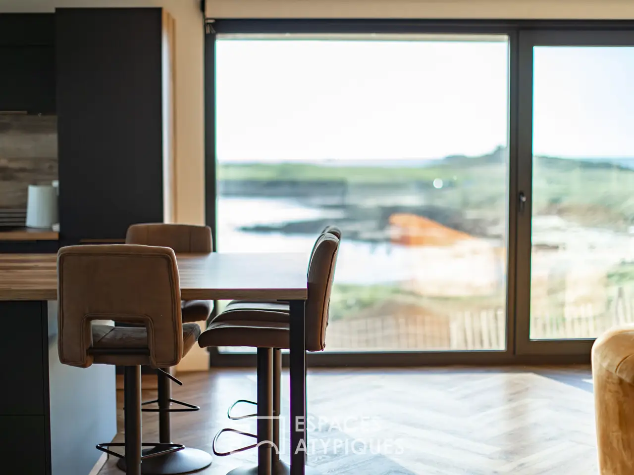Facing the Iroise Sea, in the sought-after town of Lampaul-Plouarzel, this exceptional beachfront property stands as a true ode to light and space. Here, the ocean is ever-present, painting a magnificent panorama of the islands and the ever-changing hues of the Breton coastline. A former warehouse reinvented as a residence, the property offers over 560 sqm of living space divided into four apartments of approximately 140 sqm each. Two of these have been completely renovated in a contemporary and welcoming style, where comfort blends seamlessly with the raw beauty of industrial architecture. The first, designed as a loft, features a vast, light-filled living room with bay windows opening onto the ocean. Herringbone parquet flooring, exposed beams, and a kitchen with a central island create a living space that is both elegant and inviting. Adjoining this is a master suite with a spacious dressing room and bathroom. Two rooms that can be converted complete this property. The second apartment captivates with its clean lines and generous proportions, inviting relaxation with a sea view. It comprises a spacious living area with a lounge, dining room, and open-plan kitchen offering a lovely panorama of the nearby sea, as well as bright bedrooms and a bathroom. The two other apartments, ripe for reinvention, offer exceptional potential, allowing free rein to the creativity of a future owner: guest spaces, a studio, or family extensions. A large open-sided outbuilding connects the apartments, housing a terrace, workshop, jacuzzi, and garage. The exterior extends into a vast enclosed and landscaped garden, with over 150 sqm of outbuildings offering a multitude of possibilities: creating a separate office, an artist's studio, a wellness area, or any other imaginative project. The beachfront location offers breathtaking sea views from every corner of the property. A rare setting, imbued with serenity and character, where the authenticity of the place shines through. It blends harmoniously with the energy of the coastline. A unique and inspiring property in Lampaul-Plouarzel, designed for those who dream of an atypical seafront property, combining nature, space, and creativity. Energy rating: C / Climate rating: C. Estimated annual energy costs for standard use: between EUR4,750 and EUR6,500 per year. Average energy prices indexed on January 1, 2021, 2022, and 2023 (including subscriptions). Information on the risks to which this property is exposed is available on the Georisques website: https://www.georisques.gouv.fr. Contact: Laurent 33 6 62 33 89 91. RSAC: 852199579 BREST. Agency fees: 5% including VAT, payable by the seller for properties over EUR200,000. Flat fee of EUR10,000 including VAT, payable by the seller. for properties under EUR200,000.