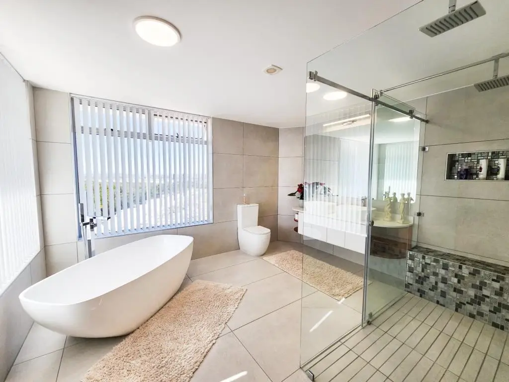 Triple-Storey Luxury Home in the Exclusive Paradise Beach Estate Shared Mandate Step into elegance and modern sophistication with this exceptional triple-storey residence, perfectly positioned in the prestigious Paradise Beach Estate. Designed for discerning buyers who appreciate fine finishes, expansive living spaces, and breathtaking ocean views, this home offers refined coastal living at its best. The home is nearly new, showcasing modern interiors, quality craftsmanship, and seamless flow throughout. A private lift and a striking staircase made from 20mm solid Saligna wood highlight the attention to detail carried through in all woodwork and skirtings. Main Living Level: The open-plan living and dining area features stacker doors that lead to a spacious patio overlooking the beachGÇöideal for entertaining. The kitchen includes a central island, ample cabinetry, a filtered tap, and a wash-up basin. It is equipped with a gas oven and hob, an electric oven, and flows into a separate scullery, pantry, and laundry wall. Two generously sized bedrooms, each with its own en-suite bathroom, are also on this level. One of the en-suites includes a gas geyser. A guest WC and wash hand basin add further convenience. Top Floor: The upper level offers two additional bedrooms and a kitchenette fitted with a small gas hob and built-in oven/microwave. Stacker doors open to a second patio with a built-in braai and panoramic views. A second built-in braai on the lower patio provides even more entertainment space. Features Throughout: All bedrooms include remote-controlled ceiling fans, TV points, and lighting Double tandem garage with workspace, toilet, WHB, storeroom, and worktop Ample visitor parking Intercom system installed Future-ready for a swimming pool and solar system (DB board and conduits in place) Flatlet: A fully self-contained one-bedroom flatlet includes its own private courtyard and a fully equipped kitchen with electric stove and hobGÇöperfect for guests or rental income. Extras: Some select furniture items are available as optional extras. This is a rare opportunity to own a beautifully appointed coastal home in one of the West CoastGÇÖs most exclusive estates, just steps from the beach. Call me for a private viewing!