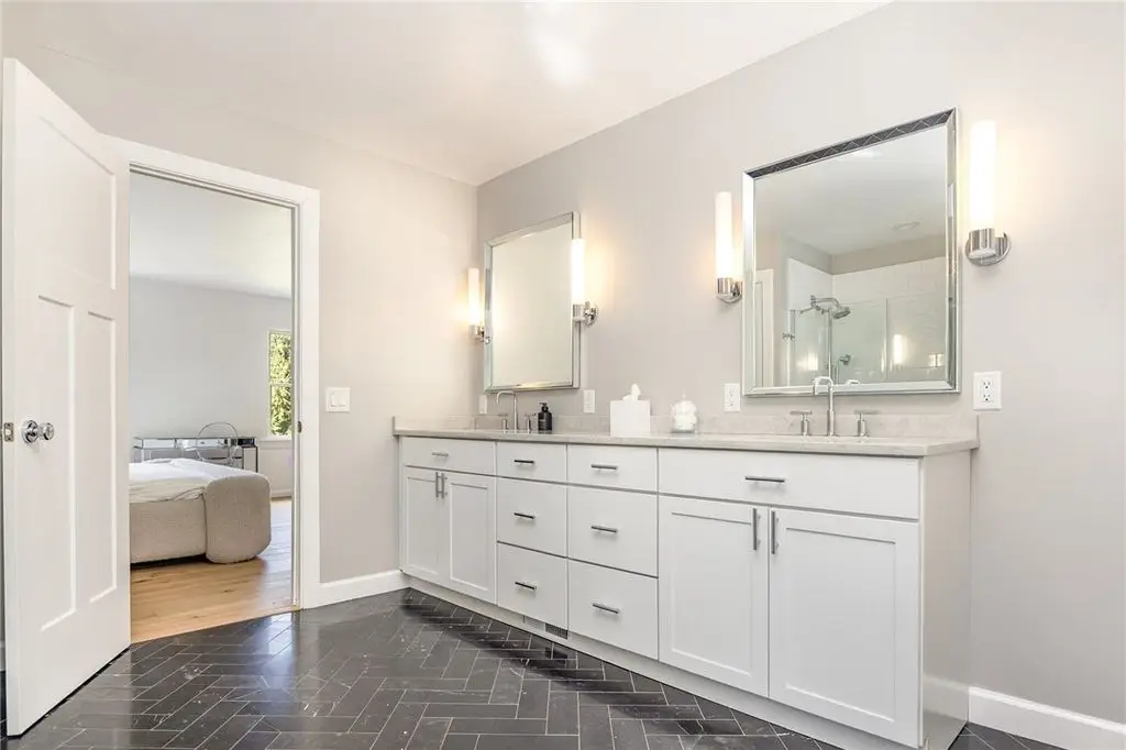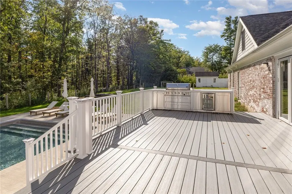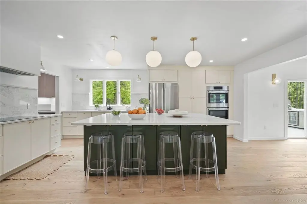 Step into timeless elegance with this completely remodeled home, taken down to the studs, & designed to meet the highest standards of comfort and style. Featuring Francois & Co. French white oak floors throughout the first and second levels, every detail speaks of refined taste & quality craftsmanship. The sprawling layout offers versatile spaces to live, work, & entertain, tailored to fit your lifestyle with effortless grace. The heart of the home is the brand-new, open-concept kitchen that flows seamlessly into the dining & living areas. Custom cabinetry, with Rejuvenation solid brass hardware, adds a touch of understated luxury, while the expansive island provides ample prep & gathering space. Enjoy top-of-the-line Bosch appliances, including a double oven, & a fully equipped butler's pantry complete with an additional sink, dishwasher, & refrigerator - making hosting effortless. The first floor primary suite is a true sanctuary, designed for comfort & privacy. There is a custom walk-in closet & a spa-inspired bathroom with Toto bidet, complete with high-end finishes, & private laundry room. The suite features a beautifully appointed second-floor library featuring custom built-in bookcases & sophisticated Visual Comfort brass library sconces. In addition to the main living areas, the first floor includes a beautiful private office that could also serve as a warm and inviting family room. The second floor features a spacious additional primary, with an updated bathroom & walk-in closet. Three more well-appointed bedrooms & updated full bath. A large bonus room above the garage is perfect for a playroom, home office, or media room. The fully remodeled walk-out basement has been rebuilt with new flooring, walls, lighting, and paint. A brand-new full bathroom makes a perfect media room or guest suite. Ample storage and direct access to the beautiful backyard make this level practical. Enjoy the stunning, fully upgraded backyard oasis. The highlight is a 40' x 20' in-ground, heated saltwater pool, fenced yard, new Trex deck, & custom outdoor kitchen, & new bi-fold door system, seamlessly connect indoor & outdoor living spaces.