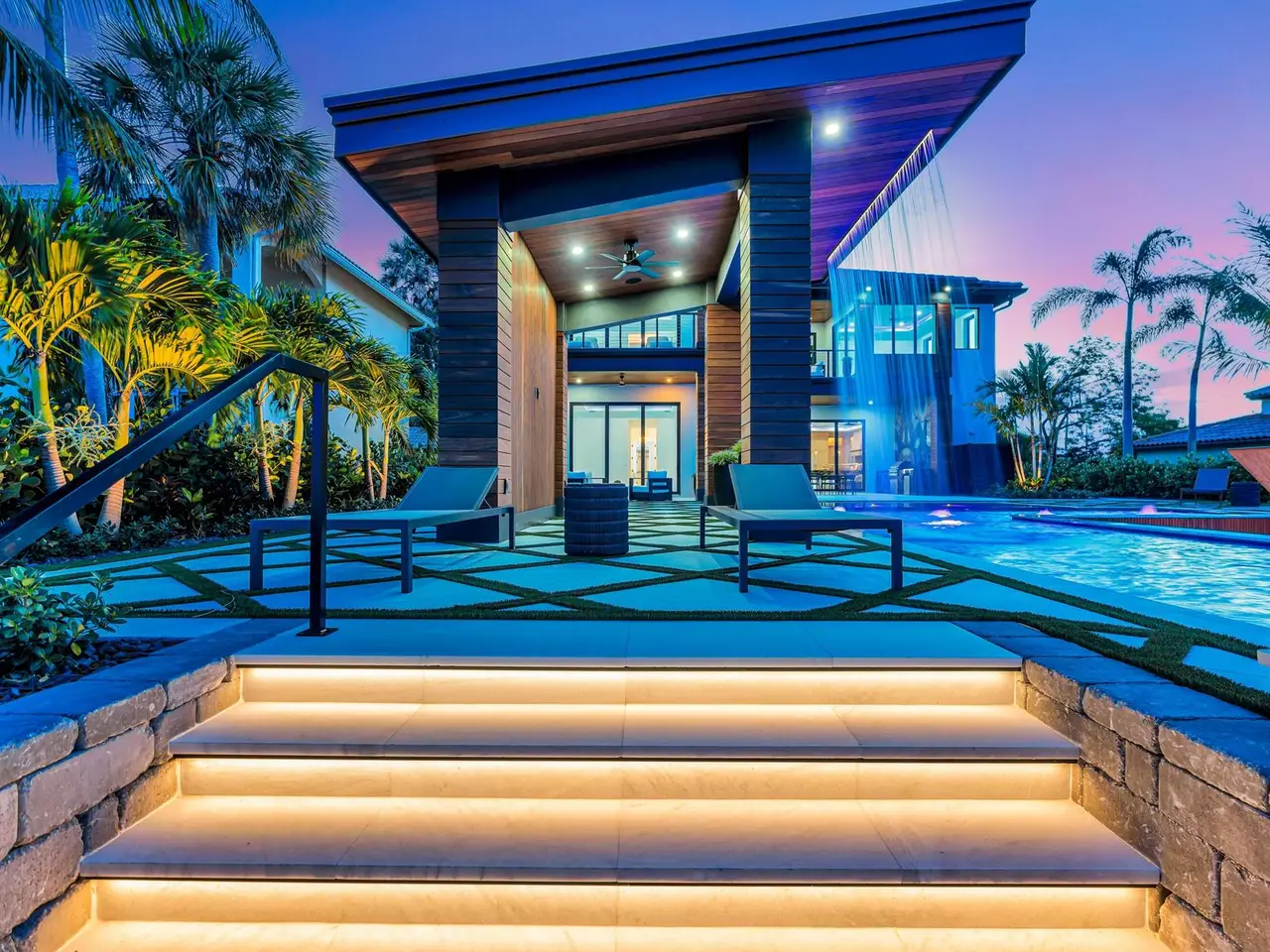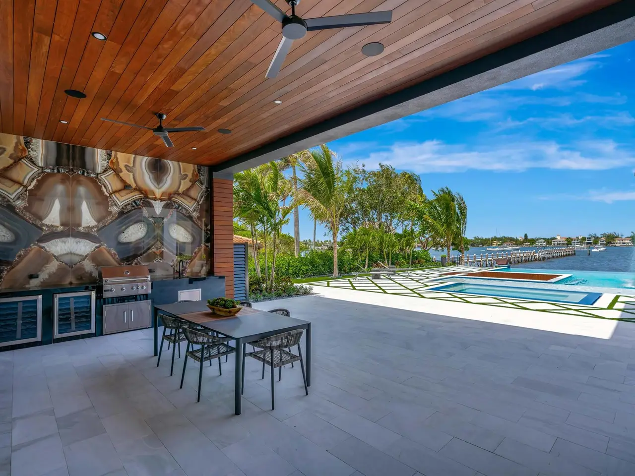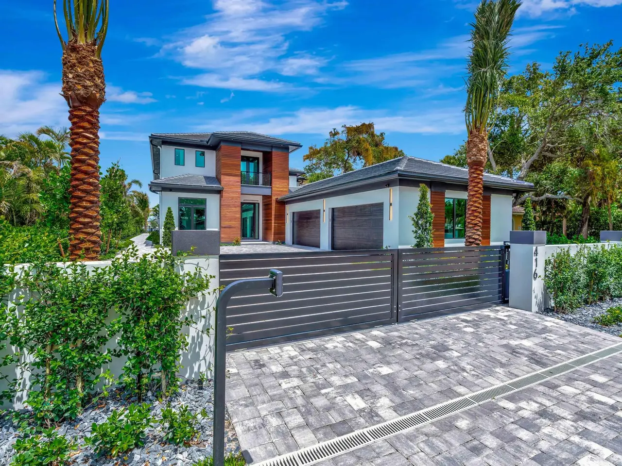 Brand-new gated intracoastal estate in prime Lantana location! Brand new 385 foot dock with 32k boat lift and pilings to tie up your very large vessels. This is the lowest price per square foot new construction on the direct intracoastal in Palm Beach County! Walk to the beach, Eau Resort & Spa, and top dining spots. Just 1.5 mi to I-95, minutes to PBI & private jet access. This smart, energy-efficient compound offers ultimate privacy with unobstructed water views, upstairs/downstairs living rooms & master suites. Loaded with upgrades: Sonos, security, landscape lighting. Backyard is a showstoppera"$500K+ resort-style pool, sunken firepit, waterfall gazebo w/ 10 stools, and multiple fire features. Luxury living at its finest!