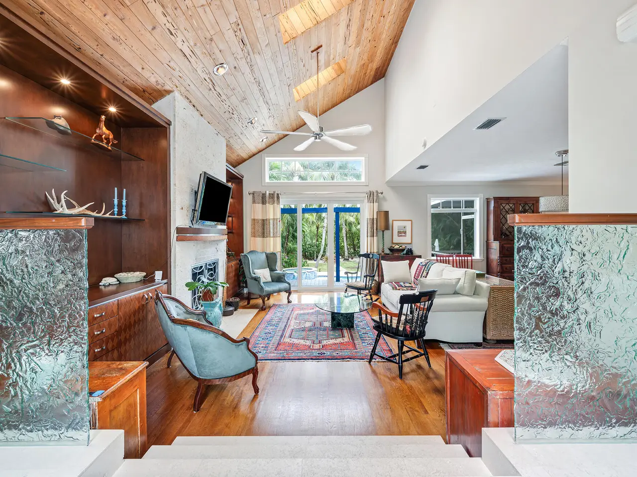 Key West-style compound on Hypoluxo Island between PB and Manalapan. Tropical plantings lead to a sunny great room overlooking a private oasis of palms and an inviting pool, spa and firepit. Beyond, along 70' of waterfront, a private dock with lift beckons. On offer is an open concept kitchen with gas cooktop, 400 bottle wine closet, screened porch, spacious master suite with deck, 3 or 4 additional bedrooms and 4 full baths. The separate guest cottage accommodates 4. Garage parking for 4+ with extra space for hobbies and storage. Beach access by foot, bike or car.