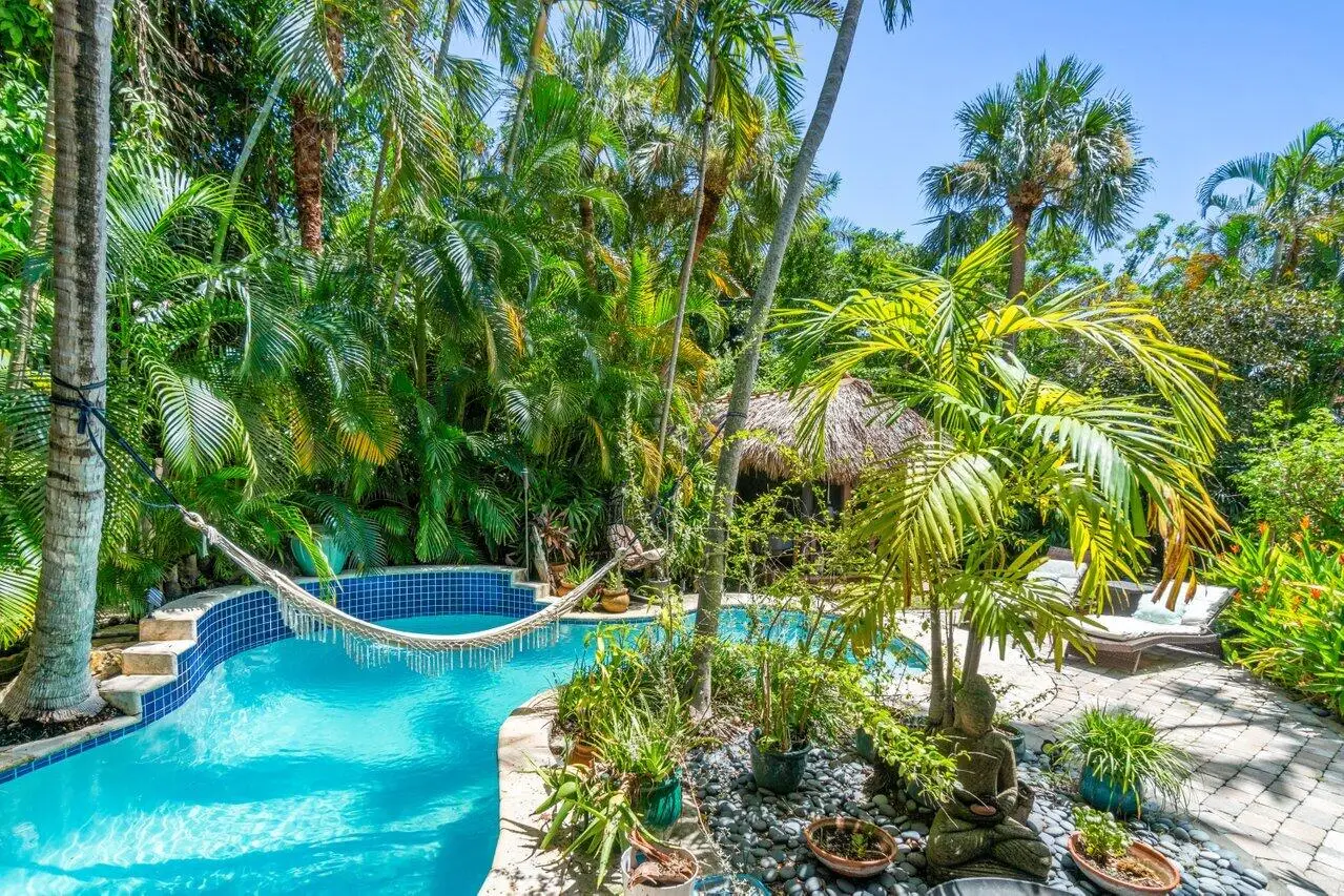 Discover the tropical bliss of living on Hypoluxo Island in this stunning 4 bed / 3 bath main house with a separate 1 bed / 1 bath guest house, offering 4,827 total sq ft on an oversized 14,375 sq ft lot.Highlights include a spacious primary suite, spa-like bathrooms, a gourmet kitchen, high ceilings, a loft, and serene settings throughout.Step outside to enjoy lush gardens, a heated pool, outdoor terraces, and a screened tiki huta"perfect for relaxation or entertaining.All this is located in a peaceful yet convenient setting, just moments from beaches, shopping, dining, the famed Eau Resort, and Nobu Manalapan.Experience the best of tropical gardens, privacy, luxury, comfort, and communitya"this is island living at its finest.