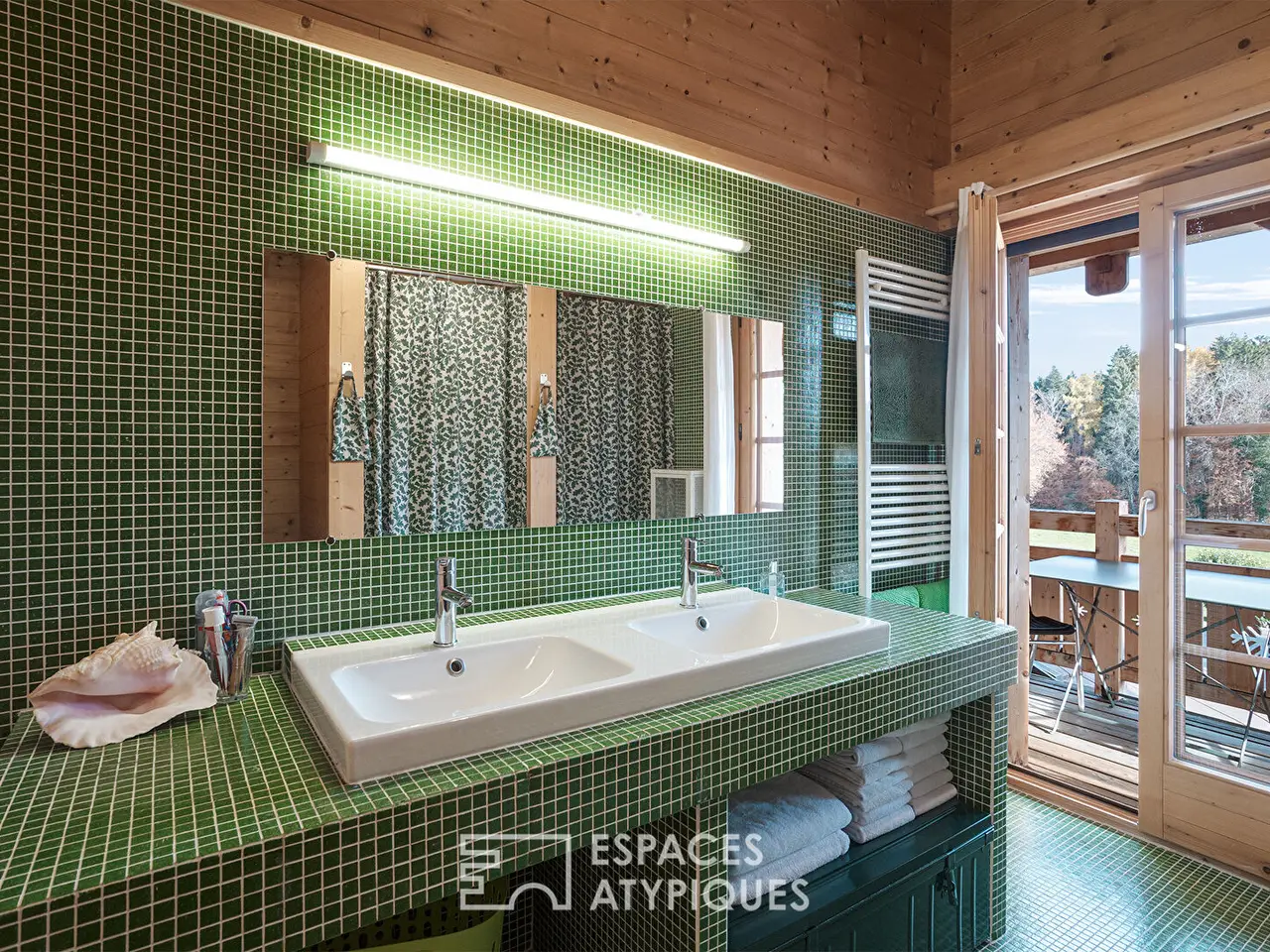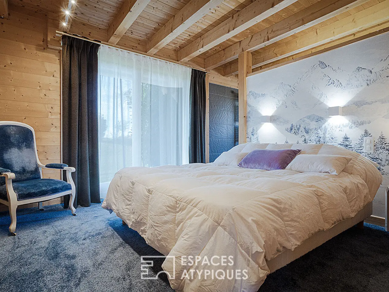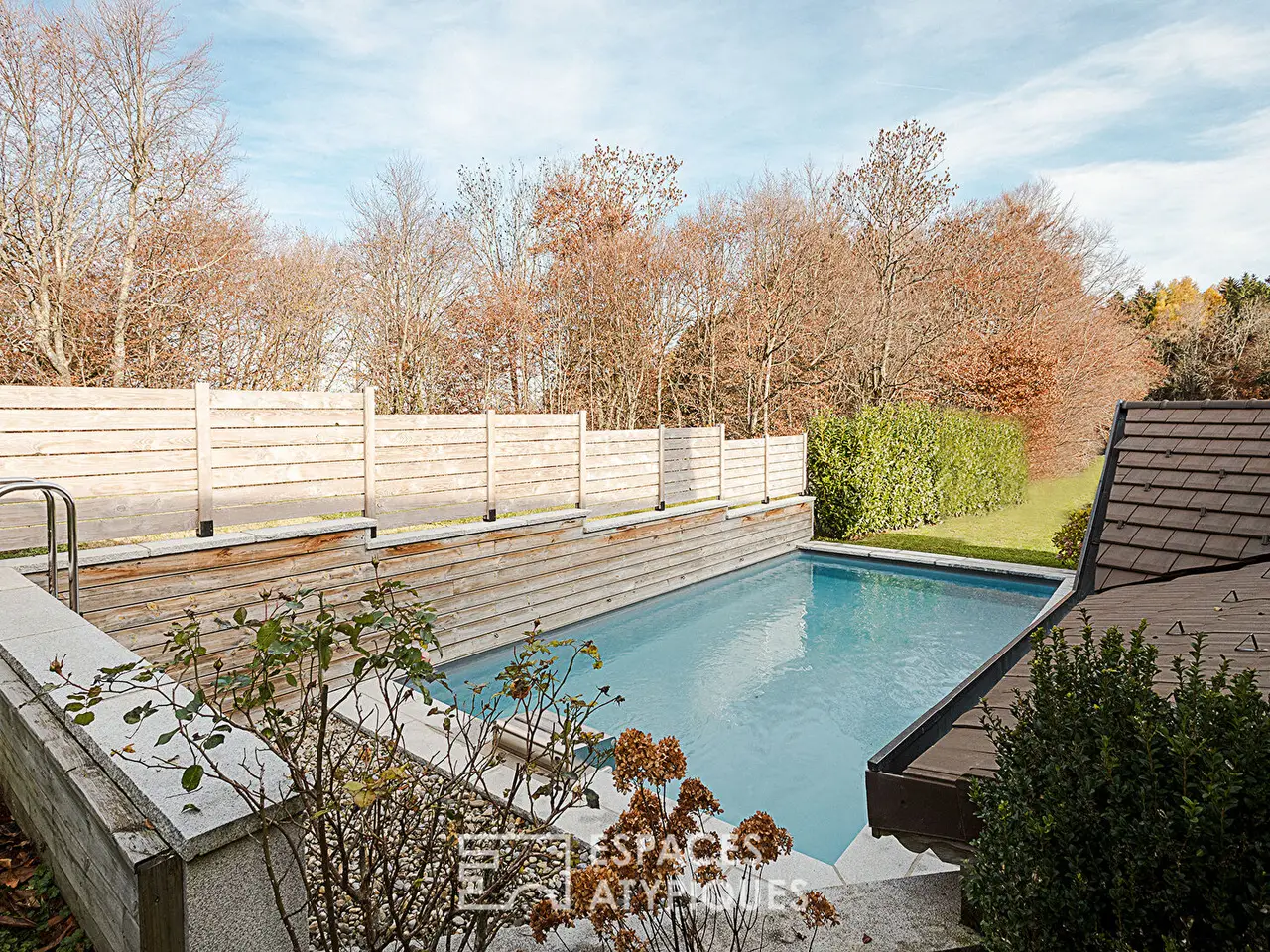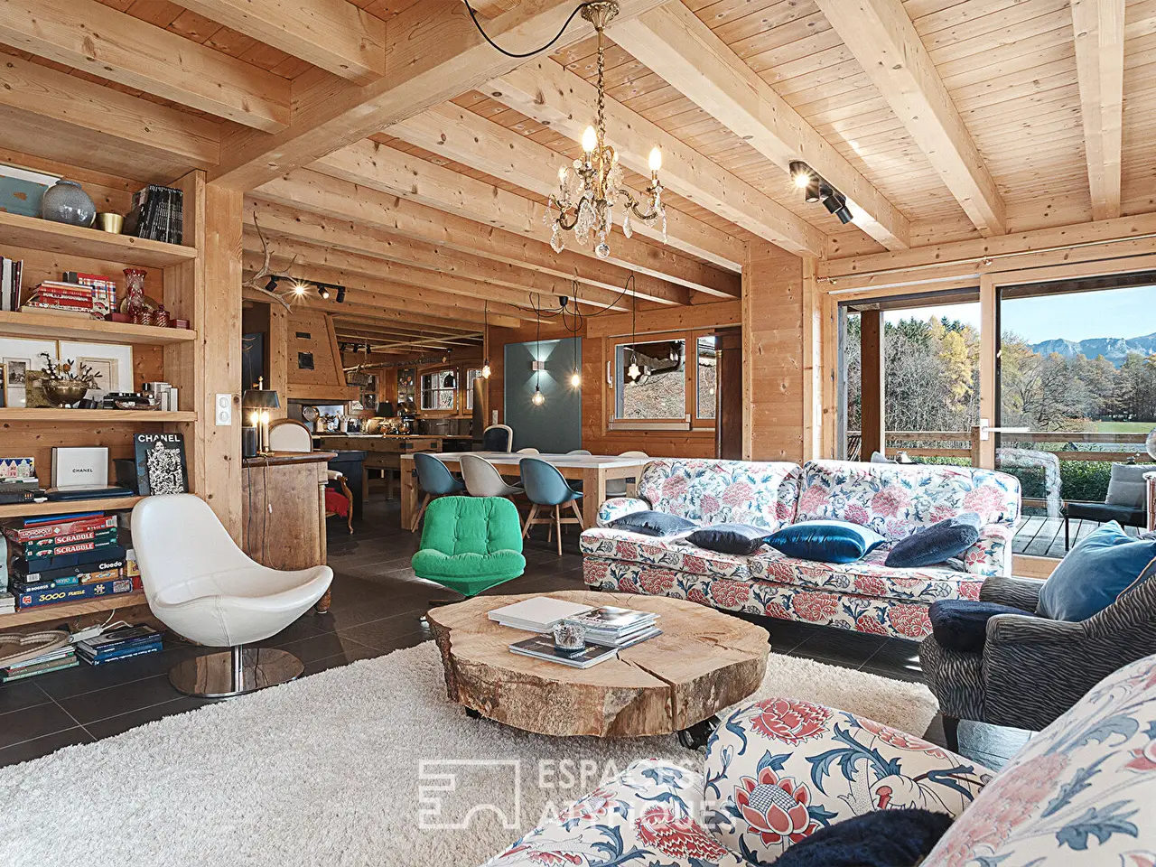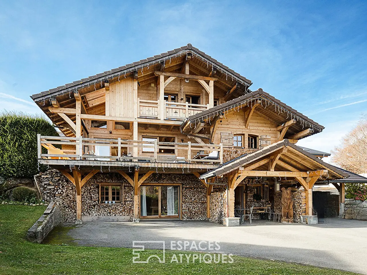 Just a few minutes from Évian-les-Bains, in the absolute tranquility of a dead end bordering the forest, this architect-designed chalet offers approximately 250 sqm of living space spread over three levels (281 sqm built), on a meticulously landscaped 1,571 sqm plot. Conceived as an elegant retreat where nature and architecture converse, it boasts a breathtaking panorama of the Dent d'Oche mountain, a veritable living painting.Upon entering, a spacious entrance hall leads to the ground floor, which houses a self-contained, loft-like apartment of approximately 47 sq m comprising a living room, a bedroom, a fully equipped kitchenette, and a shower room. This level also includes a laundry room, a cellar, and a utility room, facilitating family use or accommodating guests.On the first floor, the living areas unfold in generous, light-filled spaces. The open-plan kitchen is arranged around a Pyroflam fireplace, allowing for cooking over an open fire-one of the chalet's unique features. The dining room and living room open onto a large terrace facing the mountains, while a second south-facing terrace extends the convivial atmosphere year-round. A master suite with a dressing room and adjoining bathroom elegantly completes this level.The second floor, dedicated to the sleeping area, offers three bedrooms, each with a private balcony, sharing a double bathroom with mosaic tiles, as well as a mezzanine office of approximately 30 square meters, ideal for a workspace, reading area, or relaxation space under the exposed beams.Outside, a south-facing terrace, a welcoming summer kitchen, a greenhouse, a heated swimming pool (heat pump), and ample parking further enhance the amenities of this chalet, designed for fully enjoying the mountains, both summer and winter. Ideally located approximately 15 minutes from Évian and the nearest ski resorts, this rare property will appeal to nature lovers and families seeking a unique living environment.ENERGY CLASS: C / CLIMATE CLASS: CEstimated average annual energy costs for standard use, based on average energy prices indexed to 2021, 2022, and 2023: between EUR2,630 and EUR3,630.Information on the risks to which this property is exposed is available on the Georisques website: www.georisques.gouv.frContact: Karine - T. +33 (0)6 14 98 51 52REF. 2070EAAdditional information* 8 rooms* 5 bedrooms* 1 bathroom* 2 shower rooms* Outdoor space : 1571 SQM* Parking : 8 parking spaces* Property tax : 1 870 €Energy Performance CertificatePrimary energy consumptionc : 170 kWh/m2.yearHigh performance housing*A*B*170kWh/m2.year27*kg CO2/m2.yearC*D*E*F*GExtremely poor housing performance* Of which greenhouse gas emissionsc : 27 kg CO2/m2.yearLow CO2 emissions*A*B*27kg CO2/m2.yearC*D*E*F*GVery high CO2 emissionsEstimated average annual energy costs for standard use, indexed to specific years 2021, 2022, 2023 : between 2353.8 € and 33729.3 € Subscription IncludedAgency feesThe fees include VAT and are payable by the vendorMediatorMediation Franchise-Consommateurswww.mediation-franchise.com29 Boulevard de Courcelles 75008 ParisInformation on the risks to which this property is exposed is available on the Geohazards website : www.georisques.gouv.fr