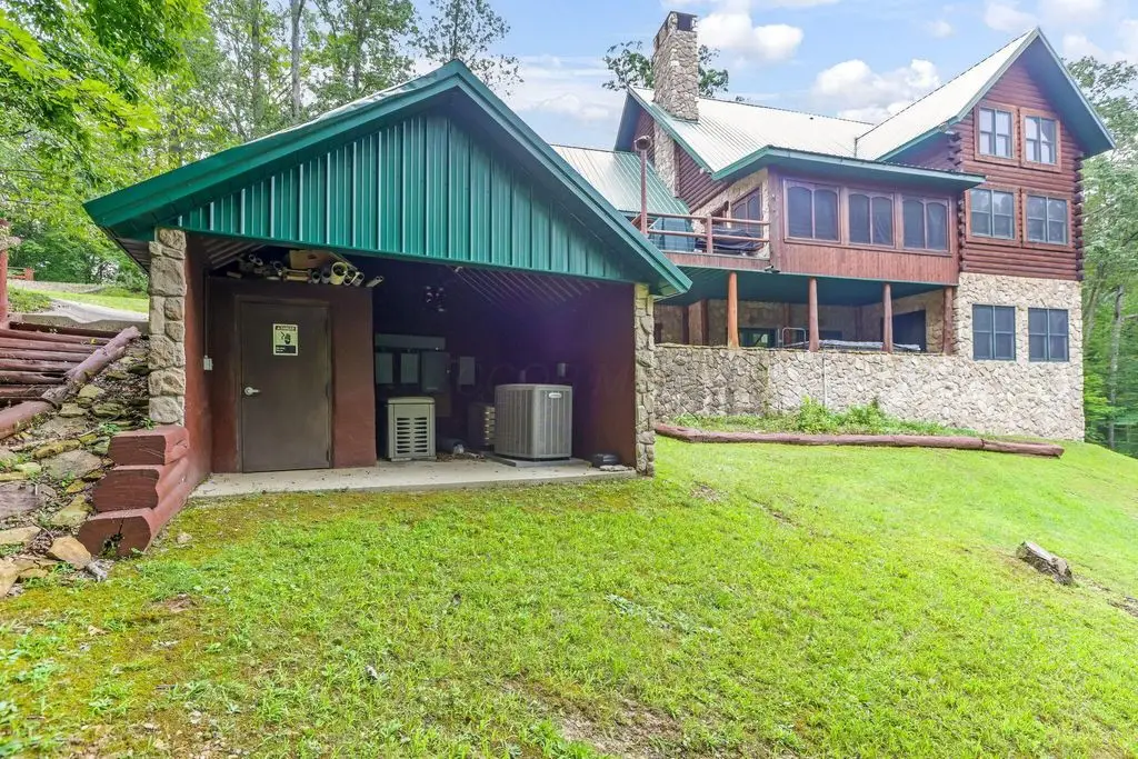 Yellowstone meets the Hocking Hills! This unique Amish custom-built home is a rare find. Three levels with panoramic views of the wooded lot to enjoy every inch of the privacy. The interior details are one of a kind from the whole tree supports and stairway to the tile and wood inlays. Soaring ceiling in the great room. All three levels have complete owners' suites. Would also make a great short-term rental. There are several fun hidden rooms including a game room. What makes this property special is the large, detached building with kitchen and full bath that is attached to a corral space that could easily have several horse stalls. If you like to ride, this property is adjacent to state land with 40 miles of the most popular trails in Ohio. 12 person hot tub/swim spa. The possibilities for luxury living are endless!