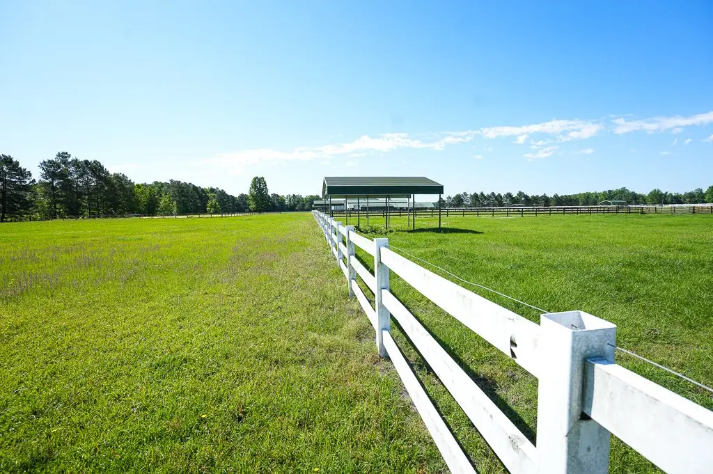 Pristine white vinyl fencing throughout