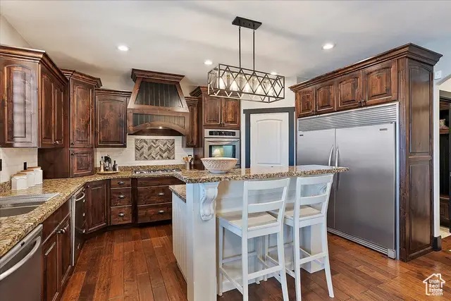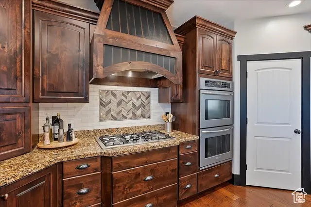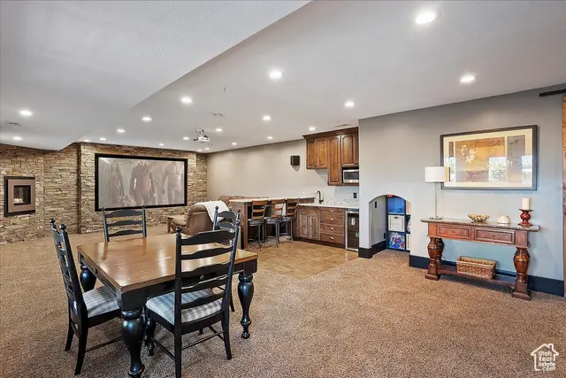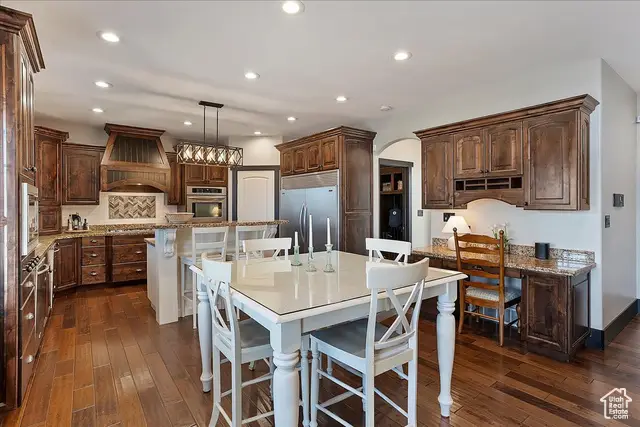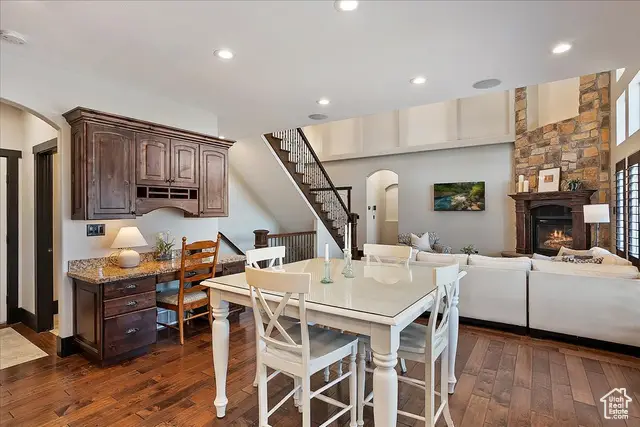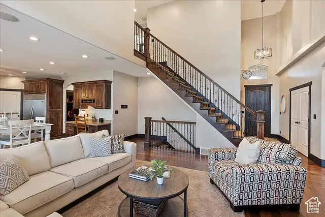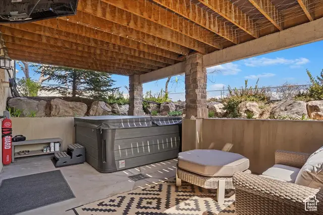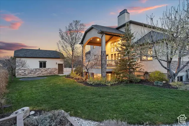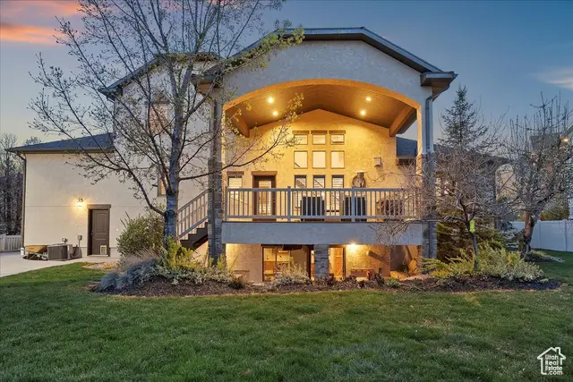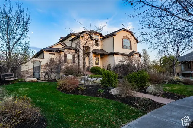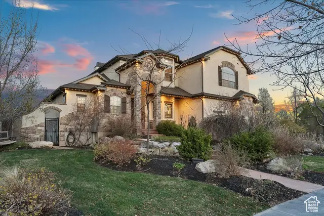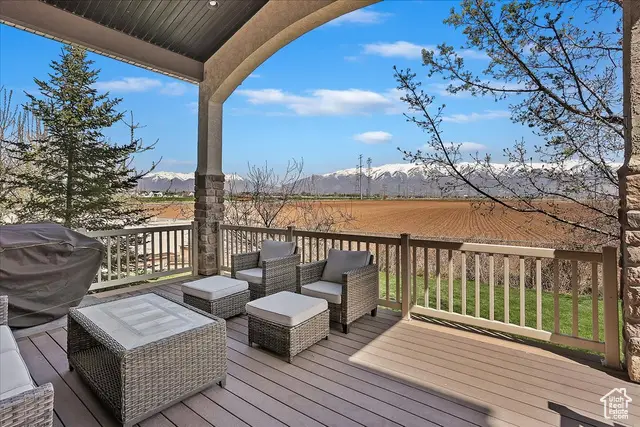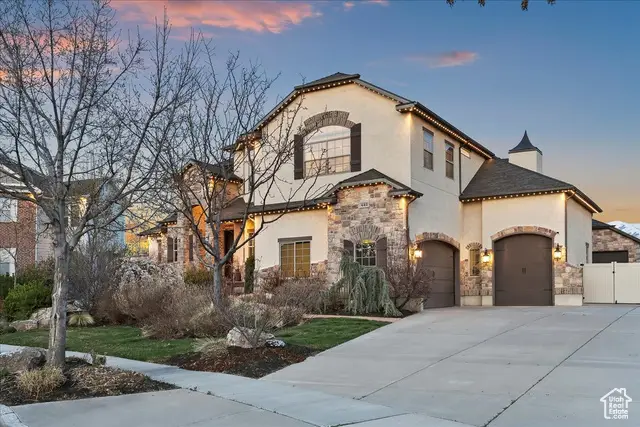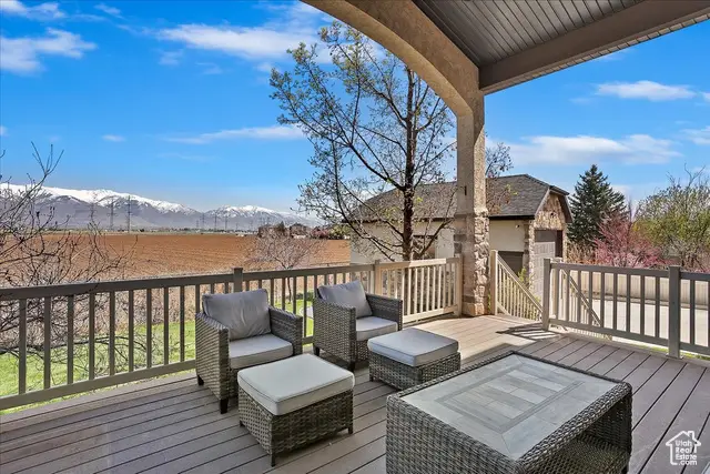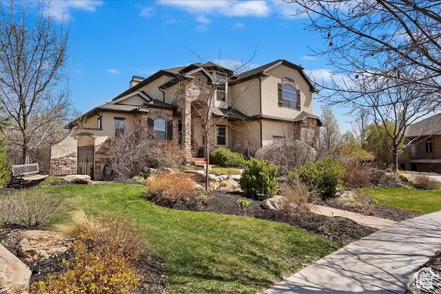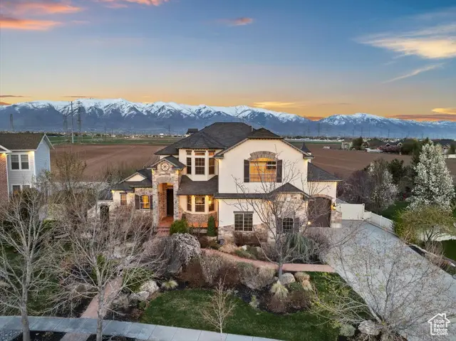 Situated on a quiet, low-traffic cul-de-sac in the highly desirable Wild Horse Springs neighborhood, this stunning residence offers an ideal blend of luxury, comfort, and thoughtful design. With 7 spacious bedrooms and 5 stylish, well-designed bathrooms, this home is built for both everyday living and effortless entertaining. Step inside to discover soaring ceilings and an open, flowing floor plan that creates a light, airy atmosphere throughout. The gourmet kitchen is a chef's dream, featuring granite countertops, dual dishwashers and sinks, a gas cooktop with vented hood, double ovens, and a large built-in refrigerator/freezer-designed for both style and functionality. The main-level master suite is a true retreat, complete with vaulted ceilings, a generous walk-in closet, and a luxurious en-suite bath showcasing a corner tub, private commode, and a custom walk-in shower. The great room makes a bold statement with 20-foot ceilings and a stunning floor-to-ceiling stone fireplace. Plantation shutters throughout the main floor add a touch of timeless elegance while providing privacy and light control. Step outside to a spacious back deck designed for entertaining or relaxing, all while enjoying unobstructed mountain views with no backyard neighbors. After sunset, soak in the private hot tub under the stars-and enjoy the permanent, customizable LED lighting on the home, perfect for setting the mood year-round or celebrating any occasion in style. The fully finished basement enhances the home's versatility with a projector, kitchenette, a dedicated room ideal for a home gym, and generous space for gatherings, movie nights, or multigenerational living. Car enthusiasts and hobbyists will appreciate the oversized 3-car garages, RV parking, and a detached garage/shop that can accommodate 2 additional vehicles. The professionally designed landscaping features striking rock-scapes, fruit trees, and raised garden boxes, blending beauty with function and allowing you to enjoy fresh produce right from your own yard. Designed with today's tech-savvy homeowner in mind, the home includes a central media closet, fiber internet, and speaker volume controls roughed in throughout-including the back deck. Central vacuum is roughed in, and laundry hookups are conveniently located on all three floors. Individual furnace and A/C units serve both the main and upper levels for year-round comfort.