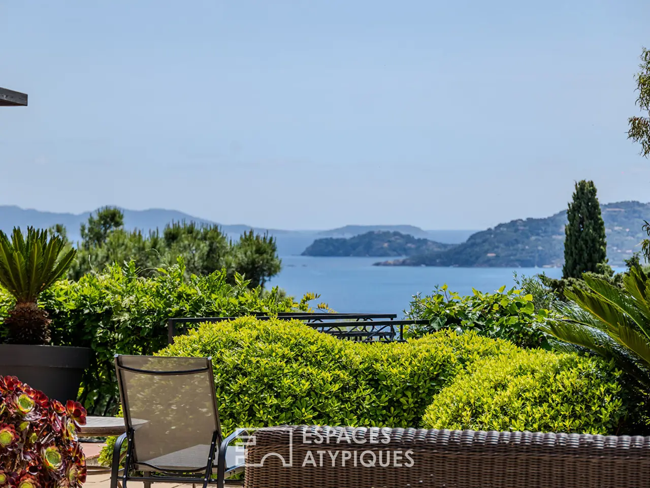 Exclusively at Espaces Atypiques Harmonically nestled in the highly sought-after Super-Lavandou neighborhood in the Var department, on a landscaped plot, this 1970s-style villa looks resolutely toward the sea and Cap-Bénat. Designed on two levels, this property combines aesthetics, flexibility, and comfort. Access is via a discreet ramp allowing for parking for several vehicles, or on foot, via a secure entrance, served by an elegant planted staircase. Facing south, the house offers a first independent apartment on the ground floor. This includes a bright living room with an open kitchen, two en-suite bedrooms, and a sun-drenched terrace. An exterior staircase leads to the second level, where a second 60 m² apartment is located. With an identical layout—a living room with an open kitchen and two en-suite bedrooms—it opens onto a vast terrace with unobstructed views. A third apartment completes the property. More independent, it offers a beautiful living area, a separate kitchen, two bedrooms, and a 30 m² terrace adorned with a pergola, ideal for shaded summer meals. The two main apartments can easily be combined to create a single 180 m² space, benefiting from direct access to a large, private swimming pool nestled at the rear of the house. A perfect family home or an investment property with strong seasonal rental potential, this impeccable property offers numerous possibilities. An exceptional property in the heart of a privileged environment, a stone's throw from the beaches and the center of Le Lavandou. ENERGY CLASS: 227 D / CLIMATE CLASS: 7 B. Estimated average annual energy costs for standard use, based on 2021 energy prices: between €1,130 and €1,580. Information on the risks to which this property is exposed is available on the Georisques website: www.georisques.gouv.fr Marie-Laure REF. 11023 Additional Information * 9 rooms * 6 bedrooms * 1 bathroom * 4 shower rooms * Floor: 1 * 2 floors in the building * Land area: 1000 m² * Parking: 4 spaces * Property tax: €2,600 Energy performance certificates Primary energy consumption d: 227 kWh/m²/year Extremely energy-efficient housing