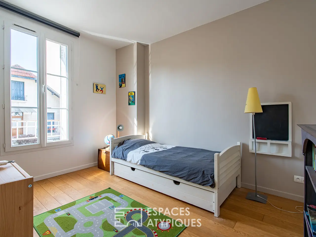 This former restaurant is located in one of the most sought-after areas of Pecq, a stone's throw from the shops and a 5-minute drive from Saint-Germain en Laye. This charming house consists of two floors, with a partly finished basement. The garden level, a former restaurant on two levels, offers, with its kitchen located below, a lovely bright volume of 52 sqm enhanced by a mezzanine which dominates the space. Continuing, a small bedroom with its bathroom adjoins the old entrance which today has become a music room/library, in which a staircase leads to the sleeping area made up of two beautiful bedrooms of 11.75 and 12 sqm which share a spacious bathroom. The basement offers a first room, blind, organized as a TV lounge, with a laundry area. Then, a bedroom with a window onto an English courtyard was created with its own bathroom. A workshop and a cellar complete this level. Overhead parking is possible in the garden. This charming workshop-style house, hidden from view, located in the heart of the town and nestled in greenery on 272 sqm of land and its 25 sqm terrace, is ideally located. Vesinet-Le Pecq station for the RER A 14 min walk Schools with British sections: nursery and elementary 5 min walk College 13 min walk. Saint Germain en Laye International High School. ENERGY CLASS: D / CLIMATE CLASS: D. Estimated average amount of annual energy expenditure for standard use, established based on energy prices for the year 2021: between EUR1,590 and EUR2,200 REF. 7678 Additional information * 7 rooms * 3 bedrooms * 1 bathroom * 1 bathroom * Floor : 1 * Outdoor space : 272 SQM * Parking : 1 parking space * Property tax : 2 062 € Energy Performance Certificate Primary energy consumption d : 157 kWh/m2.an High performance housing