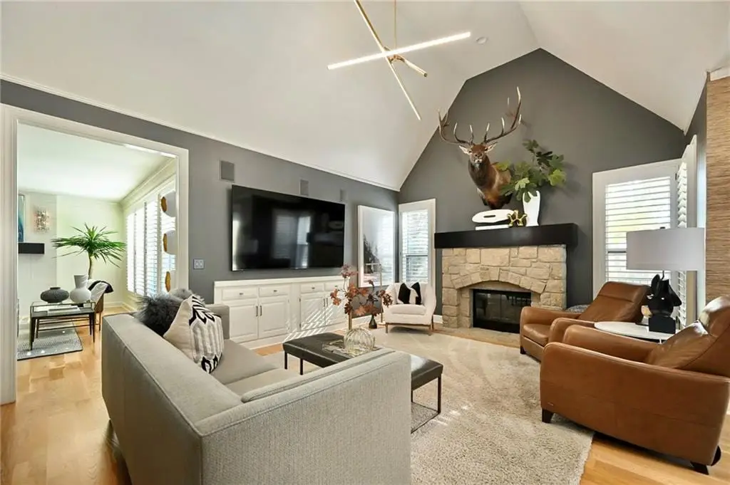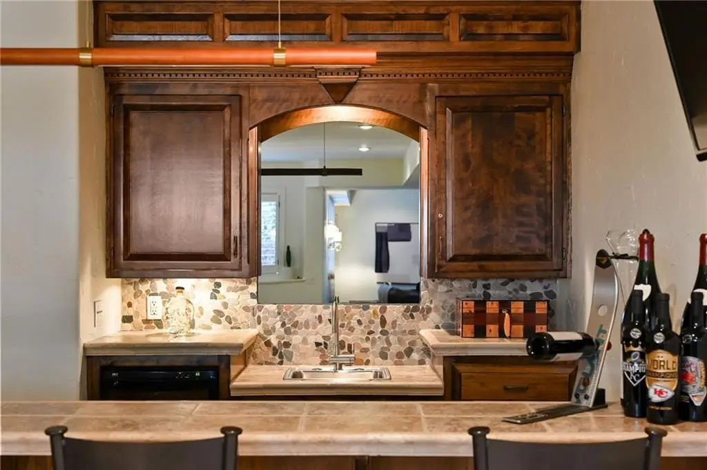 PHENOMENAL RESORT STYLE POOL and a BEAUTIFULLY UPDATED HOME together make this an incredible and rare find! This home has designer updates and lighting, newer main level wide plank wood flooring, updated kitchen with an oversized island, double ovens and updated paint and carpeting! The living spaces are bright and cozy, with main level office, entertaining space in the basement, basement bar and 5th non-conforming bedroom or flex room with full bath and steam shower. Lounge outdoors on the covered porch, and best of all...fall in LOVE with the absolutely STUNNING gunite saltwater pool and outdoor entertaining area! The cost to reproduce this backyard retreat is massive!. There is an amazing cabana with kitchenette, bathroom, and bar seating. The heated saltwater pool is surrounded by privacy trees with a hot tub. Gather around the built-in fire pit, or fire up the gas grill, this outdoor area is expansive and gorgeous! The pool was recently inspected and has been meticulously maintained. The expanded depth garage has epoxy floor, functional built-in cabinetry and work bench. The covered suspended porch offers additional storage underneath. All residing on a fantastic cul-de-sac lot in south Leawood's Hills of Iron Horse, adjoining to a golf course, just minutes from restaurants, coffee shops, Blu Hawk and Prairie Fire shopping, and in a nationally ranked school district! Up to $10,000 buyer closing credit offered by preferred lender!