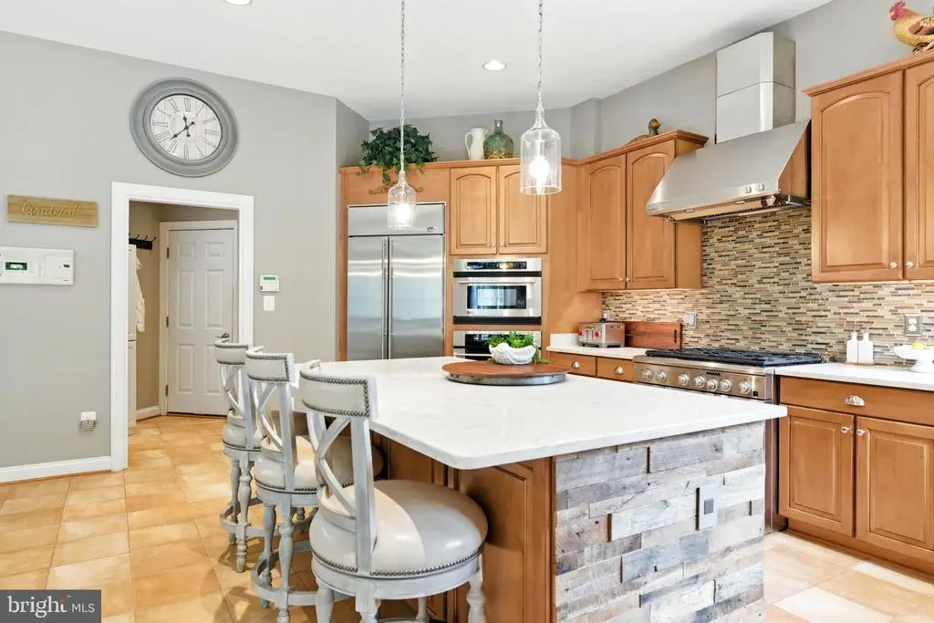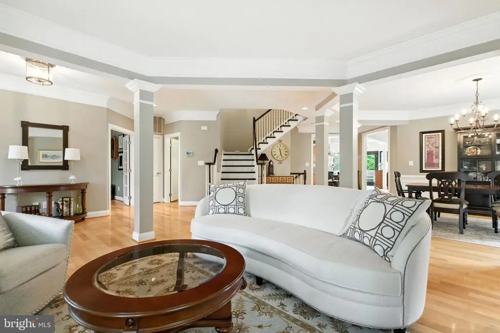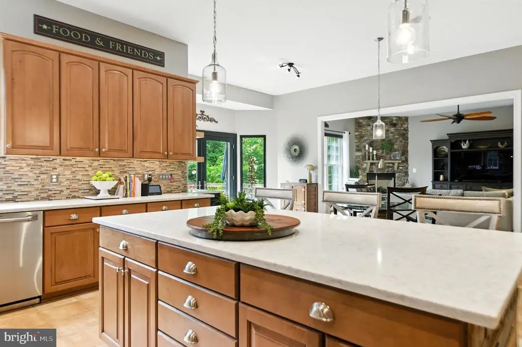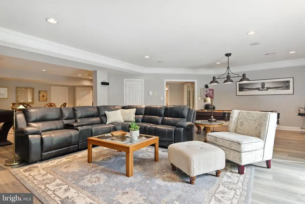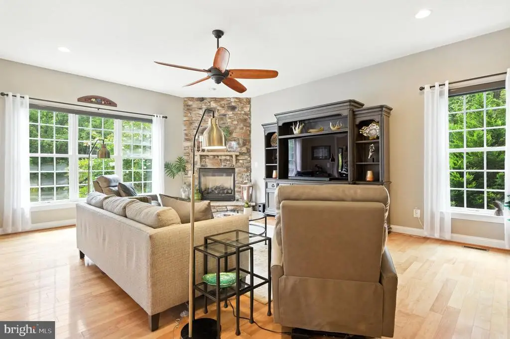 Perfectly nestled on a private 0.46-acre lot backing to mature trees, this stunning home offers over 6,000 square feet of beautiful living space - an entertainer's dream and a peaceful retreat in one. From the moment you step onto the deep, southern-style front porch, you'll feel the charm and warmth of this home. Inside, a light-filled open floor plan invites you to gather and relax. The remodeled kitchen is a true showstopper with quartz countertops, stainless steel appliances, center island, pantry, mudroom, and custom beverage station. The adjacent family room with stone fireplace is perfect for cozy evenings, while the formal living and dining rooms provide elegant spaces for special occasions. A private main-level office is ideal for working from home. Upstairs, the expansive primary suite is a luxurious escape with a sitting room, fireplace, two custom walk-in closets, and a spa-inspired bath featuring a soaking tub, walk-in shower, and dual vanities. Three additional bedrooms include one with a private en-suite bath, while the other two share a full bath. Upper-level laundry adds convenience. The finished walkout lower level is where the fun begins, a spacious rec room with fireplace, game area, and sleek wet bar create the ultimate hangout zone. A bonus room, additional fifth bedroom, full bath, and large storage space complete the lower level. Enjoy the best of outdoor living with an expansive deck and lower-level patio - perfect spots to entertain or unwind with serene wooded views. The community offers an outdoor pool, tennis courts, basketball, tot lots and more! And it is just minutes from the MARC train for easy commuting to Washington, DC. This home truly has it all - space, style, and the perfect setting. Come experience the lifestyle you've been dreaming of.