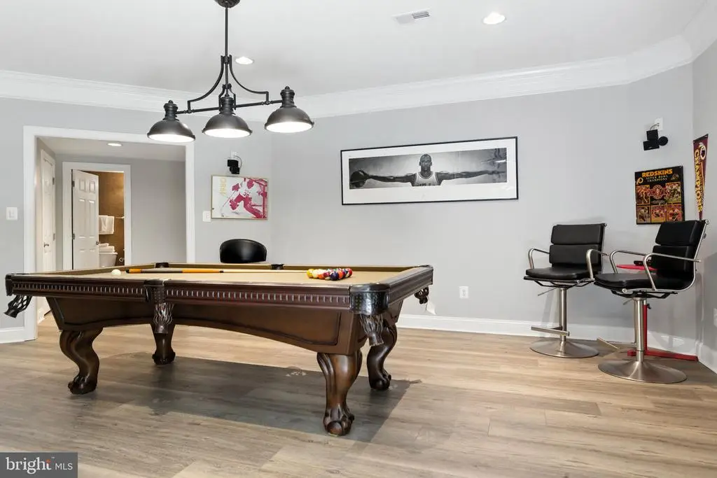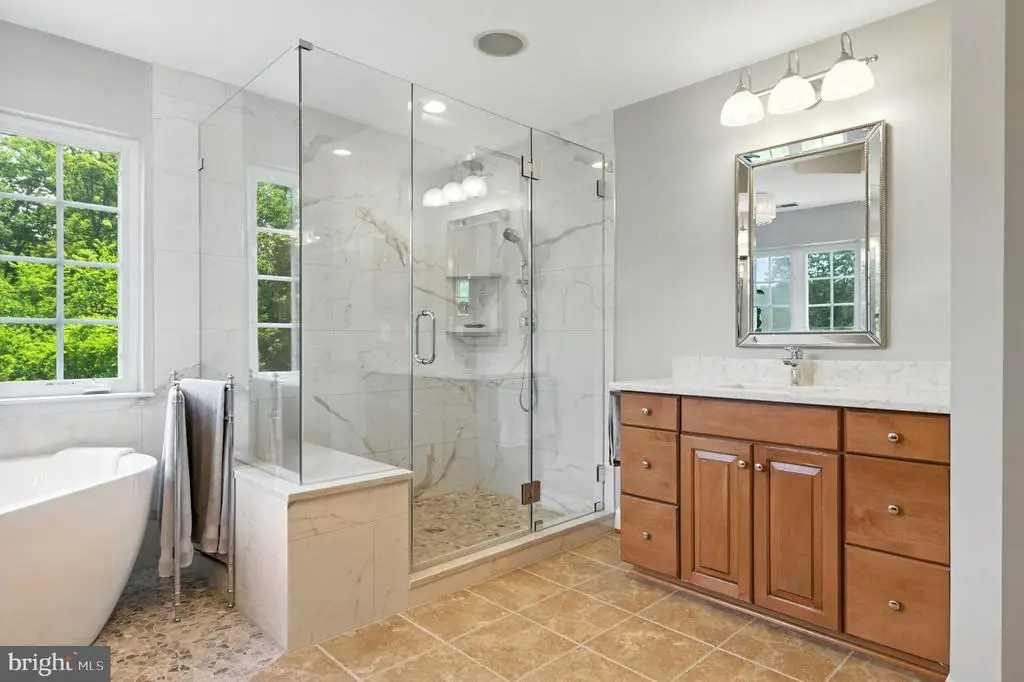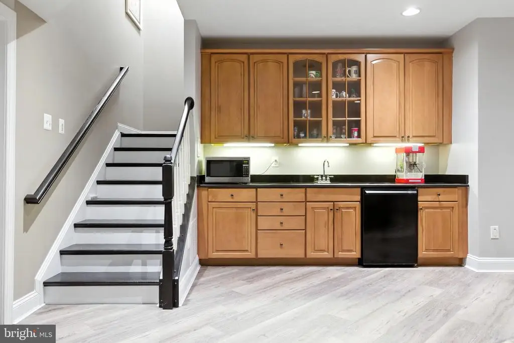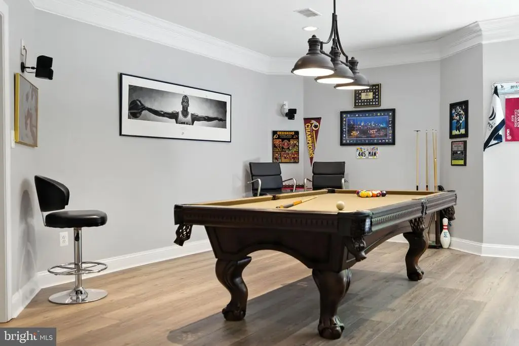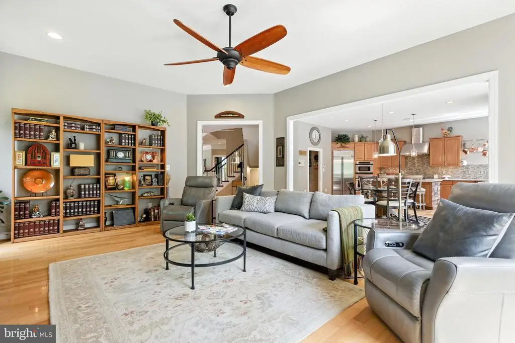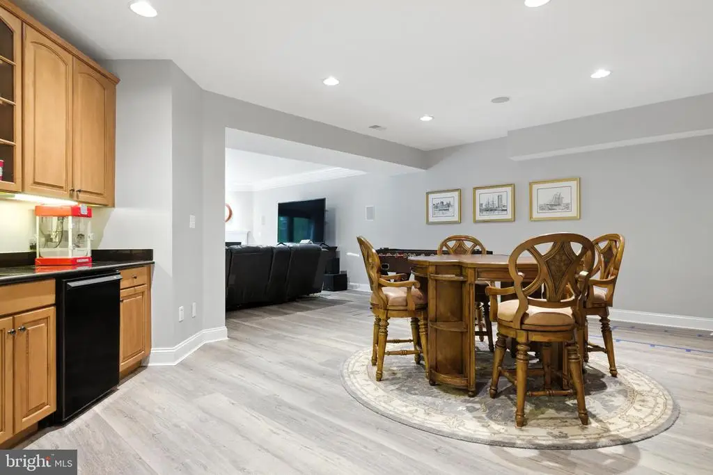 Perfectly nestled on a private 0.46-acre lot backing to mature trees, this stunning home offers over 6,000 square feet of beautiful living space - an entertainer's dream and a peaceful retreat in one. From the moment you step onto the deep, southern-style front porch, you'll feel the charm and warmth of this home. Inside, a light-filled open floor plan invites you to gather and relax. The remodeled kitchen is a true showstopper with quartz countertops, stainless steel appliances, center island, pantry, mudroom, and custom beverage station. The adjacent family room with stone fireplace is perfect for cozy evenings, while the formal living and dining rooms provide elegant spaces for special occasions. A private main-level office is ideal for working from home. Upstairs, the expansive primary suite is a luxurious escape with a sitting room, fireplace, two custom walk-in closets, and a spa-inspired bath featuring a soaking tub, walk-in shower, and dual vanities. Three additional bedrooms include one with a private en-suite bath, while the other two share a full bath. Upper-level laundry adds convenience. The finished walkout lower level is where the fun begins, a spacious rec room with fireplace, game area, and sleek wet bar create the ultimate hangout zone. A bonus room, additional fifth bedroom, full bath, and large storage space complete the lower level. Enjoy the best of outdoor living with an expansive deck and lower-level patio - perfect spots to entertain or unwind with serene wooded views. The community offers an outdoor pool, tennis courts, basketball, tot lots and more! And it is just minutes from the MARC train for easy commuting to Washington, DC. This home truly has it all - space, style, and the perfect setting. Come experience the lifestyle you've been dreaming of.