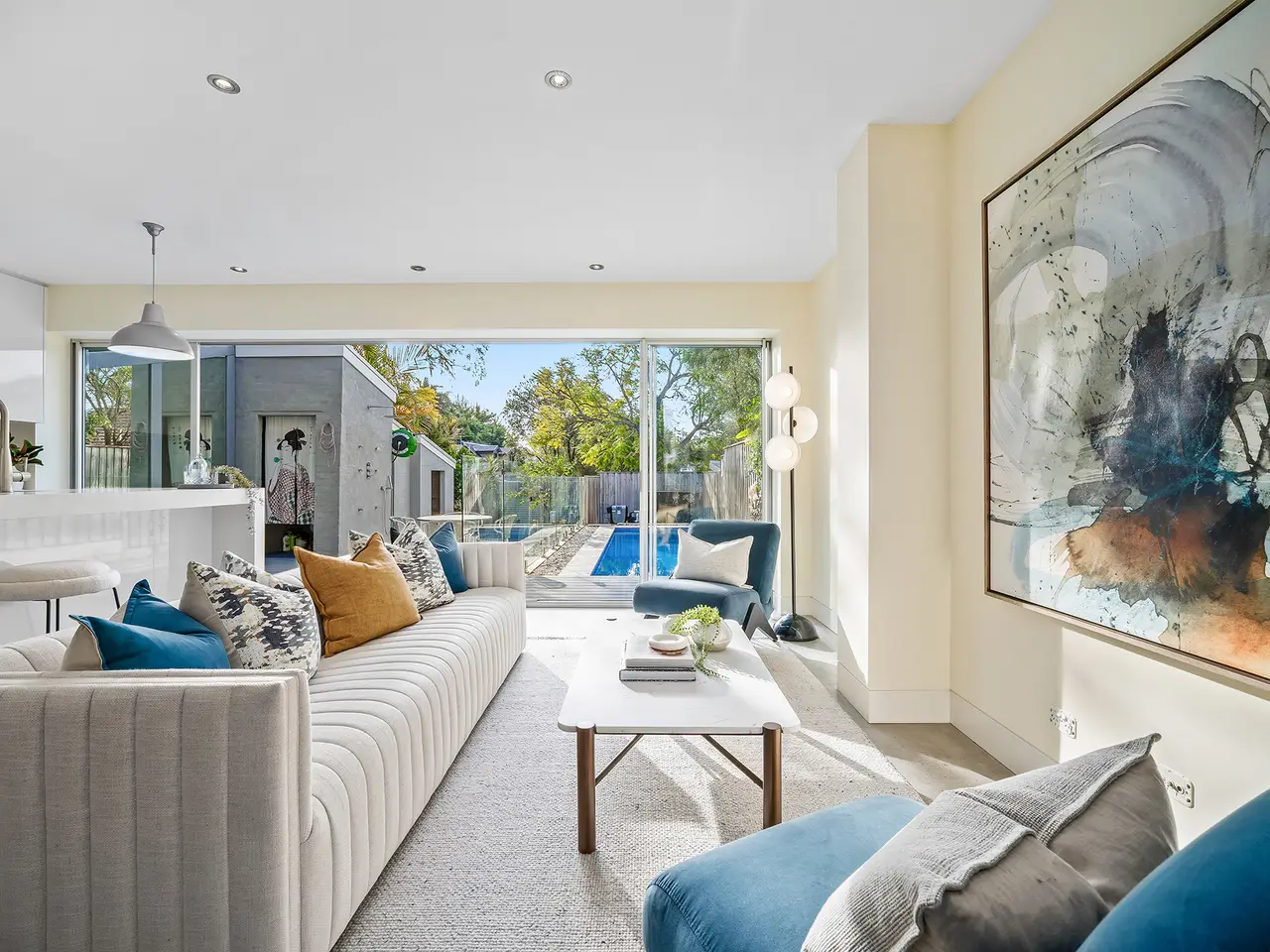 The picture-perfect cottage frontage and enduring good looks of this c1890 cottage give it instant street appeal but it's the dramatic contemporary extension and sunny pool that deliver the real wow factor. On an unusually large 352sqm approx in a quiet enclave between Marr Park and Wangal Nuru Reserve and its nature-based adventure playground, the two-storey home embraces its sunny north to rear aspect with a dramatic extension conceived as the social heart and opening out to a landscaped backyard with a heated saltwater pool. Lovingly restored and recreated, the original pressed metal ceilings create a striking feature in the front of the home while the upper level is devoted to a master suite with a tranquil northerly outlook over the backyard and jacaranda-framed streetscape. Live local and shop local in a family friendly neighbourhood just 250m to MarketPlace shops and Unique Wholefood and 650m to Petersham Park with its historic cricket oval and open-air pool with great schools all around. • 7.6m frontage and gorgeous established cottage garden • Corbelled arch entry hall, beautiful pressed metal ceilings • Australian hardwood floors, ducted reverse air (zoned) • 4 bright and airy double bedrooms, 2 with a fireplace • Sanctuary style parents' retreat with an idyllic outlook • Wall-to-wall built-in robes, luxurious hotel-style ensuite • Sun-filled living and dining space with extensive cabinetry • Polished concrete floors, seamless in/outdoor living • Entertainer's kitchen with a 3m waterfall breakfast island • Smeg Victoria dual fuel range cooker, stone benchtops • North-facing entertainer's deck, outdoor shower with jets • Skylit upper level media retreat or lounge/chillout zone • Carrara marble finishes in the kitchen and bathrooms • 2 bathrooms, separate internal laundry and outdoor W.C. • Dual street frontage with secure parking via Edith Street • 500m to Kegworth Public School, 900m to the light rail