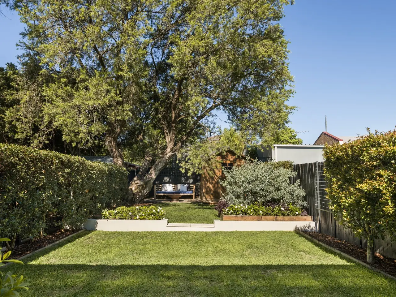 Enviably tucked away on a quiet street with minimal traffic and easy parking, moments to MarketPlace shops and city buses, this exceptionally renovated weatherboard home offers effortless living and indoor/outdoor entertaining on the one substantial level. Interiors combine classic cottage charm with fresh modern style, enjoy generous light from the north and open to a covered terrace area and immaculate grassed garden at the rear. Within 450m of the Marion light rail stop and approx. 10mins walk to the Greenway park run through to Richard Murden Reserve, it delivers a sanctuary of ease and tranquility with broad appeal and rapid access into the city. - Three bedrooms featuring built-ins, main has walk-in robe and ensuite - Bathroom including bath, internal laundry, fully lined attic storage room - Open plan living/dining and island gas kitchen with quality appliances - Gorgeous backyard with level lawn, storage shed and gated side access - Original high decoratively patterned ceilings and polished floorboards - Heated travertine floors to the living area, both bathrooms and laundry - Bi-folding glass doors to covered terrace with fan and outdoor kitchen - Ducted r/c air conditioning, gas heating bayonet and an alarm system - 150m from city/QVB buses and 300m to MarketPlace Shopping Centre - Kegworth Public School catchment (450m), 900m from Norton Street