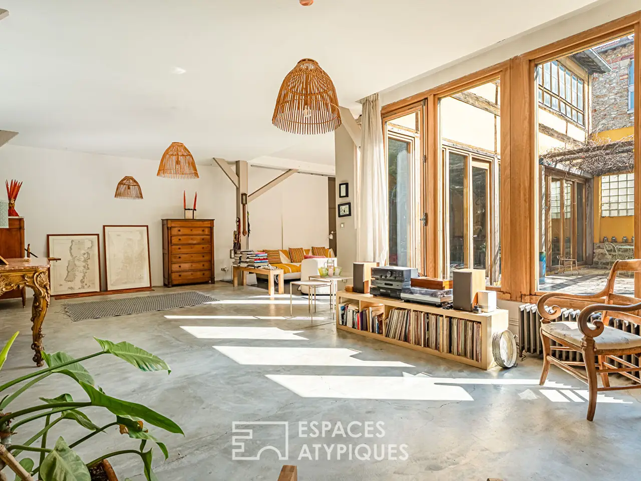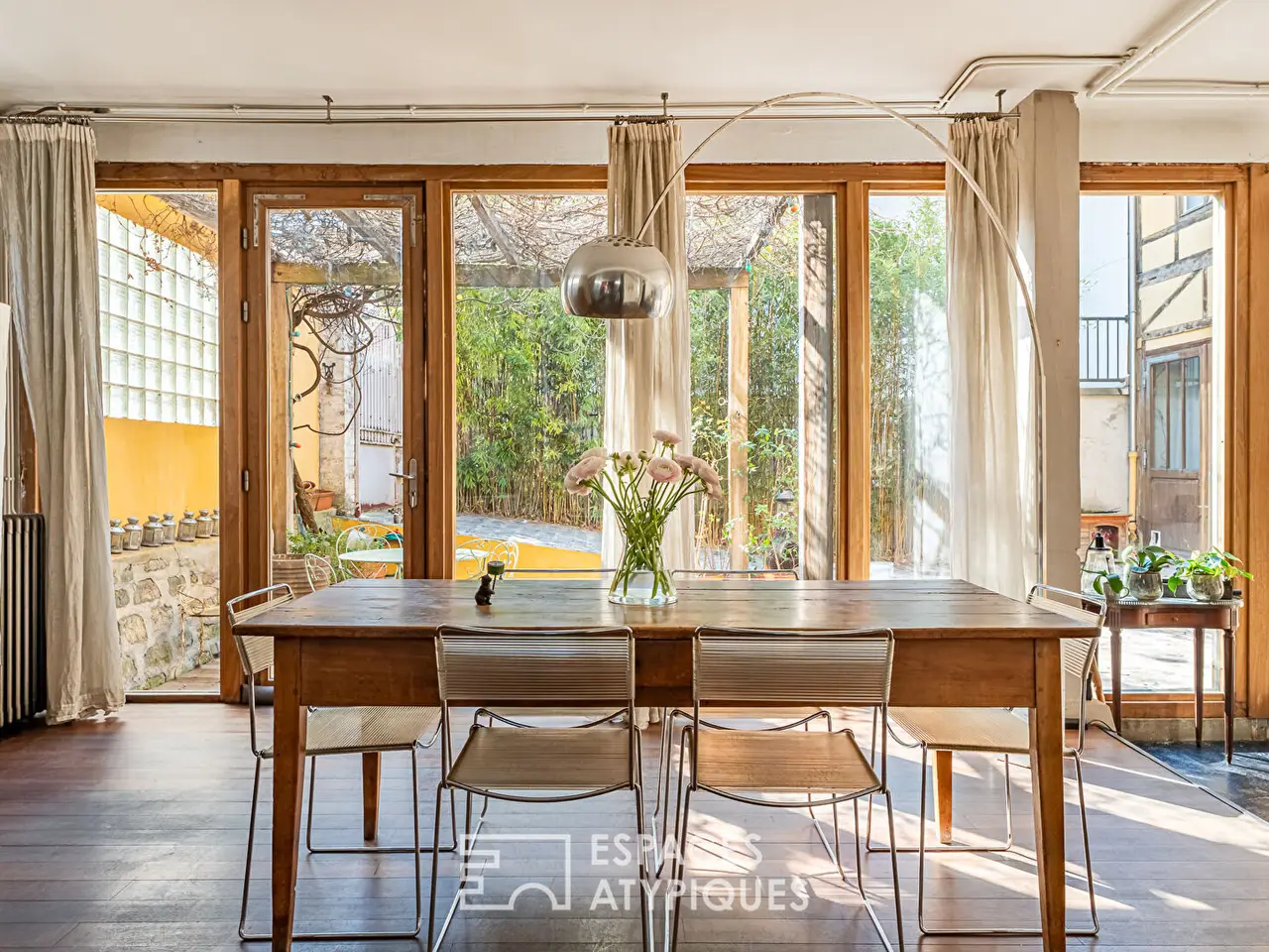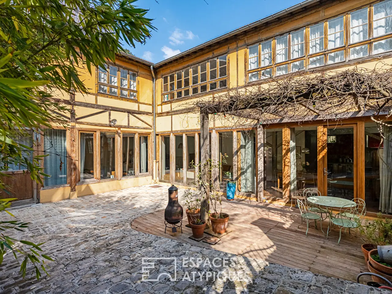 Located in the highly residential Les Sablonnieres neighborhood, this 1947 building was for many years a biscuit factory, then a roasted peanut factory, before becoming the characterful residence we see today.Unique in its layout and size (310 m2 of living space), it is built around a large 80 m2 L-shaped paved courtyard, which offers a view of its facade and period timber-framed walls.Secluded from view, elegantly appointed, and bright thanks to its large bay windows and south-facing exposure, it offers a loft-style ground floor (3.5-meter ceiling height) with a 96 m2 double living room comprising an open-plan fitted kitchen, dining room, and living room, followed by a former garage converted into an office.On the first floor, a large landing leads to an office and a first bedroom, followed by a hallway leading to two bathrooms with overhead lighting, and a hallway leading to two additional bedrooms.The second floor features a beautiful 35 m2 attic master suite with a walk-in closet, and a portion of the attic space that can be converted if needed. This unique house in the area is ideal for a family seeking space and tranquility, or a professional looking for space to live and work.Parking is available for two to three cars in the courtyard.Close to all amenities.Schools from elementary to high school are less than a ten-minute walk away.Metro Line 13 Malakoff - Etienne Dolet 500m awayREF. 11544Additional information* 8 rooms* 5 bedrooms* 2 shower rooms* Outdoor space : 410 SQM* Property tax : 4 743 €Energy Performance CertificatePrimary energy consumptiond : 156 kWh/m2.yearHigh performance housing*A*B*C*156kWh/m2.year33*kg CO2/m2.yearD*E*F*GExtremely poor housing performance* Of which greenhouse gas emissionsd : 33 kg CO2/m2.yearLow CO2 emissions*A*B*C*33kg CO2/m2.yearD*E*F*GVery high CO2 emissionsEstimated average annual energy costs for standard use, indexed to specific years 2021, 2022, 2023 : between 4150 € and 5660 € Subscription IncludedAgency feesThe fees include VAT and are payable by the vendorMediatorMediation Franchise-Consommateurswww.mediation-franchise.com29 Boulevard de Courcelles 75008 ParisInformation on the risks to which this property is exposed is available on the Geohazards website : www.georisques.gouv.fr
