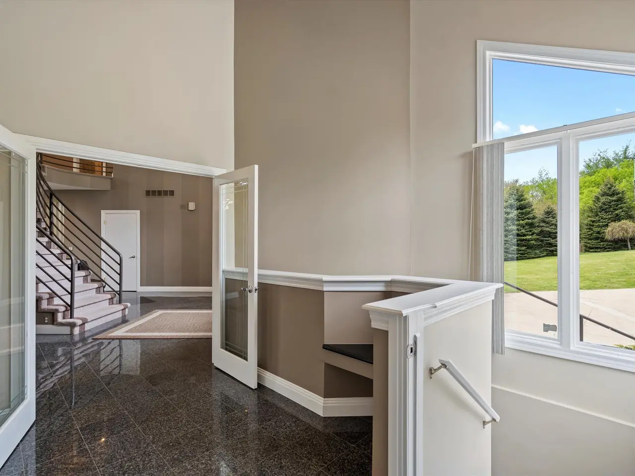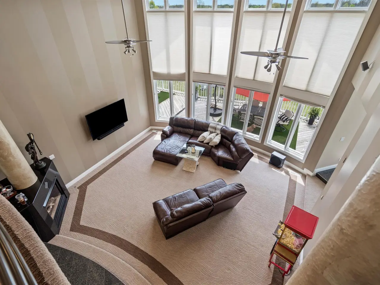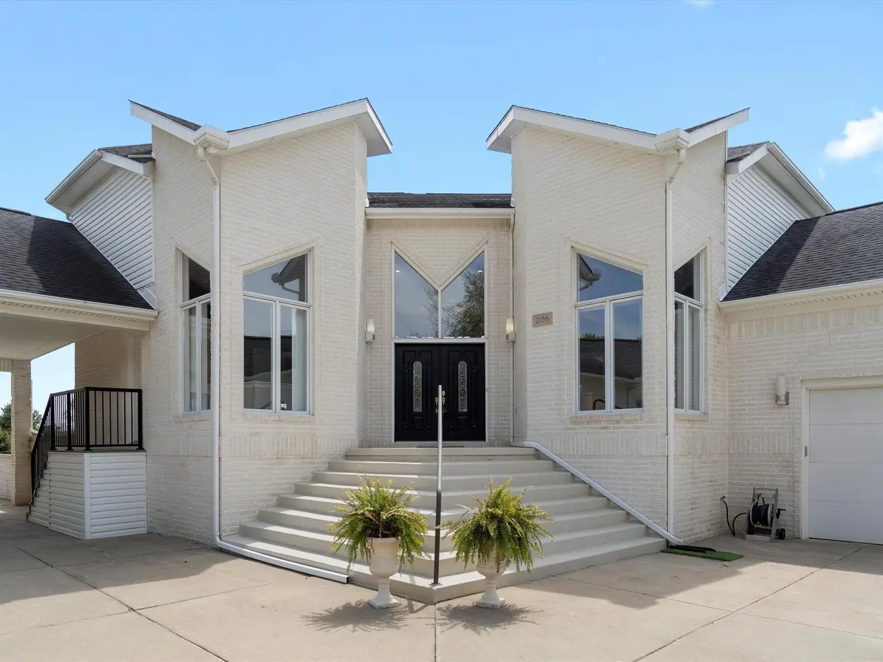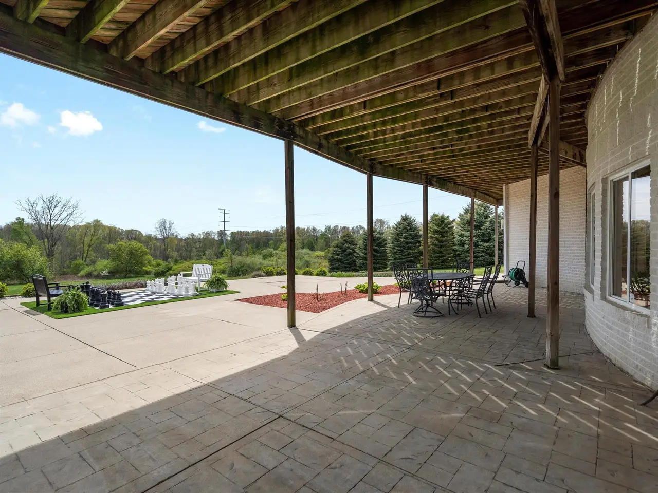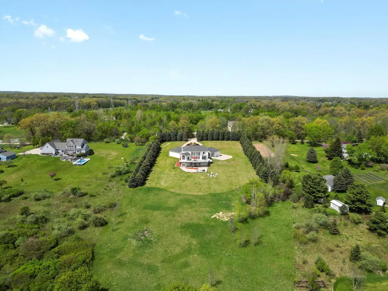 Contemporary Modern estate on 3+ private acres in Addison Township. This spacious home offers 5 bedrooms, 4 full baths, and 1 half bath, including two primary suites—one on the main floor and one on the second level. Open floor plan with clean lines and abundant natural light. The home features a 5-car garage setup with a separate 2-car and 3-car garage. A circular driveway with a water fountain feature provides an elegant entrance. Enjoy outdoor living on the expansive deck that spans the entire back of the home, overlooking a serene property with 100 planted pine trees for added privacy and beauty. The finished walk-out basement includes a home gym, game room, second kitchen, and full bathroom, offering flexible living and entertaining options. Located in a quiet, natural setting yet convenient to Lake Orion, Rochester, and area amenities. This property combines modern style, function, and seclusion.