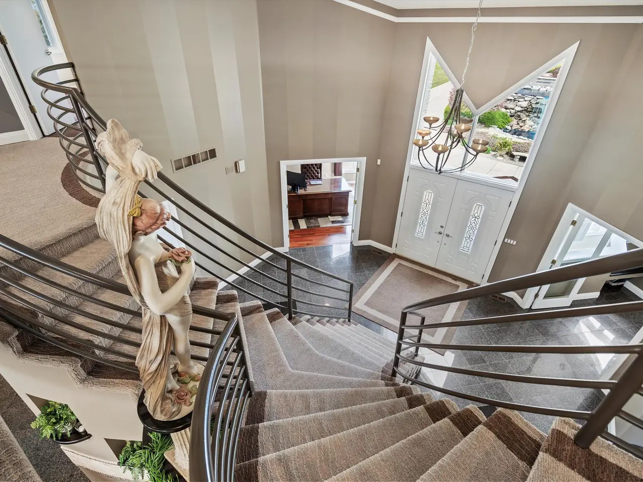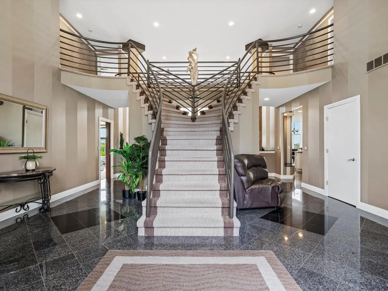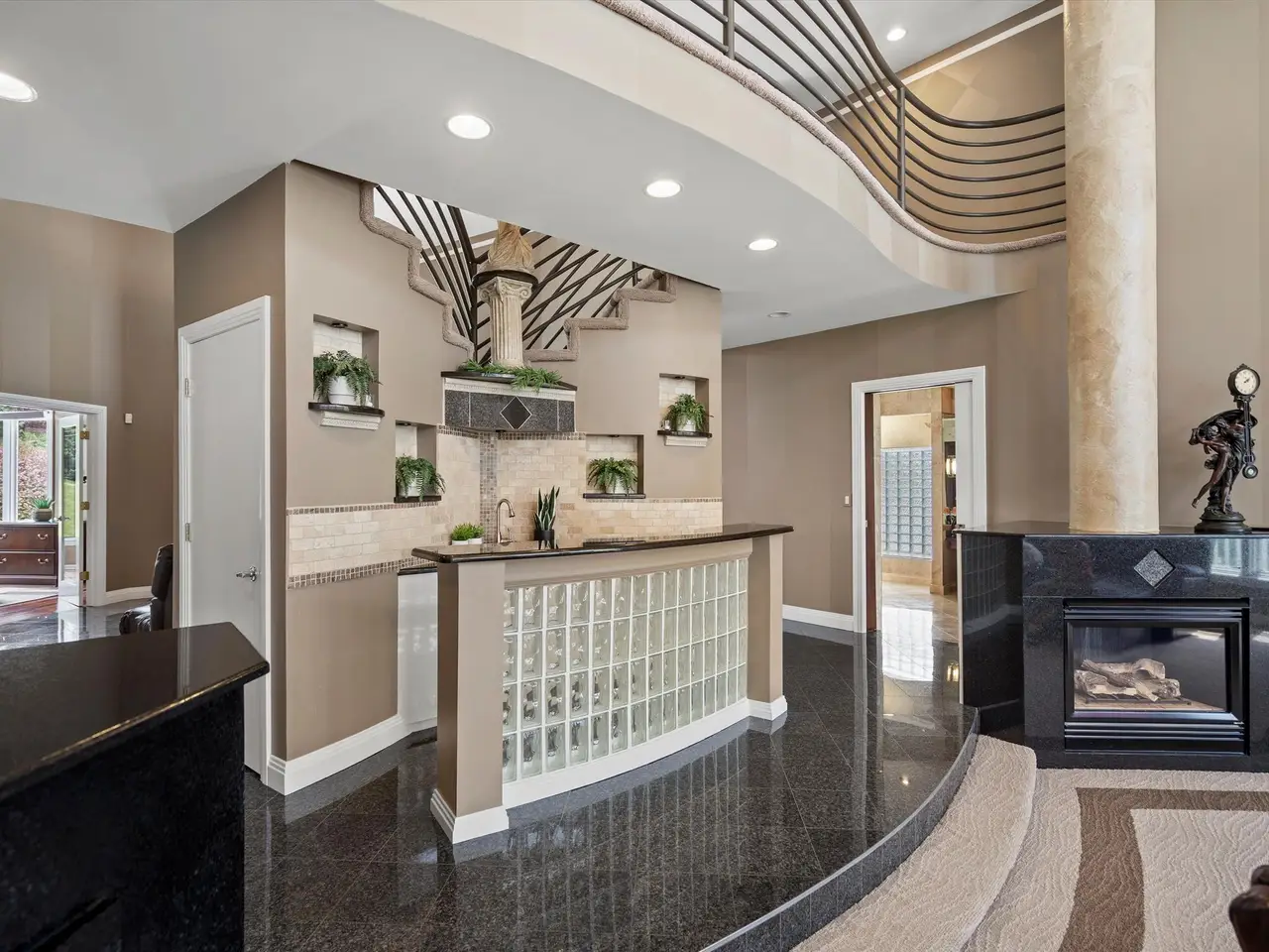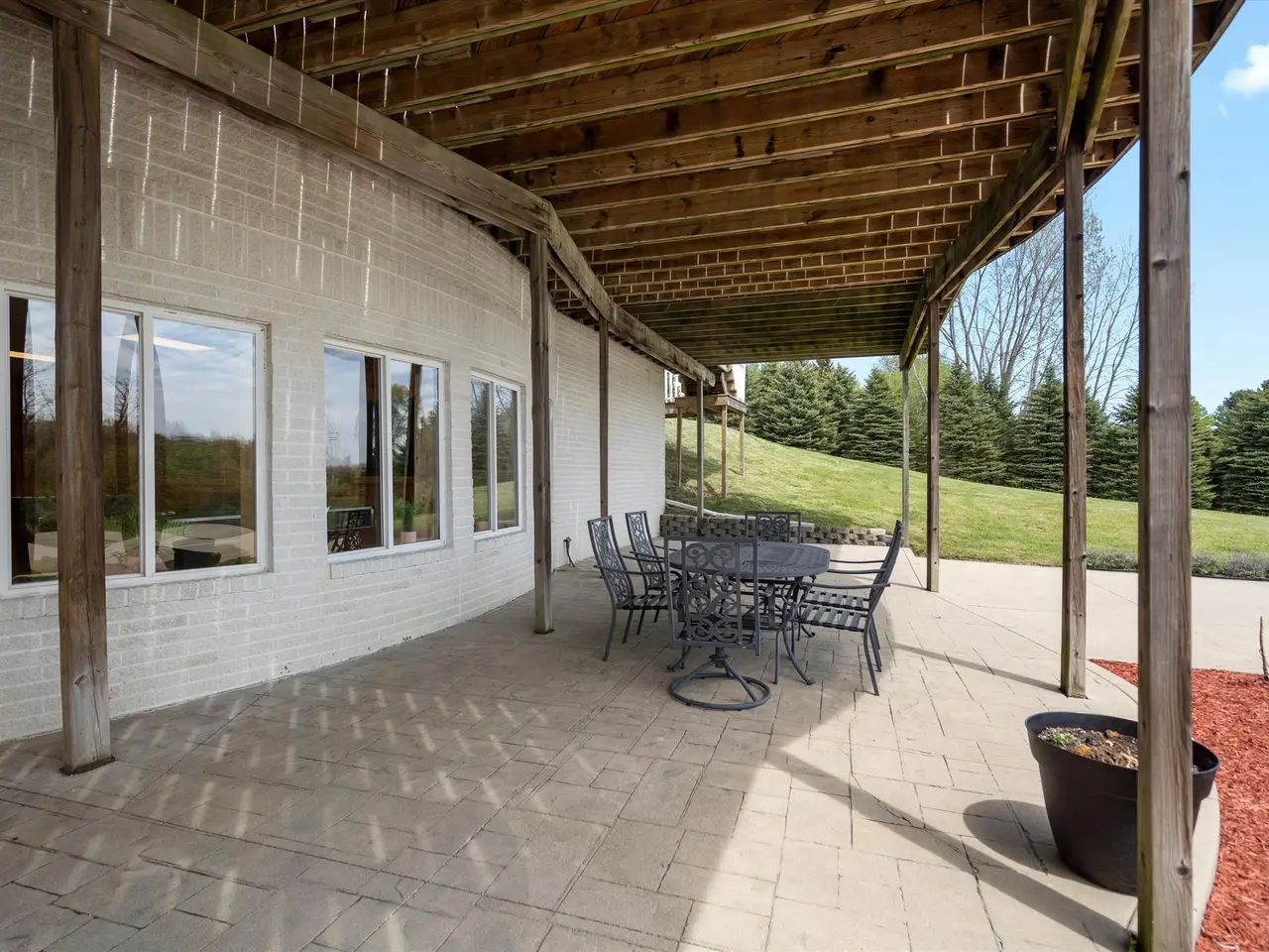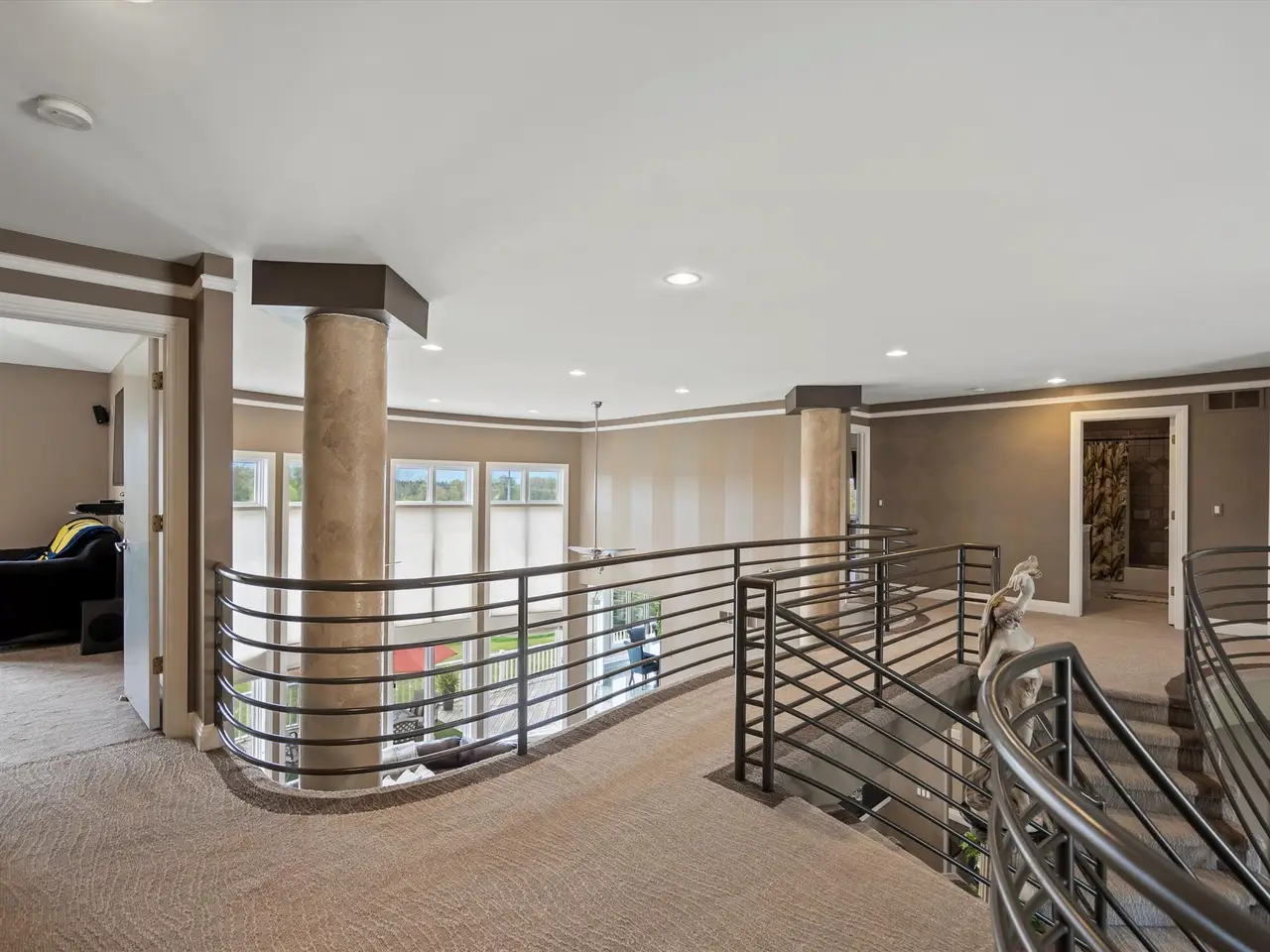 Contemporary Modern estate on 3+ private acres in Addison Township. This spacious home offers 5 bedrooms, 4 full baths, and 1 half bath, including two primary suites—one on the main floor and one on the second level. Open floor plan with clean lines and abundant natural light. The home features a 5-car garage setup with a separate 2-car and 3-car garage. A circular driveway with a water fountain feature provides an elegant entrance. Enjoy outdoor living on the expansive deck that spans the entire back of the home, overlooking a serene property with 100 planted pine trees for added privacy and beauty. The finished walk-out basement includes a home gym, game room, second kitchen, and full bathroom, offering flexible living and entertaining options. Located in a quiet, natural setting yet convenient to Lake Orion, Rochester, and area amenities. This property combines modern style, function, and seclusion.