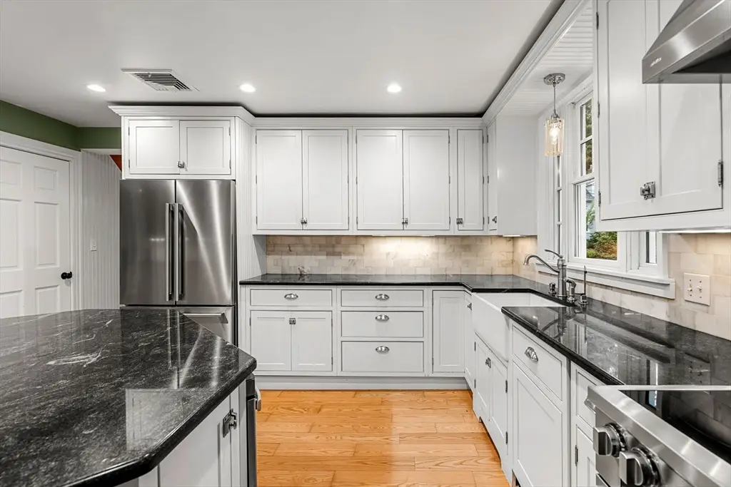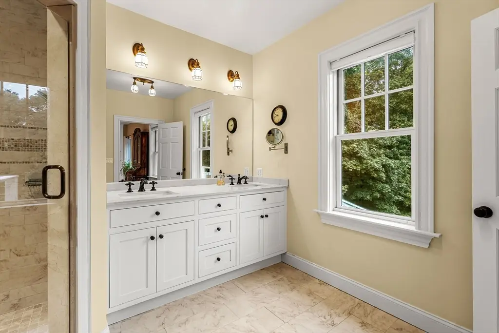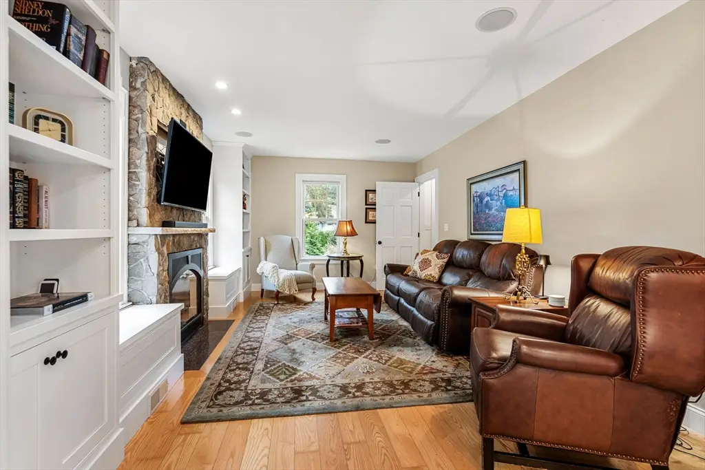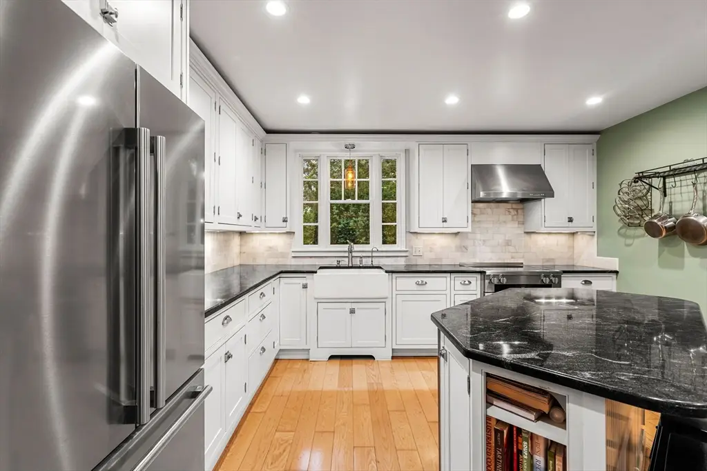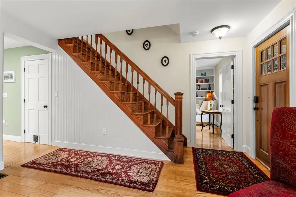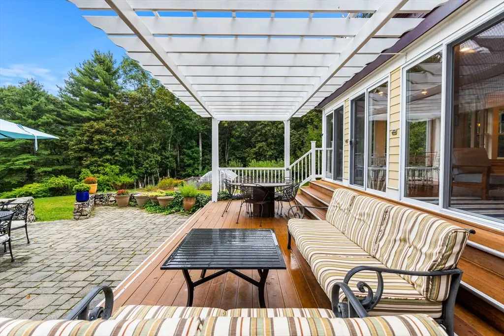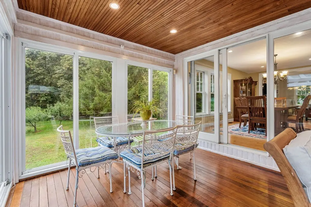 A Colonial Farmhouse, 2009 gut renovation and addition, located three blocks from Lexington Center. Set on a dead end street abutting acres of town owned conservation land with endless walking trails. This home sits on a 19,856 square foot lot and is being sold with an adjoining 34,356 square feet totaling 54,212 square feet of land. (The town has the 34,356 square foot lot recorded as res zoned as undeveloped land. Buyers and buyer agents to perform their own due diligence on this matter. This nine room house has formal living and dining rooms, country kitchen, and fireplace family room, mudroom with half bath and laundry. The second floor has 4 bedrooms and a hall bath with an Air Therapy Tub. The Primary ensuite has sliders to second story balcony, gas fireplace, walk in closet, a bath with bidet, oversized tiled shower and heated floor. The third floor is ready for your finishing touches - heat and air conditioning is completed. Large glass sun porch, pergola covered deck and a grand patio - Spectacular outdoors!