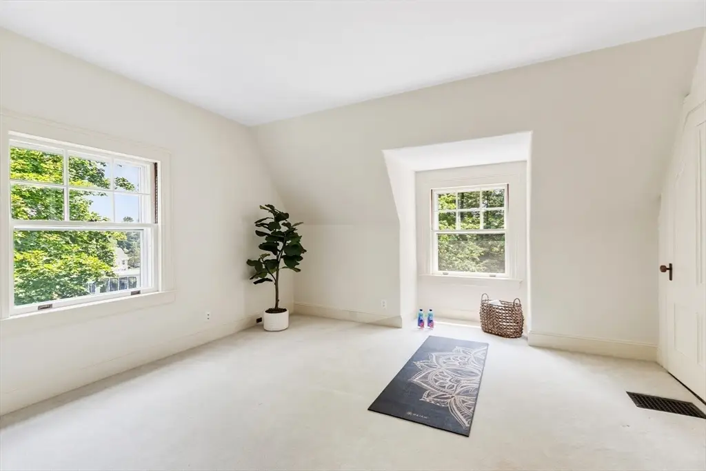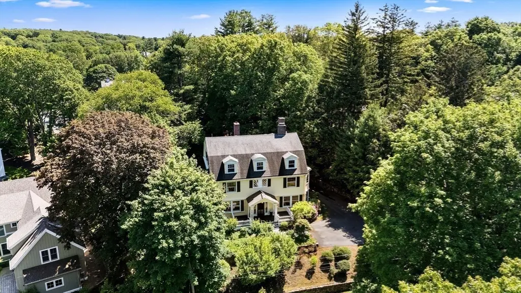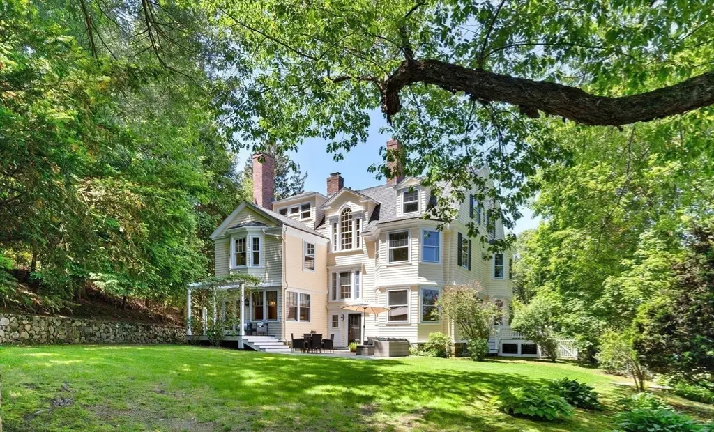 A rare architectural gem in Lexington's coveted Munroe Hill, this Colonial Revival estate sits on an expansive 0.61-acre lot and includes a separate structure with opportunity for an accessory dwelling unit, guest house or studio. Designed by renowned MIT architect Lois Lilley Howe, the main house offers 7 bedrooms, 4 full and 2 half baths, blending historic elegance with thoughtful updates. Inside, you'll find soaring ceilings, quarter sawn oak floors, intricate millwork, and four fireplaces. The designer chef's kitchen features a quartz island, top-tier appliances, and a sunny dining nook. French doors open to tranquil outdoor living - porches, a patio, and a sprawling private yard. The second floor offers three bedrooms plus a primary suite with a fireplace. A finished third level includes additional bedrooms, a guest suite, potential gym, and private office. Just a short stroll to Lexington Center, the Bike Path, and community tennis courts!