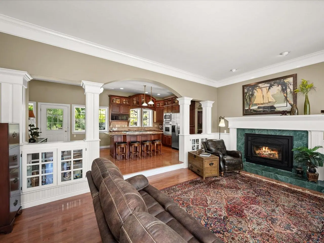Experience the pinnacle of lakeside living with this rare and remarkable 1 acre waterfront estate on pristine Liberty Lake with a private DOCK. Offering over 50' of private shoreline, this property combines breathtaking views, mature trees & direct water access -perfect for boating, swimming, or unwinding at your own private oasis. Step inside & experience complete luxury w/ beautiful hardwood flooring, view windows, box beamed ceilings, butler's pantry w/ wet bar, formal dining & living room, 3 fireplaces, a completely remodeled kitchen & an incredible covered back deck with LAKE VIEWS! The spa- inspired primary suite boasts dual sinks, freestanding tub, tile walk-in shower, walk-in closet & walk out to deck. An Outdoor Enthusiasts Paradise-property is nestled in between the Liberty Lake Regional Park & the Zephyr Lodge which provides serenity & incredible privacy & only steps to the MacKenzie Natural Area for all your recreation interests! Room for 4th bedroom in daylight lower level.