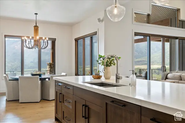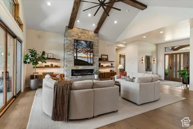 Tucked into the quiet enclave of Durfee Creek Estates, this five bed, five bath mountain retreat balances elegance, function, and the beauty of Ogden Valley's surroundings. With 1.21 acres of privacy backing forested open space, the home embraces its Wasatch Mountain setting in every season-snowy peaks, golden aspens, or lush summer greenery. Inside, natural light floods the great room through expansive windows that frame uninterrupted views of North Fork. Beautiful 7.5 wide plank engineered wood floors anchor the living spaces, while the chef's kitchen, with quartz countertops and a butler's pantry, flows seamlessly to a covered deck-perfect for gathering, dining, or simply soaking in the view. The primary suite offers a spa-like escape with a luxurious steam shower, while the walk-out lower level adds versatility with its own kitchenette - ideal for guests or extended family. Practical luxury defines the home with a heated garage featuring an epoxy floor, whole-house water filtration, surge protector, backup generator, and heat tape. A durable metal roof and oversized garage ensure lasting comfort and peace of mind. Outdoors, covered patios and low-maintenance landscaping extend living into the mountain air. Facing the Wasatch Mountains, this retreat also includes the option to expand: the neighboring 1.4-acre lot, available with engineered plans and a Liberty Pipeline C share. Minutes from world-class skiing, Pineview Reservoir, and endless trails, this home is where mountain serenity and year-round adventure meet in perfect harmony. All property information, boundaries and documents to be verified by buyer.