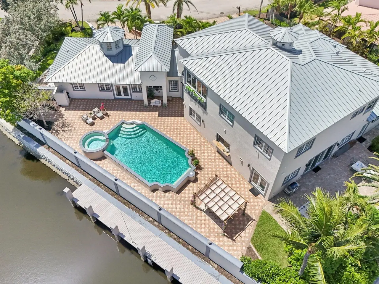 285 feet of waterfront on a prime point lot in prestigious Lighthouse Point with ocean access and no fixed bridges! This 5 bed, 5.5 bath home is loaded with upgrades: new metal roof (2024), 150' composite dock (2023), 20,000 lb boat lift (2023), new water heaters (2024), kitchen updated (2025), bathrooms partially updated (2025), landscaping and sprinkler system (2024), pool heater (2024), updated electrical panel (2024), and two new A/C units plus service (2025). Hurricane impact windows and doors throughout. Includes a renovated private in-law suite with full kitchen and modern finishes. Some new lighting and finishes throughout. Professionally decorated to offer warmth and comfort. Move-in ready—just bring your water toys!