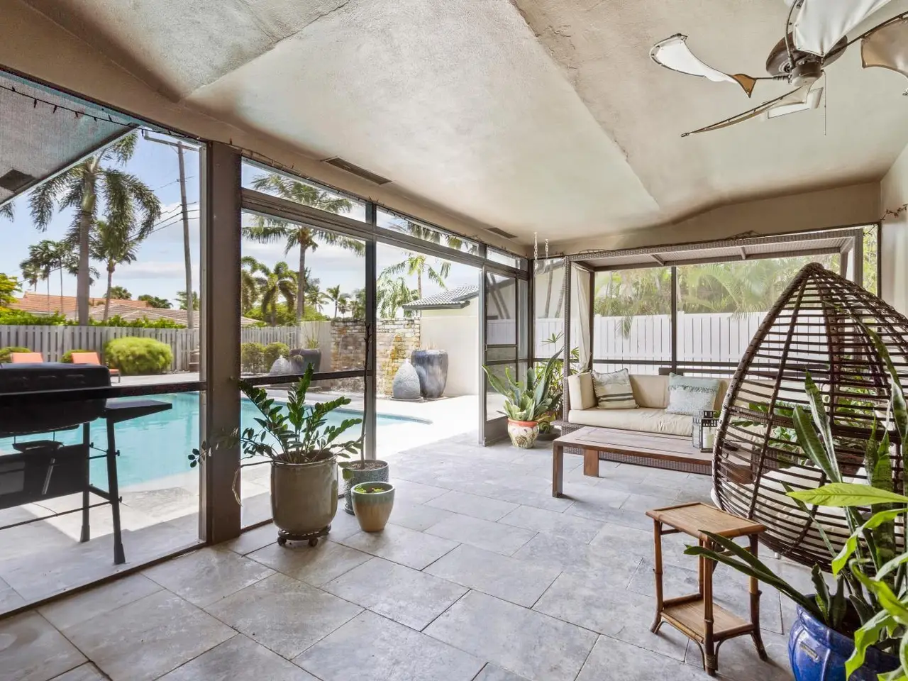 Stunning 3-Bed,2-Bath Pool Home in Prime Lighthouse Point Location, Welcome to your private oasis, split-bedroom floorplan w/ travertine flooring throughout the main living areas. The gourmet kitchen showcases rich wood cabinetry, granite countertops, & crown molding throughout Spacious bedrooms & fully renovated bathrooms, while impact windows & doors ensure peace of mind, brand new roof (Sept 2024) and new AC (May 2025).Situated on an expansive, fully fenced corner lot, it boasts a marble patio & deck, sparkling pool, 20-foot waterfall fountain, hot tub perfectly placed for moonrise views, screened-in patio, a raised Trex deck w/ pergola, Premium materials imported from Bali Don’t miss this rare opportunity to own a turnkey home that blends luxury, privacy, and tropical charm!