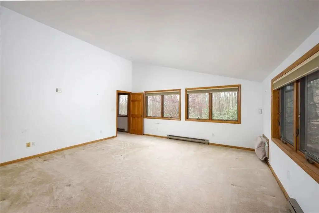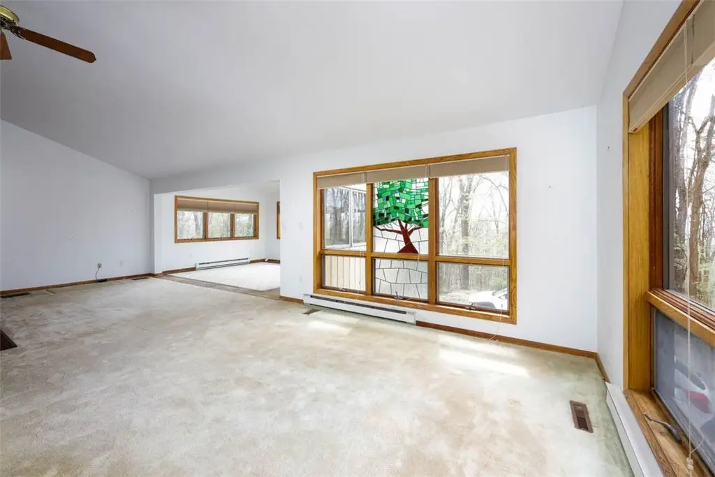 Are you looking for that spot to get away from it all yet be only a few minutes from downtown Ligonier? Then this contemporary private home is for those looking for hunting, hiking and relaxing on 34 acres of wooded bliss! Original owner, fantastic stained glass windows, large open living, dining and sun rooms! Main floor owner's suite with two large dressing areas and 3 bedrooms up on the second floor! Large deck off the kitchen which is partially covered and there's a large fenced in area for fur babies and a single step into the house from the upper garage! Whole house propane generator too! And unless you're a bird, no one can see this home! Real privacy!
