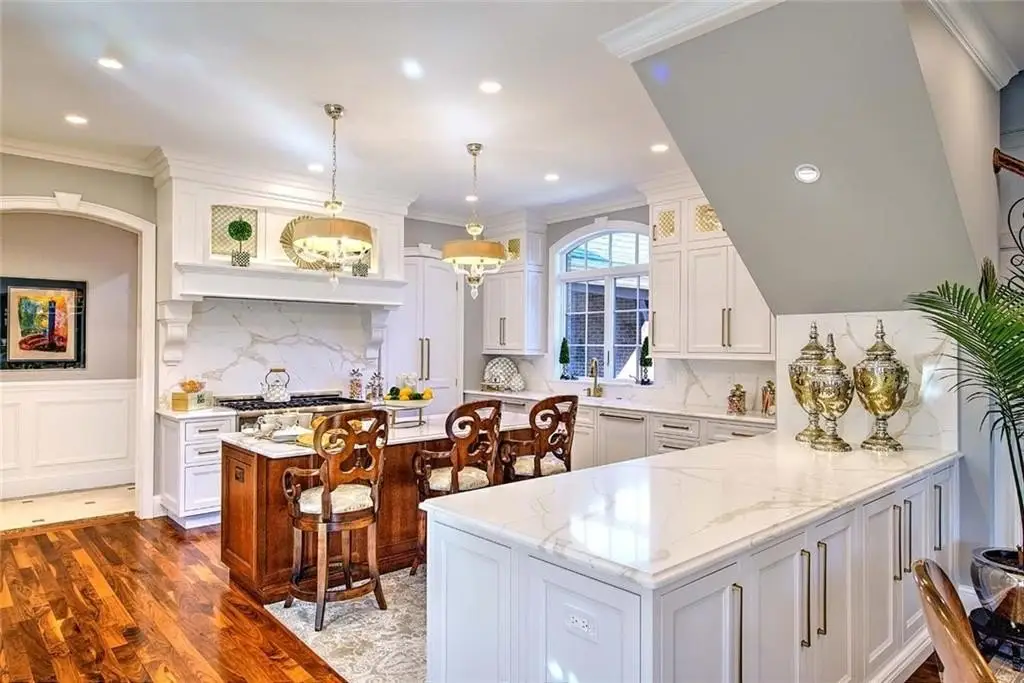 Step into a world where timeless European elegance meets modern luxury. This custom brick and stone estate is as breathtaking inside as it is outside, with every detail crafted to inspire. From the grand approach, you’re greeted by lush landscaping and hand-selected masonry. The outdoor oasis sets the stage for unforgettable gatherings with a resort-style saltwater pool, outdoor bath, fully equipped kitchen, fireplace, new bluestone patio and a basketball court. A four-car garage offers ample space to protect your prized possessions. Inside, over 5,700 square feet of above-grade living space welcomes you with sophistication at every turn, including an ensuite for each of the 5 bedrooms. The main level includes two bedrooms, among them a stunning primary suite with dual walk-in closets, a private laundry, and a spa-inspired bath. Soaring ceilings and a gas fireplace create a warm and inviting family room, while the formal dining room, living room, office, and billiards room provide space for every occasion. At the heart of the home lies a custom kitchen with Fieldstone Cabinetry, Quartz countertops, imported Murano crystal chandeliers, and appliances including Sub-Zero and Thermador elevate this kitchen into a work of art. The finished lower level offers a private gym, recreation room, wine bar, and a movie theater designed for unforgettable entertainment. This home blends superior sophistication with executive comfort, it stands among the finest luxury estates in Lincoln.