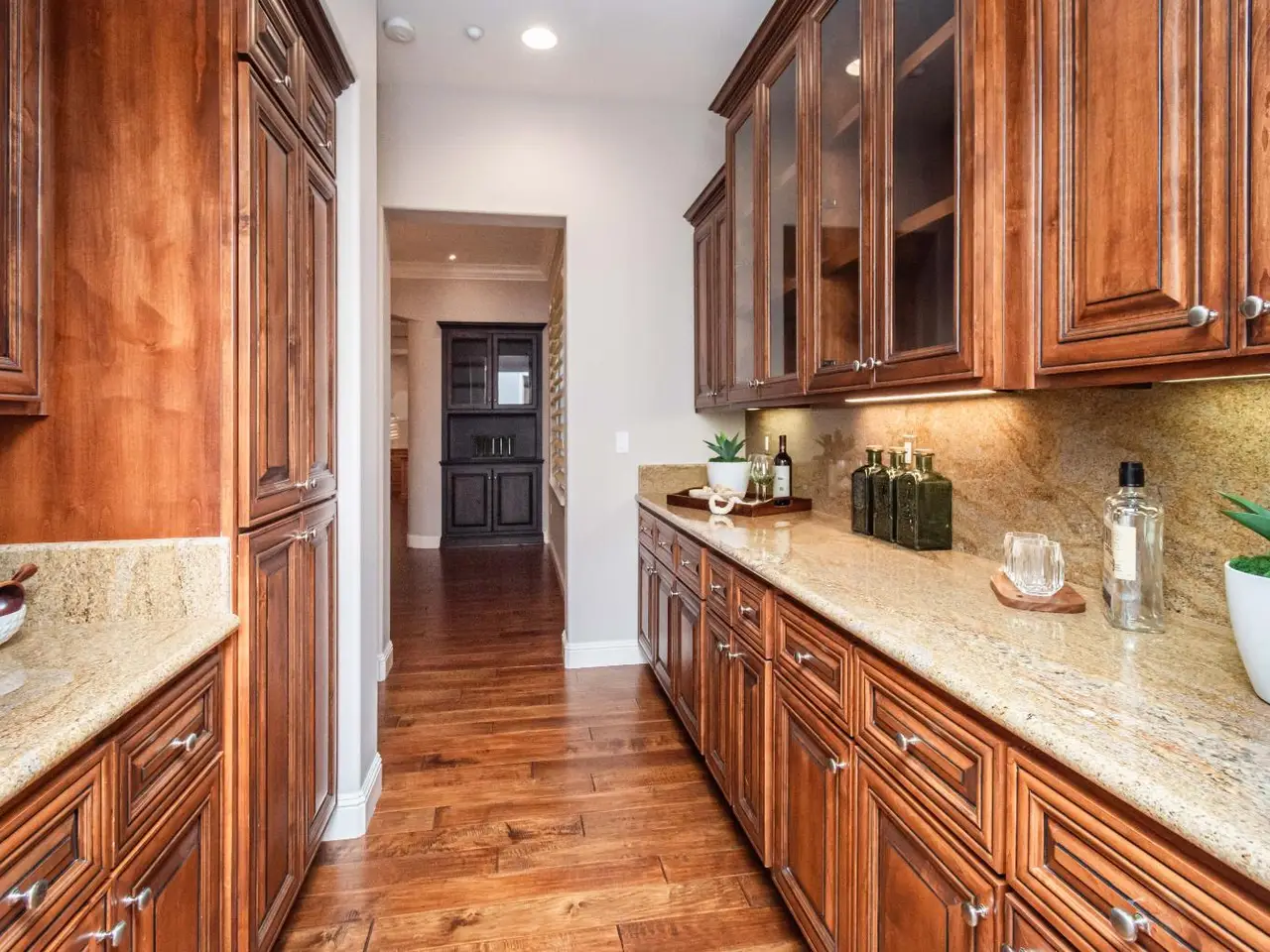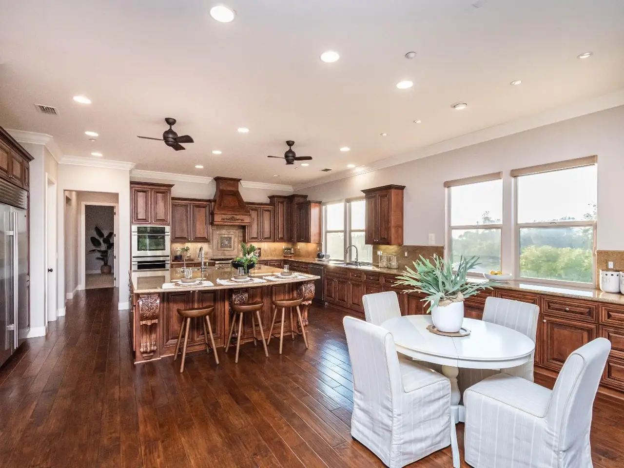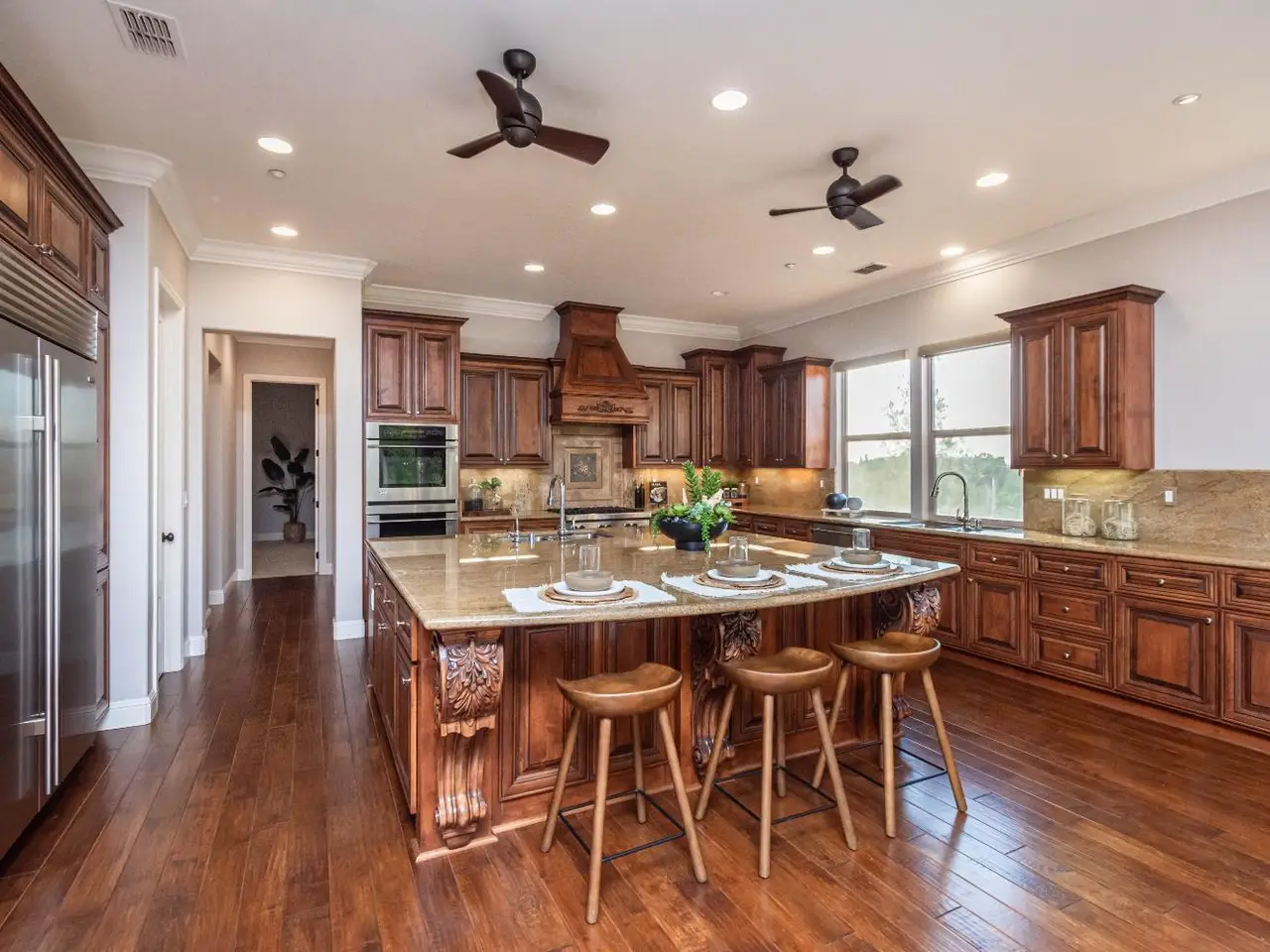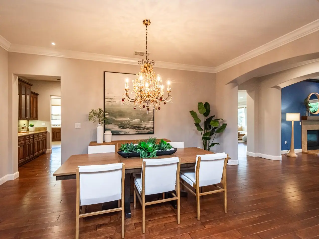 Elegant Semi-Custom Home in the Prestigious Gated Community of Azul. This expansive 5-bed, 6-bath home offers luxury living, complete with a dedicated office & thoughtful design throughout. The gourmet kitchen features top-tier stainless steel appliances, including a Sub-Zero refrigerator/freezer, Wolf range, double oven, butler's pantry, massive island & a dumbwaiter. The open-concept layout blends living & entertaining spaces, while formal dining & separate gathering areas provide versatility. Elegant touches include custom built-ins, crown molding & hand-scraped wood floors. All 4 bedrooms are on the main floor with en suite, for comfort & privacy. The lower level offers a private retreat ideal for guests, grandparents, or kids' sleepovers featuring a living area, bedroom, full bath, & direct access to the pool. Enjoy sunset & city light views from the upstairs patio. Outdoor amenities include a built-in BBQ, sports court, putting green & pool. A 4-car garage with epoxy floors & recently added Tesla solar complete this 1.2-acre gem that backs to open space. Residents enjoy scenic trails throughout the neighborhood; Catte Verdera Golf Course is just across the road. Recreation, restaurants, entertainment & shopping are within minutes.