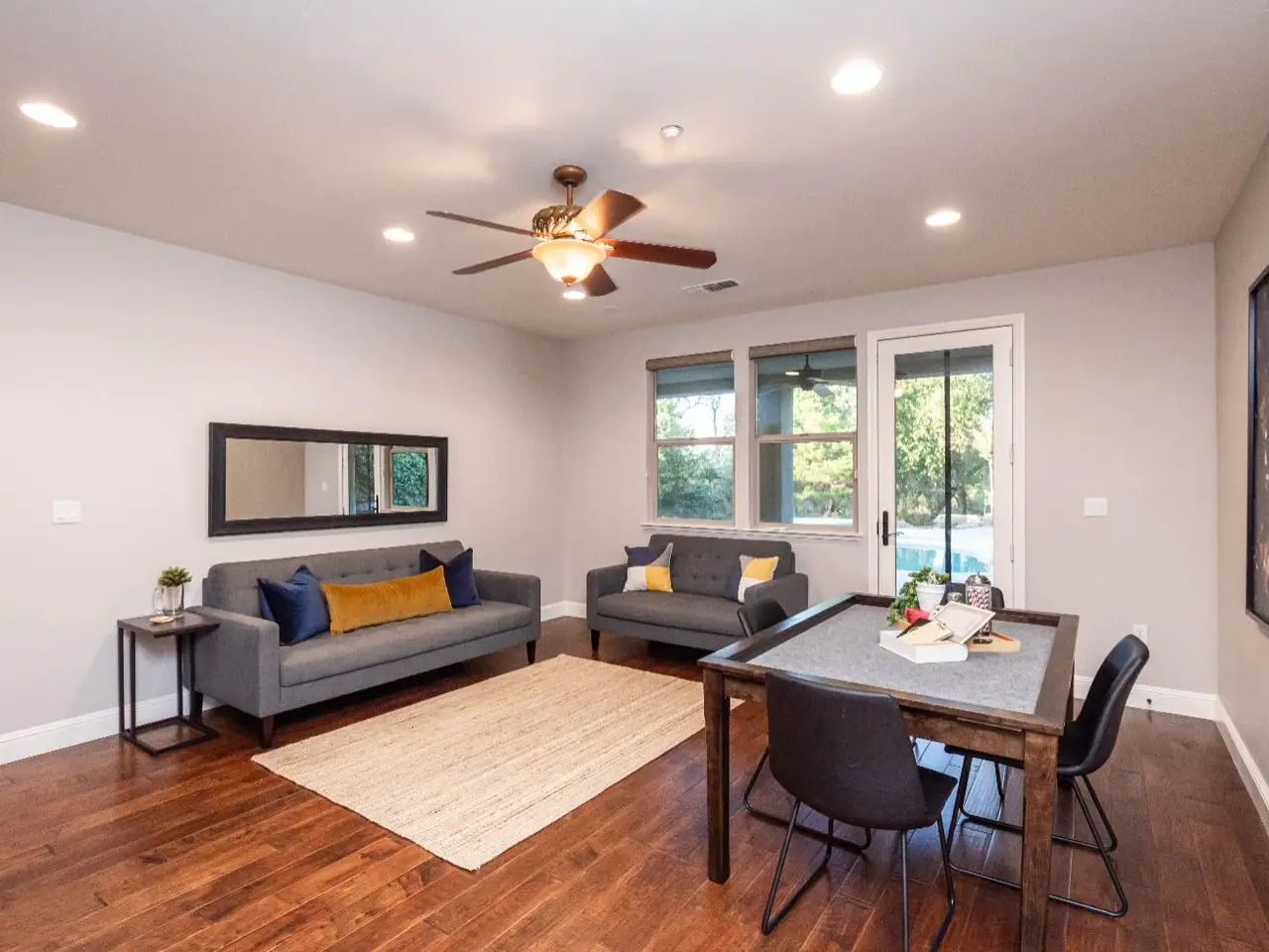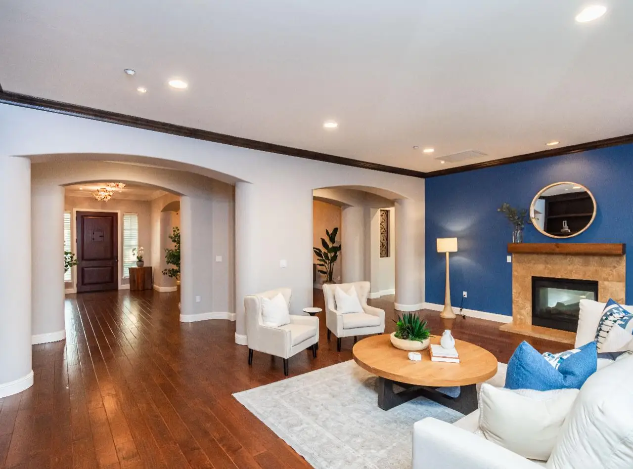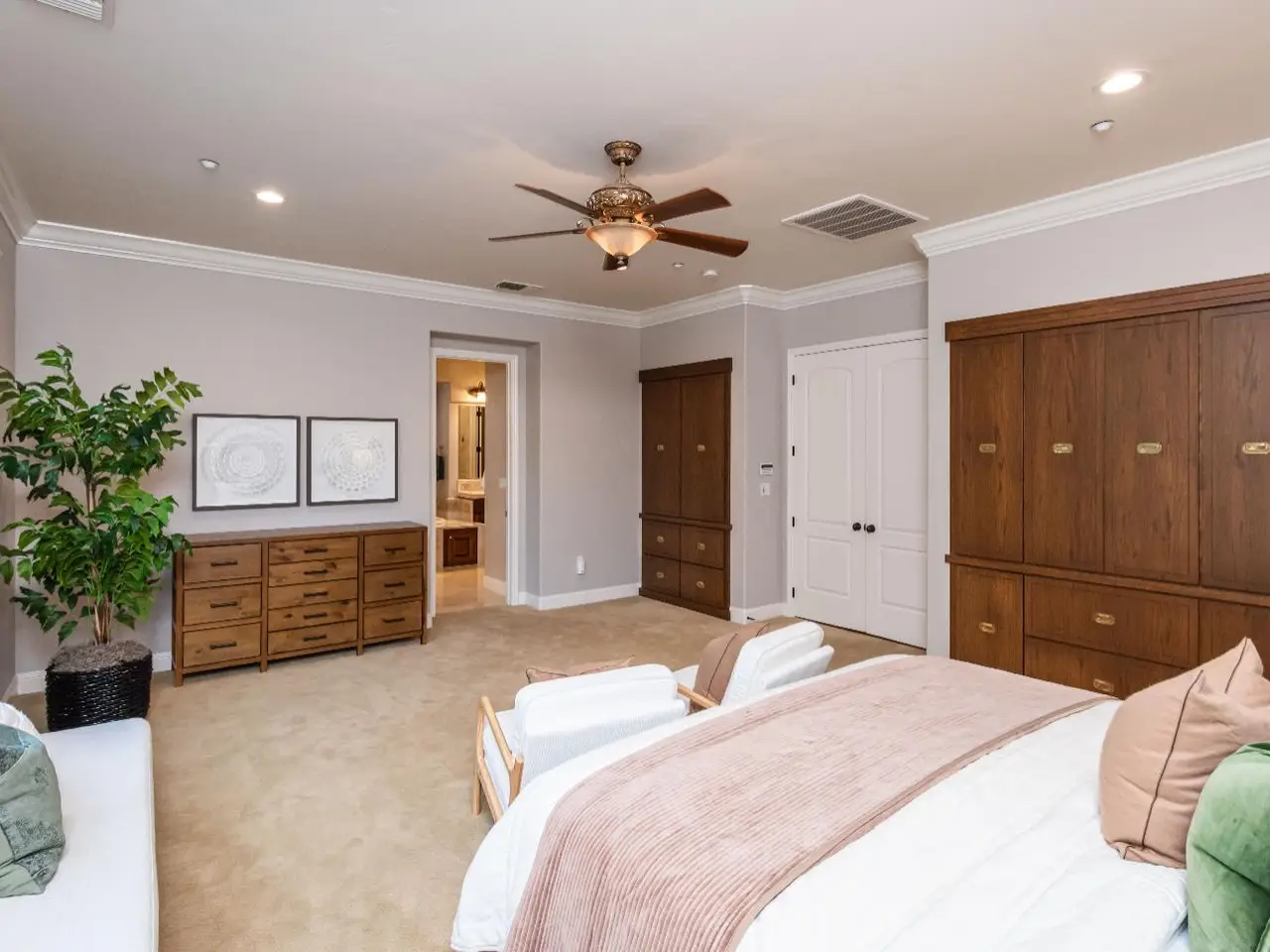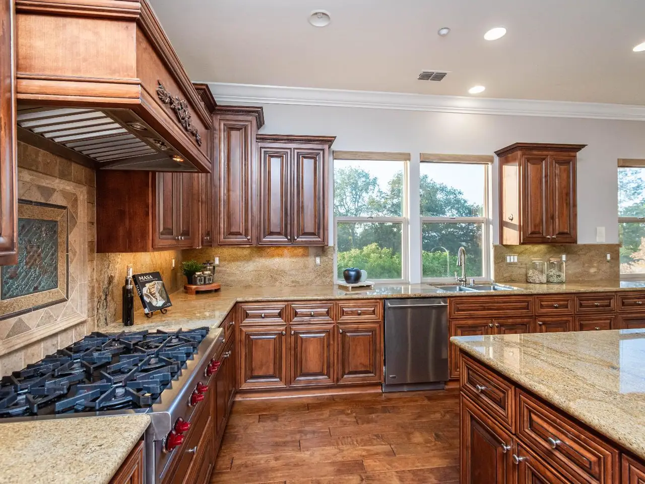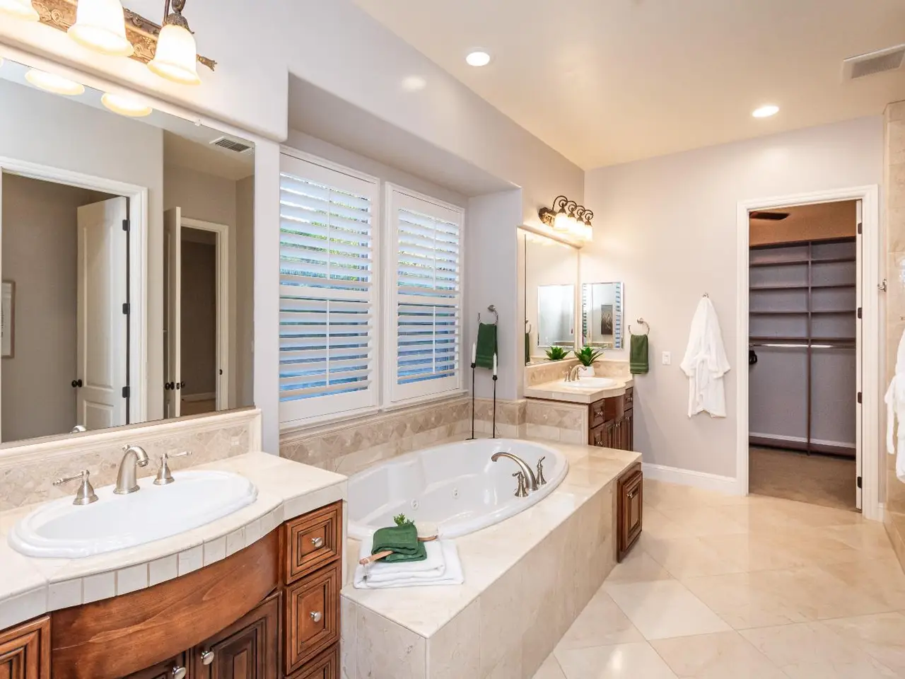 Elegant Semi-Custom Home in the Prestigious Gated Community of Azul. This expansive 5-bed, 6-bath home offers luxury living, complete with a dedicated office & thoughtful design throughout. The gourmet kitchen features top-tier stainless steel appliances, including a Sub-Zero refrigerator/freezer, Wolf range, double oven, butler's pantry, massive island & a dumbwaiter. The open-concept layout blends living & entertaining spaces, while formal dining & separate gathering areas provide versatility. Elegant touches include custom built-ins, crown molding & hand-scraped wood floors. All 4 bedrooms are on the main floor with en suite, for comfort & privacy. The lower level offers a private retreat ideal for guests, grandparents, or kids' sleepovers featuring a living area, bedroom, full bath, & direct access to the pool. Enjoy sunset & city light views from the upstairs patio. Outdoor amenities include a built-in BBQ, sports court, putting green & pool. A 4-car garage with epoxy floors & recently added Tesla solar complete this 1.2-acre gem that backs to open space. Residents enjoy scenic trails throughout the neighborhood; Catte Verdera Golf Course is just across the road. Recreation, restaurants, entertainment & shopping are within minutes.