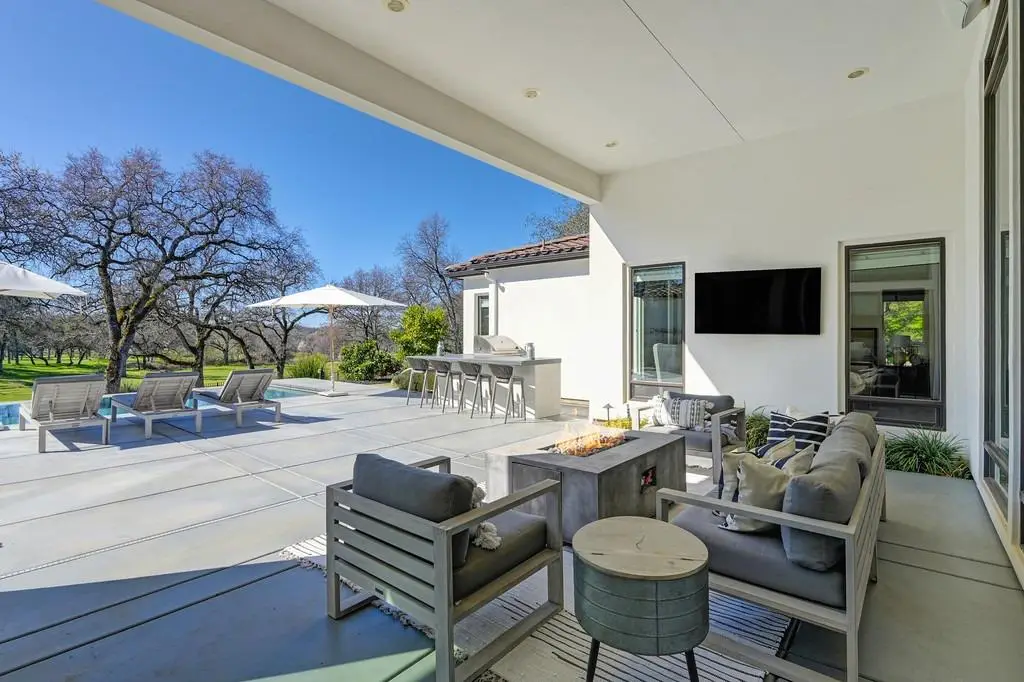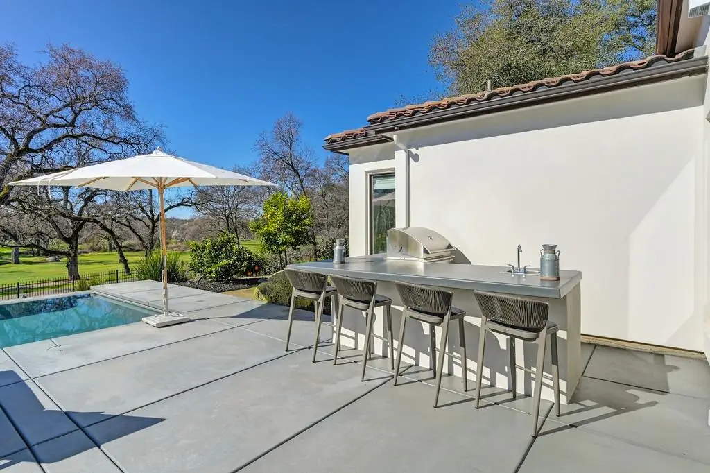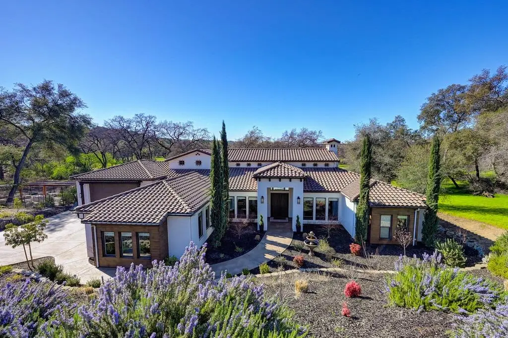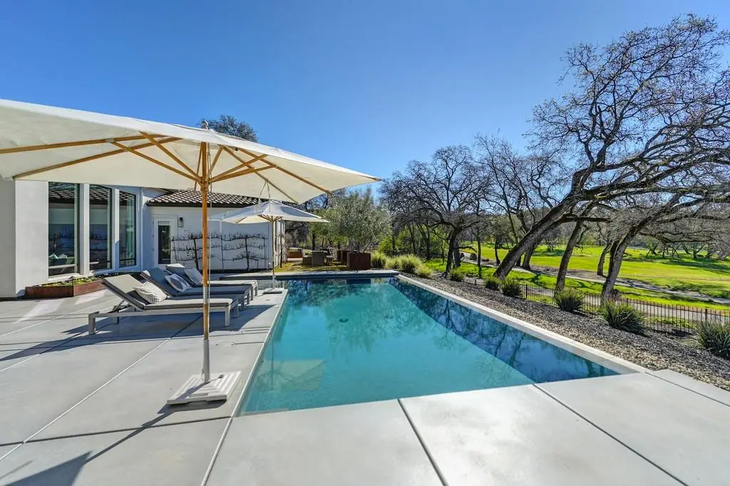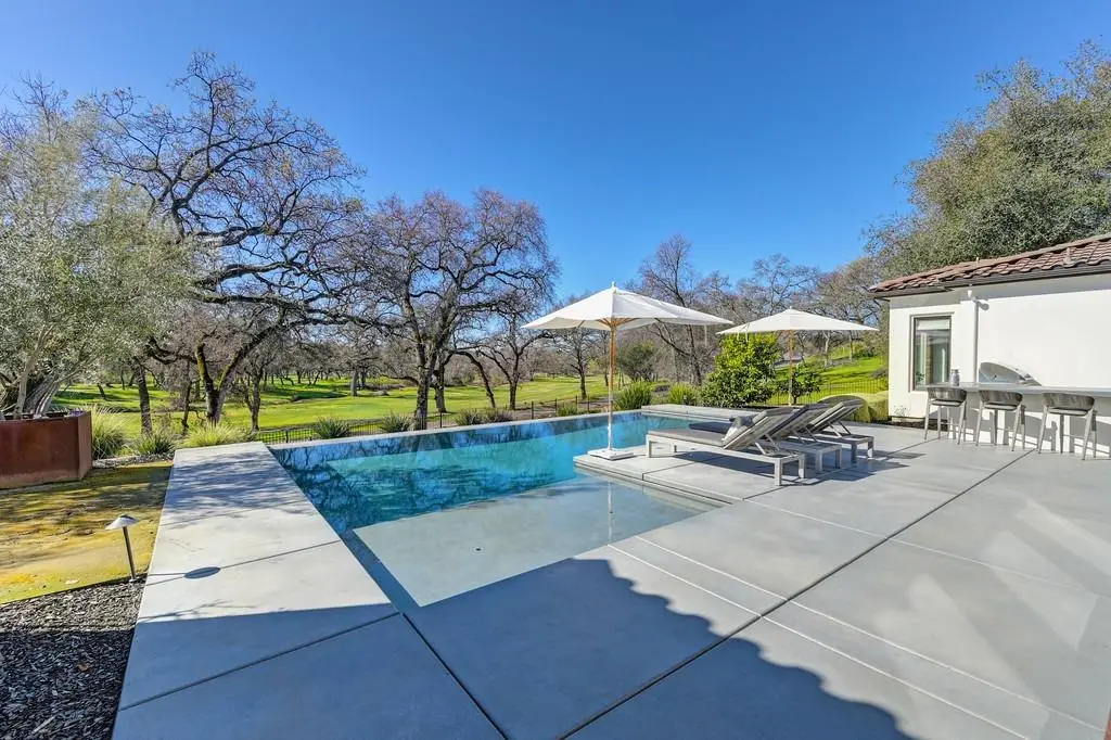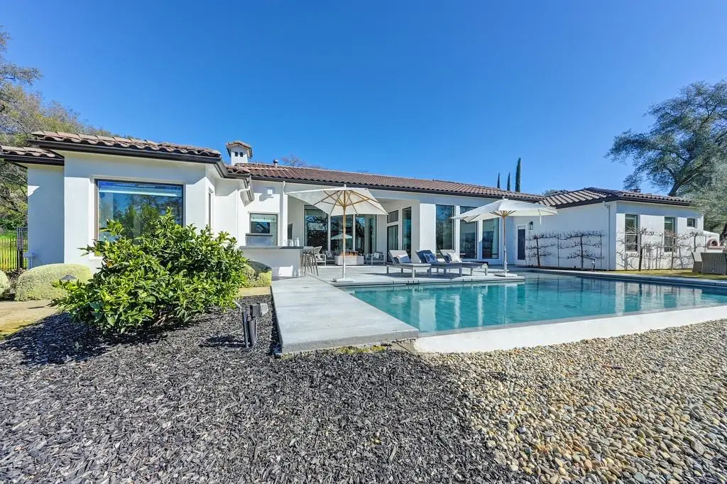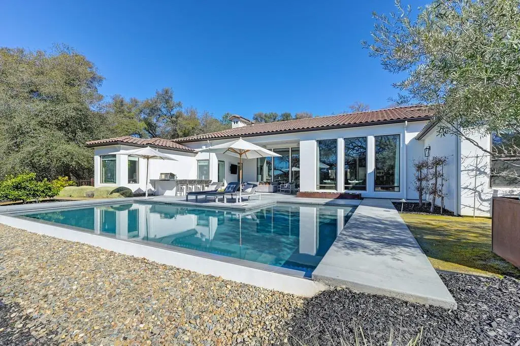 Rare find! Single-story custom home backing to the course with setback separation for privacy in the gated Catta Verdera Country Club, Lincoln. 4,375 square foot four bedroom, four bath plus office on a .73-acre lot with 1,320 square foot garage. Live the luxury indoor-outdoor lifestyle in exclusive Catta Verdera. The chef's kitchen is a culinary dream, equipped with Wolf and Thermador professional appliances, sleek quartz countertops, spacious island and large walk-in pantry. Designed and built for gracious living and entertaining, this home proudly presents with high ceilings, wide plank white oak floors, open floor plan and resort-style backyard that blends seamlessly with indoor spaces. Outside, enjoy patios for lounging, a sparkling sport pool, raised vegetable beds, fruit trees, pizza oven and intimate al fresco dining among the olive trees.