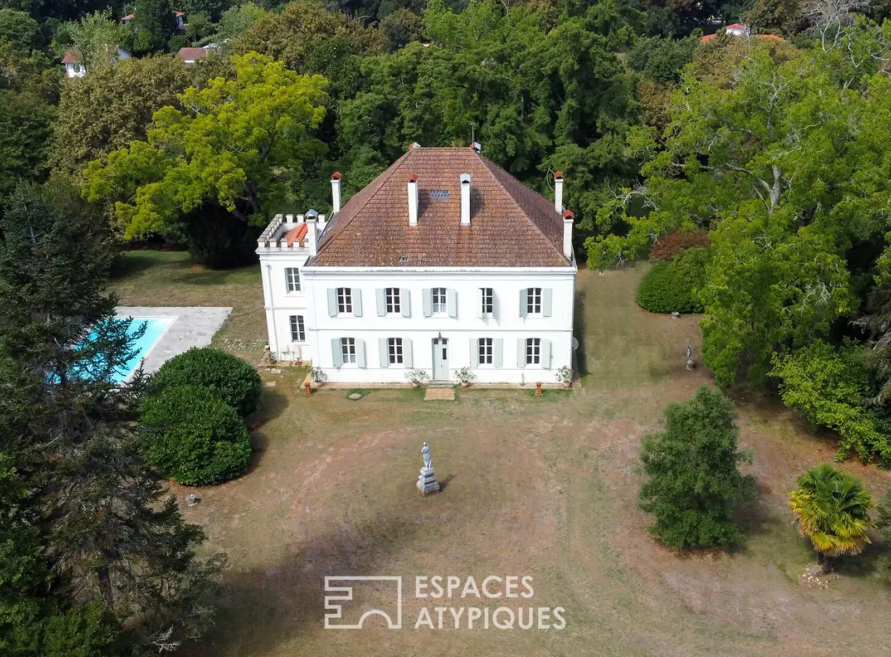 Built in 1863, this elegant mansion resembles a small chateau, nestled in the heart of a wooded park of over 4.5 hectares. With its 408 sqm of living space, it embodies the timeless charm of historic residences.The ground floor features vast reception rooms bathed in light, where antique fireplaces, period woodwork, and cement tiles create a refined atmosphere. The family kitchen completes this welcoming living space.A majestic staircase leads to the upper floors, where several comfortable bedrooms are located. The second floor houses a fully convertible attic, offering remarkable additional potential.Outside, the park reveals a wide variety of tree species, punctuated by an oak grove and an old stone water tower.The heated swimming pool, perfectly integrated into its environment, promises precious moments of relaxation in all seasons.Very large outbuildings complete the complex, leaving room for multiple uses, whether private or professional.An authentic Landes house with its wine cellar, to be renovated, brings a heritage dimension and additional project potential.This unique estate combines architectural elegance, preserved nature and infinite development possibilities. A true timeless refuge, it will appeal to lovers of characterful homes looking for an exceptional place to live in the heart of the Landes.REF. 12573EALDAdditional information* 12 rooms* 6 bedrooms* 2 bathrooms* 1 bathroom* Outdoor space : 45440 SQM* Property tax : 3 690 €Energy Performance CertificatePrimary energy consumptionc : 135 kWh/m2.yearHigh performance housing*A*B*135kWh/m2.year24*kg CO2/m2.yearC*D*E*F*GExtremely poor housing performance* Of which greenhouse gas emissionsc : 24 kg CO2/m2.yearLow CO2 emissions*A*B*24kg CO2/m2.yearC*D*E*F*GVery high CO2 emissionsEstimated average annual energy costs for standard use, indexed to specific years 2021, 2022, 2023 : between 4600 € and 6280 € Subscription IncludedAgency feesThe fees include VAT and are payable by the vendorMediatorMediation Franchise-Consommateurswww.mediation-franchise.com29 Boulevard de Courcelles 75008 ParisInformation on the risks to which this property is exposed is available on the Geohazards website : www.georisques.gouv.fr