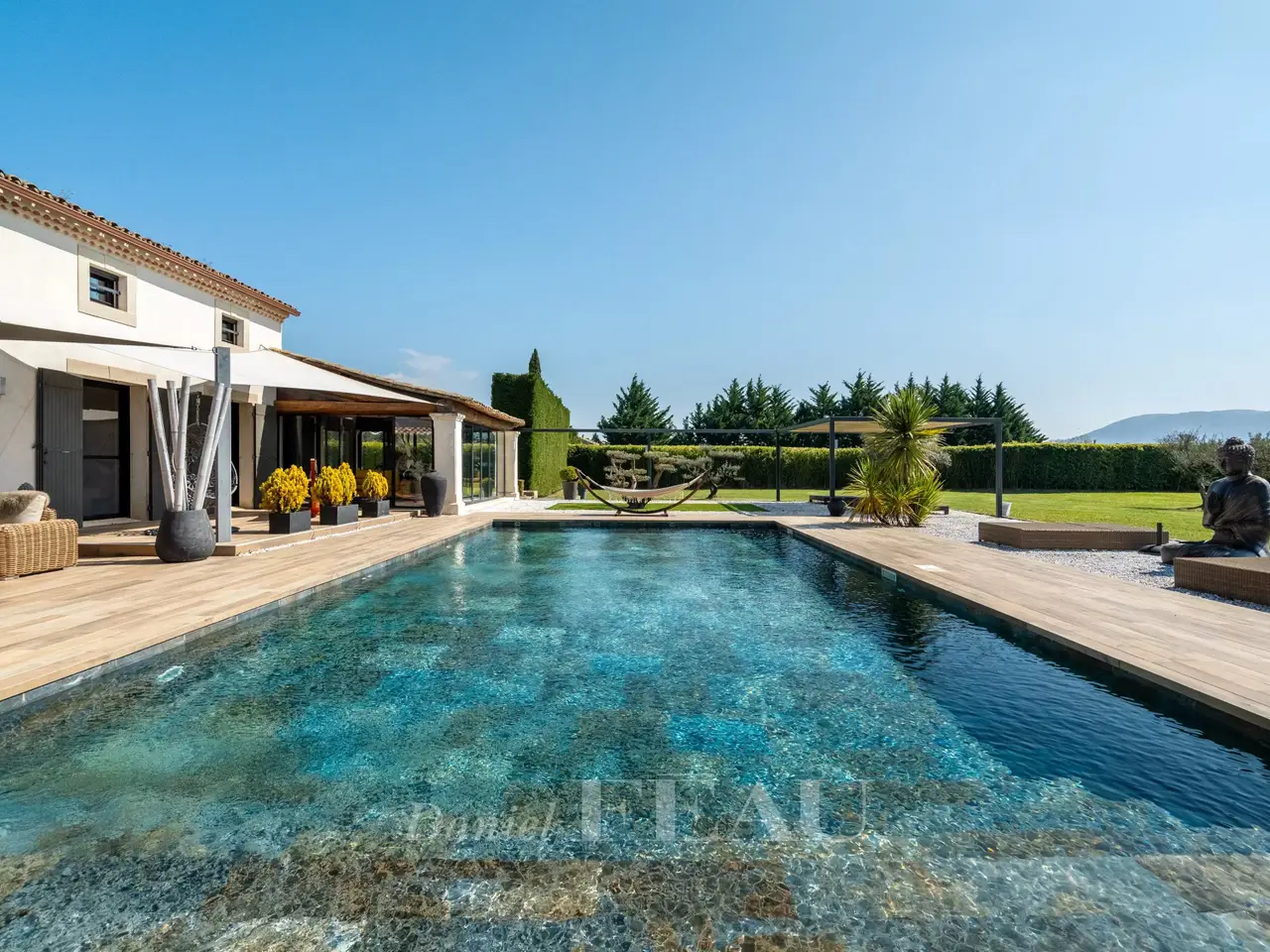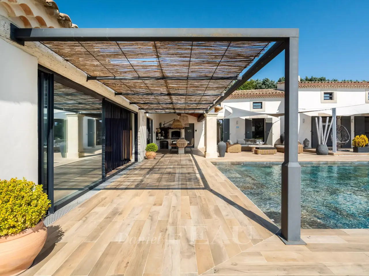 This beautifully appointed mainly single-storey property is located a few minutes from l'Isle sur la Sorgue and 30 minutes from Avignon TGV station. Set in about 1.7 hectares of landscaped grounds with an olive grove (30 trees) and commanding an open view of the Luberon countryside, it offers 240 sqm of living space including a spacious living/reception room bathed in sunshine thanks to wide patio windows, two sitting rooms, an equipped kitchen, a veranda and three suites (two with dressing rooms). Upstairs are three further rooms currently fitted as a bedroom, a home cinema and a fitness room with a bathroom. Most rooms directly access a 12 x 6 metre swimming pool with a pool house. Set apart in the garden is a fully fitted guest chalet comprising a kitchen, two bedrooms and a shower room. With a car port (3 vehicles). Automatic sprinkling.