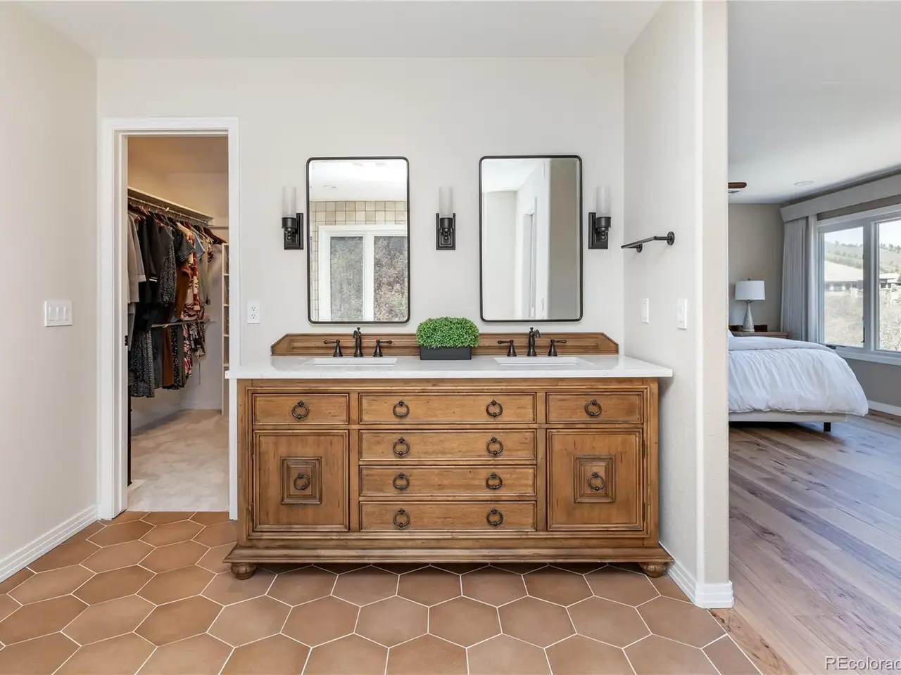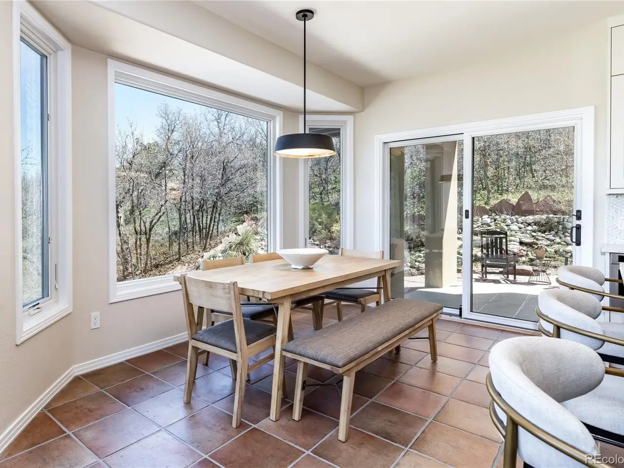 An inspiring setting amongst magnificent red rock formations, this newly renovated home merges seamlessly with its stunning surroundings. The striking contemporary residence has been crafted using the finest materials, perfect for entertaining as well as more intimate family gatherings. Recently replaced stucco + refinished deck, balcony, garage & front doors, and new concrete installed on portions of the front driveway. Freshly painted interior features newer kitchen & baths, new windows by Renewal by Andersen + new automatic blinds, interior fans & light fixtures throughout. Newer HVAC & upgraded electrical systems add to the impeccably maintained property. Enter to a large foyer with beautiful staircase, flanked by handsome study and formal dining room, each with access to patios. Chefs kitchen offers high-end appliances, custom cabinetry, quartzite countertops & marble tile backsplash, open to a sun-drenched breakfast room as well as double-height great room highlighted by tile floors, fireplace & built-ins + 2-story windows looking out to the deck/patio and huge expanses of scrub oak & natural grasses beyond, infusing the entire property with glorious views of the spectacular red rocks. Guest bedroom, powder room & remodeled laundry/mud room complete the main level. On the 2nd level you find a primary suite with newer wood floors, sitting area, balcony, dual walk-in closets & new, spa-like 5pc bath. Loft, bedroom en suite with full bath & 2 bedrooms with adjoining 4pc bath are also upstairs. Walkout level is comprised of spacious family room, 2 bedrooms, full 4pc bath, storage/mechanical as well as private nannys quarters including living room, bedroom, plus newer kitchen & full bath. Both areas open out to a large flagstone patio featuring newer hot tub, perfect for relaxation after hiking on the impressive 12 miles of private hiking trails in the community, or golfing on nearby Roxborough golf course, renowned as the most scenic golf course in Colorado.