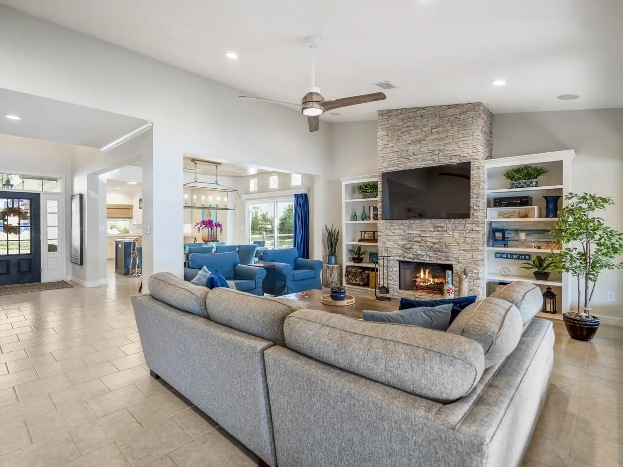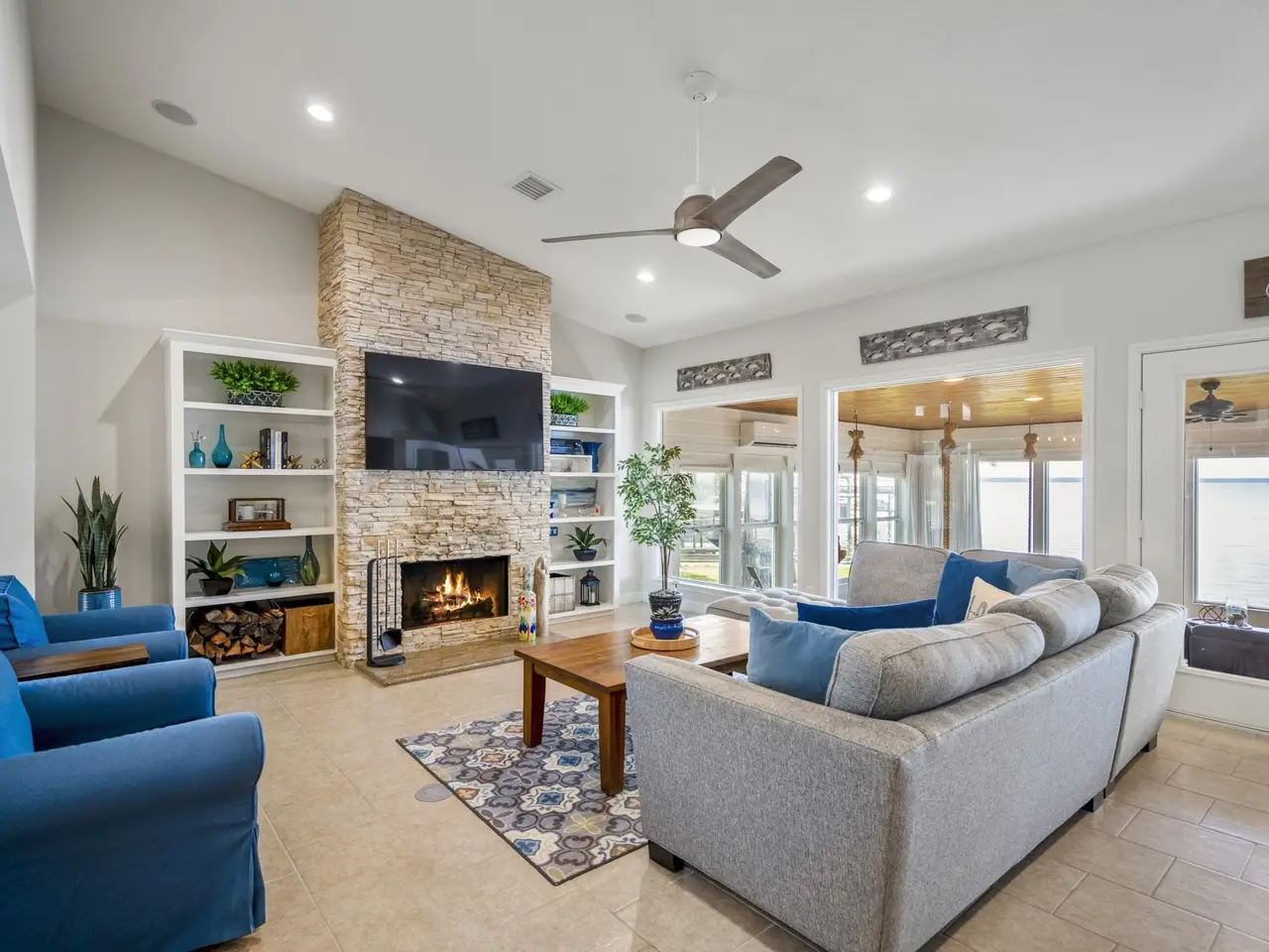 Experience refined lakefront living at 615 Inlet Dr, nestled along the prestigious Scenic Loop. This custom-built waterfront retreat showcases panoramic views from its expansive sunroom and an open-concept layout ideal for entertaining. The remodeled gourmet kitchen, elegant main-level primary suite, and game room with wet bar and built-in bunks offer comfort and sophistication throughout. Enjoy approximately 160’ of open-water frontage, multiple decks, and a premium boathouse featuring a covered deck perfect for lakeside relaxation. Additional highlights include a whole-home generator, new workshop, water softener, two fireplaces, and an outdoor shower. Located in a welcoming, golf cart–friendly community, this move-in-ready haven is perfect for family gatherings or peaceful weekend escapes—where every detail embodies lakeside luxury.