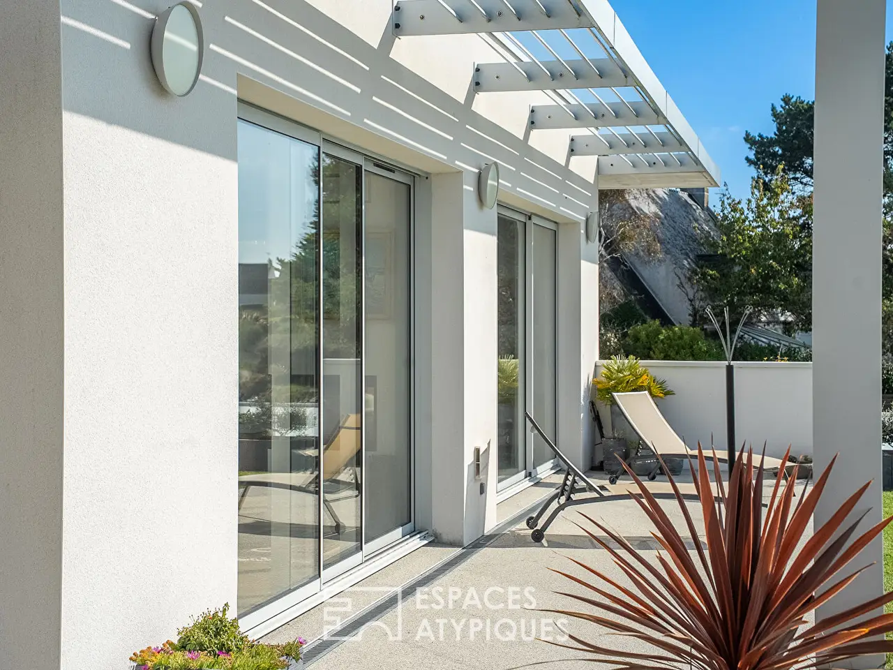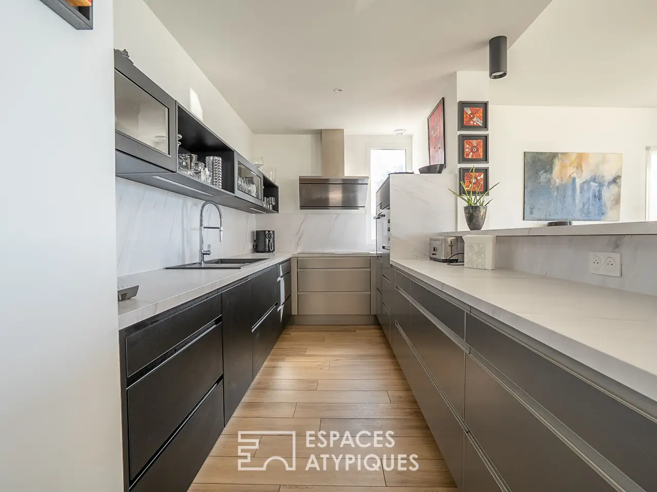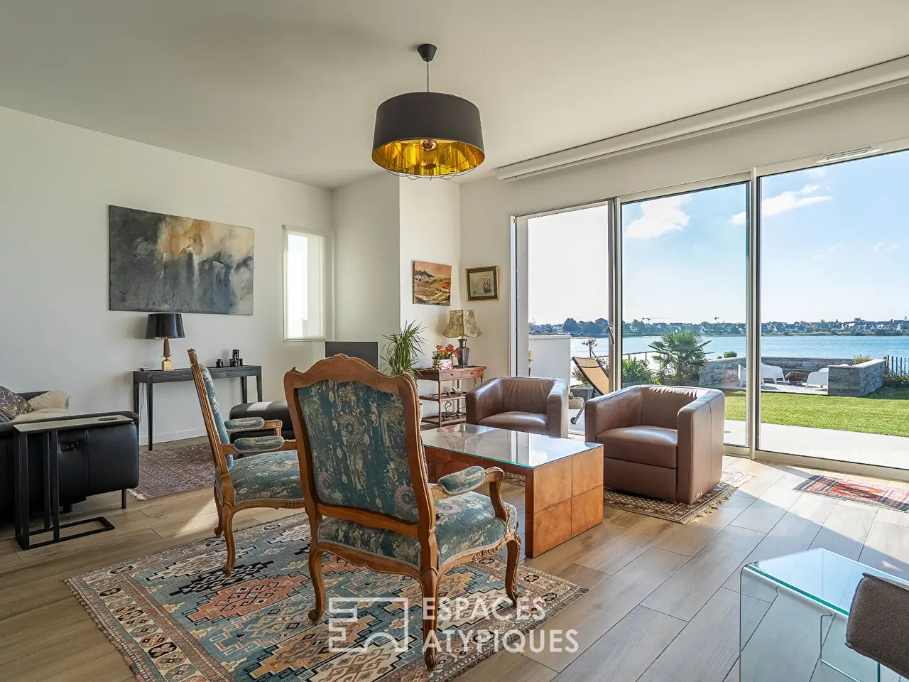 Located in Locmiquelic, on the waterfront and less than a five-minute walk from the shops, this contemporary house combines panoramic views of Lorient harbor, spaciousness, and timeless elegance. A rare property where light and the sea create a changing setting every day.Upon entering, the gaze is drawn to the living room flooded with natural light and opening onto a south-facing terrace, offering breathtaking views of Port-Louis, Larmor-Plage, and Groix. The kitchen, with its simple, contemporary lines, naturally extends the living area. An office space, a utility room, and a master suite on one level with a dressing room and shower room complete this first level, designed for everyday comfort.Upstairs, two bright bedrooms share a shower room and a fitted dressing room, while the top level houses a charming attic bedroom with a shower room, offering a flexible space according to your desires: guest room, workshop, or relaxation area.The complex is captivating for its architectural coherence, and the meticulous finishing touches reflect a masterful renovation, combining modernity and a relaxed lifestyle.Outside, the garden offers a spectacular panorama. Several terraces invite contemplation, whether it's the sunrise over the water or the ballet of sailboats in the late afternoon. The private gate provides direct access from the garden to the street, connecting the town's shops and services in just a few steps.A subtle combination of character, volume and brightness, this elegant residence will appeal to lovers of open spaces and exceptional views.ENERGY CLASS: B / CLIMATE CLASS: BEstimated average annual energy expenditure for standard use based on energy prices for the years 2021, 2022, 2023: between EUR1,200 and EUR1,690/year.Information on the risks to which this property is exposed is available on the Georisques website: www.georisques.gouv.frSimon JOUANNO06 31 35 17 70RSAC Lorient 929 999 316REF. 562EAMAdditional information* 6 rooms* 4 bedrooms* Outdoor space : 607 SQM* Property tax : 1 975 €Energy Performance CertificatePrimary energy consumptionb : 66 kWh/m2.yearHigh performance housing*A*66kWh/m2.year6*kg CO2/m2.yearB*C*D*E*F*GExtremely poor housing performance* Of which greenhouse gas emissionsb : 6 kg CO2/m2.yearLow CO2 emissions*A*6kg CO2/m2.yearB*C*D*E*F*GVery high CO2 emissionsEstimated average annual energy costs for standard use, indexed to specific years 2021, 2022, 2023 : between 1200 € and 1690 € Subscription IncludedAgency feesThe fees include VAT and are payable by the vendorMediatorMediation Franchise-Consommateurswww.mediation-franchise.com29 Boulevard de Courcelles 75008 ParisInformation on the risks to which this property is exposed is available on the Geohazards website : www.georisques.gouv.fr