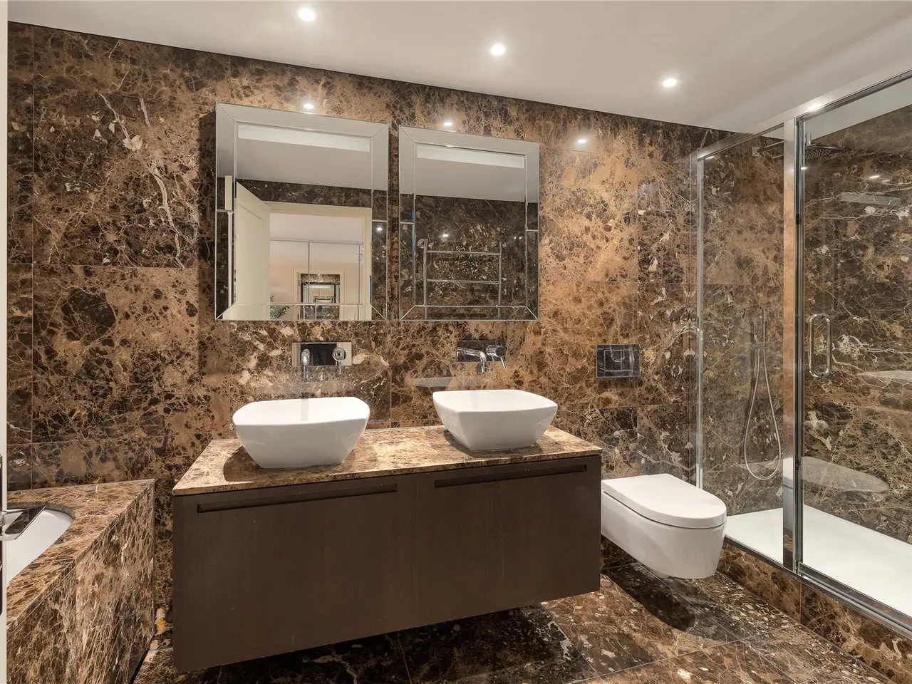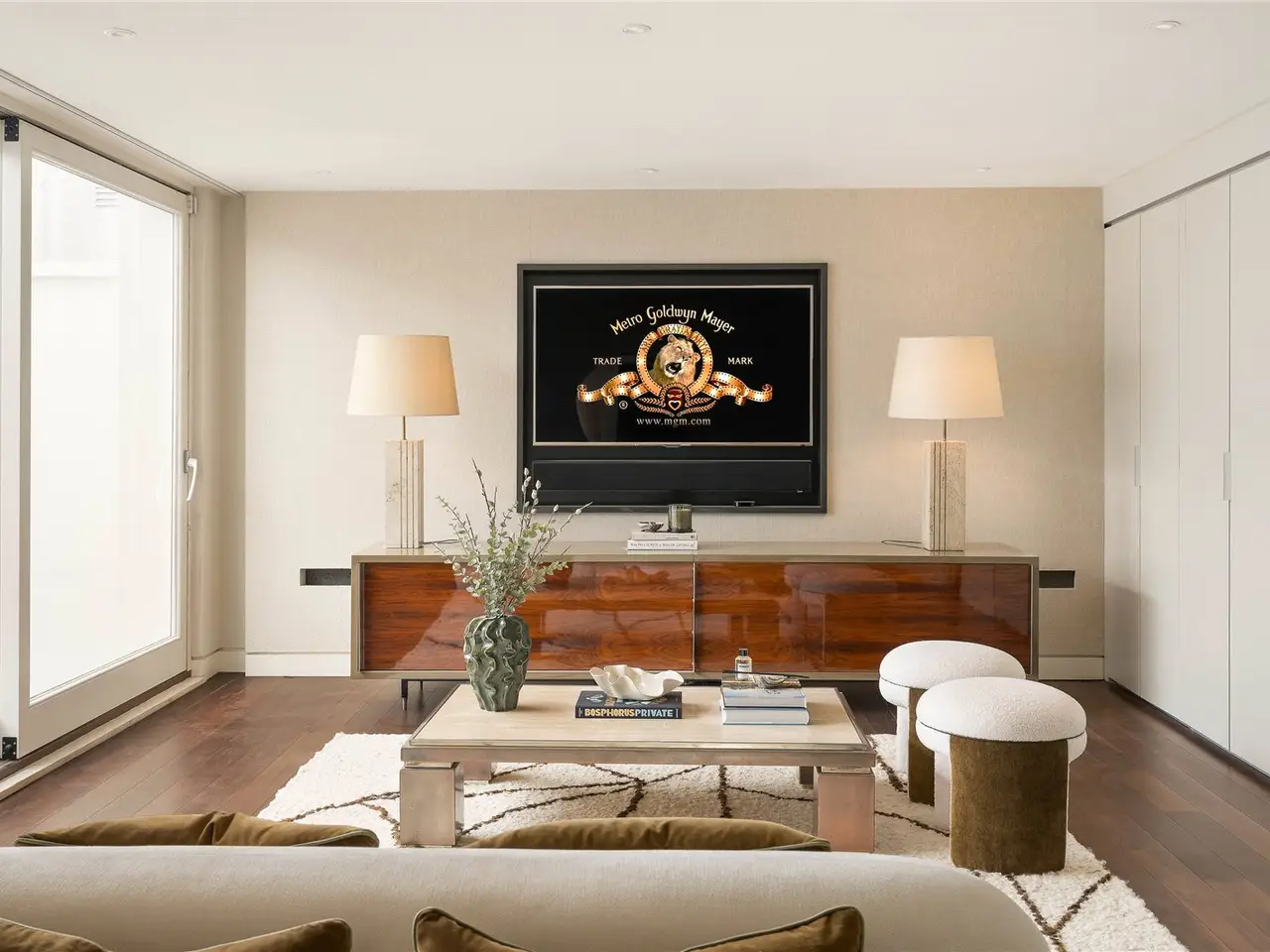 This exquisite south facing triplex maisonette harmoniously blends traditional style features; such as its over 4 metre high ceilings, mantelpiece, intricate cornicing, wooden parquet floors, large windows and French doors leading directly onto communal gardens, with contemporary conveniences and all the amenities necessary for modern, luxury living. The home unfolds over the first, ground and lower ground floors of this beautiful white-stucco building directly opposite Hyde Park.