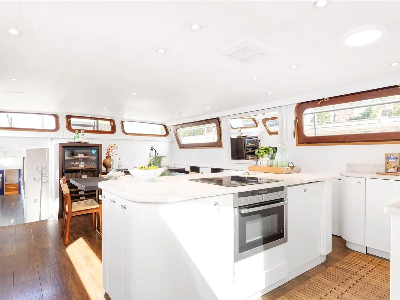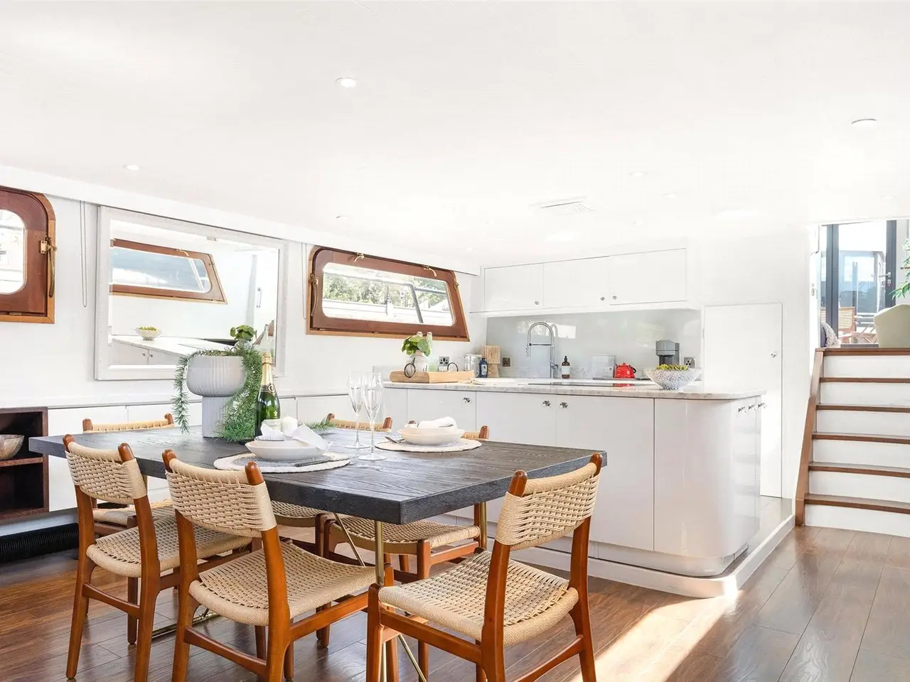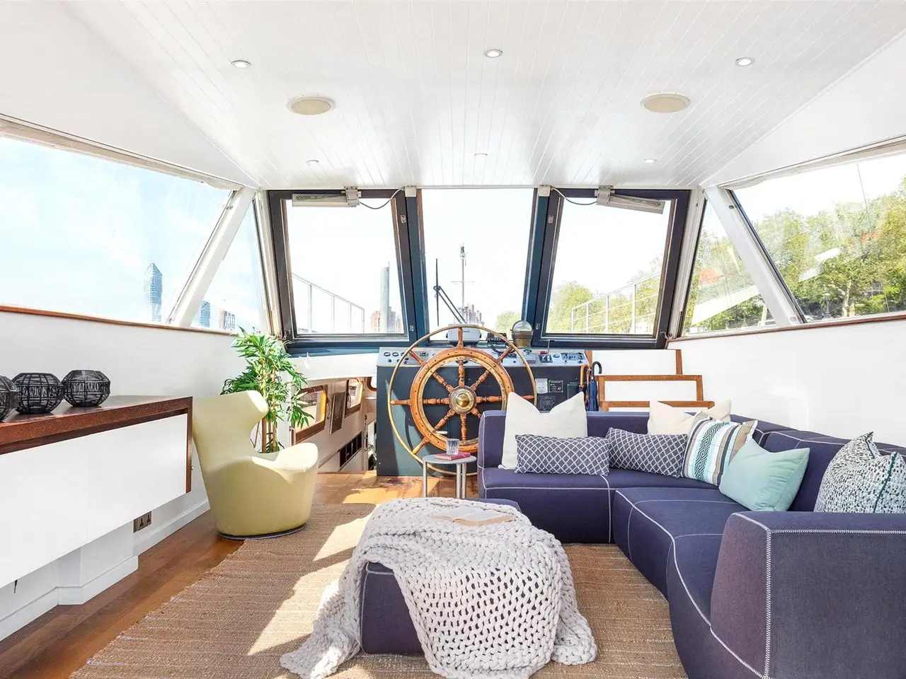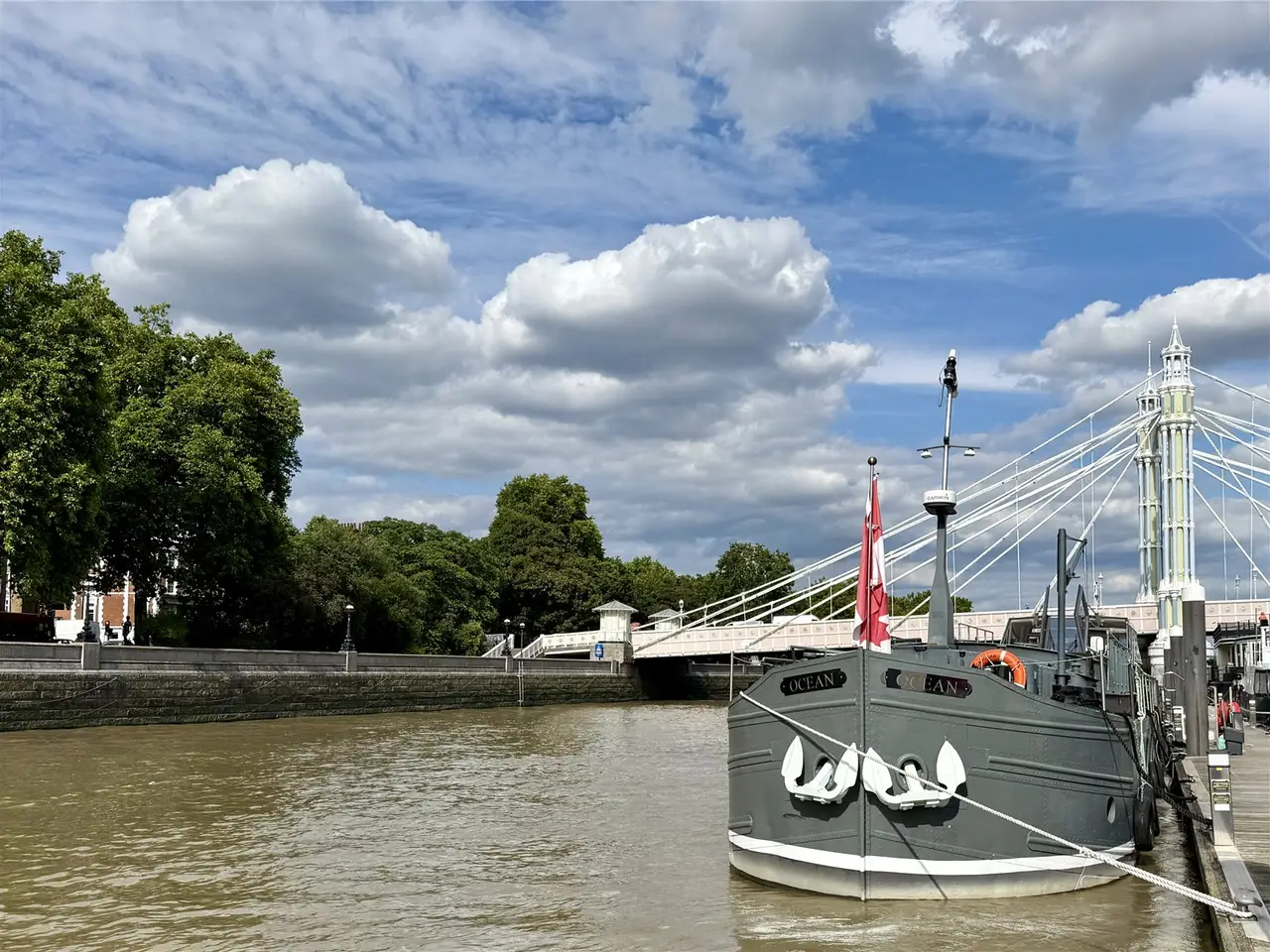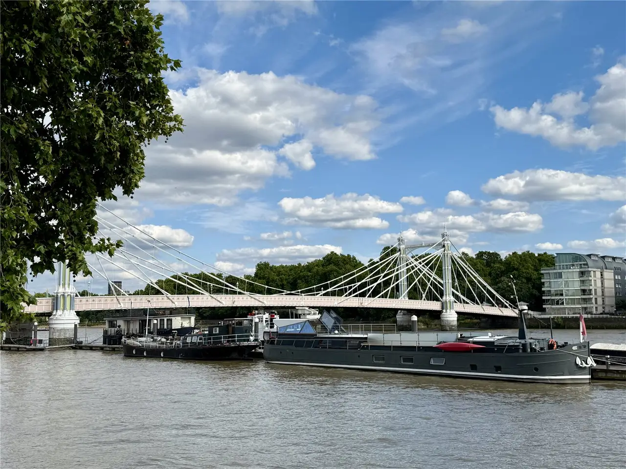 Live the dream on this incredible riverboat moored at the famous Cadogan Pier on the Chelsea Embankment by the stunning Albert Bridge.