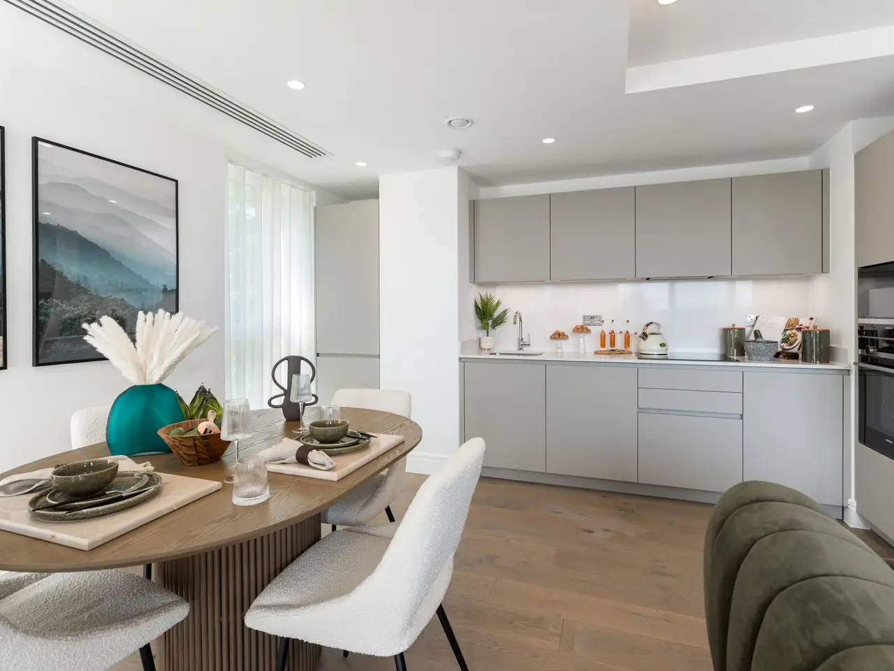 Welcome to Chiswick Green, where effortlessly sophisticated interiors by Millier meet the perfect blend of modern urban living in a beautiful green setting. Spilling onto the park at the heart of Chiswick, this contemporary collection of 1-, 2- and 3-bedroom apartments, penthouses and townhouses is arranged across four elegant buildings. This exceptional two-bedroom apartment on the 7th floor of Empire House showcases sophisticated single-level living across 798 sq ft of thoughtfully designed space, complemented by a 65 sq ft private balcony. The seamlessly designed interior features a spacious open-plan living and kitchen area that flows effortlessly into a contemporary kitchen with integrated appliances and provides access to the private balcony. The luxurious master bedroom includes fitted wardrobes and a sumptuous en-suite bathroom, while the well-proportioned second bedroom offers flexible living options. A main bathroom serves the second bedroom, and additional storage ensure practical modern living. The private balcony creates an ideal indoor-outdoor connection for relaxation and entertaining. Developed by Great Marlborough Estates, this award-winning development features apartments with elegant interior palettes complemented by high specifications of natural finishes and tactile detailing. Each home includes integrated Siemens appliances and private balconies or terraces. Residents benefit from a beautifully decorated entrance lobby with dedicated concierge service on the ground floor of Empire House, plus access to communal roof terraces. Four spacious penthouses with wraparound terraces sit atop Empire House, boasting sublime, uninterrupted views across London, including the City skyline and Canary Wharf. Two additional penthouses in Stoll House also feature private terraces and exacting design. The exclusive terrace of four contemporary family homes tucked behind Chiswick High Road provides flexible living over three storeys with private roof gardens, and parking is available for selected units. Perfectly positioned for connectivity, a short walk takes you to Chiswick Park Station (3-minute walk) for Underground services. Alternatively, choose Overground or Mainline trains from Gunnersbury Station (10-minute walk) or Chiswick Station (8-minute cycle). Enquire now to arrange a private viewing. Service Charge: estimated £4.88 per sq. ft. per annum Ground Rent: Peppercorn Tenure: 999 year leasehold