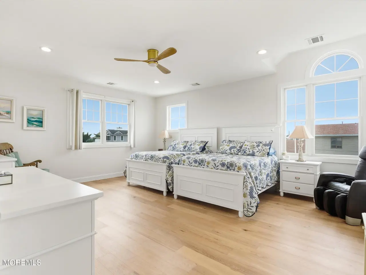 Modern Coastal Retreat in a Sought-After Shore Location Welcome to your dream beach house! A stunning year young Coastal Contemporary home designed for shore living at its finest. Featuring Bermuda Blue Certain Teed Cedar Shake Siding with crisp white trim and charming architectural details, this home captures the timeless elegance of a Nantucket-inspired retreat while offering all the modern comforts you expect. Just one block from the ocean and thoughtfully designed with high-end finishes and a relaxed, beach-inspired aesthetic. Offered fully furnished and perfectly staged, this home is move-in ready for immediate enjoyment. The first level welcomes you with two front entrances leading to a versatile space, ideal for a gym, home office, or recreation area, complete with a full bathroom. On the second level, the heart of the home unfolds in a bright open-concept kitchen and living area that flows seamlessly to the wrap-around covered porch, perfect for entertaining or enjoying the ocean breeze. A spiral staircase connects the main level to the private upper deck, adding a touch of coastal charm. Every detail, from the elegant finishes to the coastal color palette, enhances the serene shore vibe. The upper level features a spacious ensuite primary bedroom, offering a private retreat, along with two additional bedrooms that share an adjoining bath ideal for guests or family. Finally, ascend to the top deck where panoramic ocean and bay views await the perfect spot to watch sunrises and sunsets in stunning color. Combining luxury, comfort, and coastal charm, this home embodies the best of Jersey Shore living just steps from the sand, shops, and dining. Be sure to watch the video to capture the true essence of this magnificent home!
