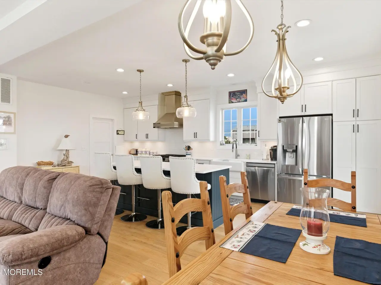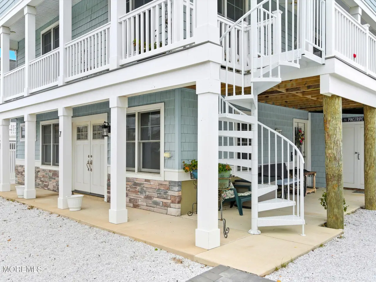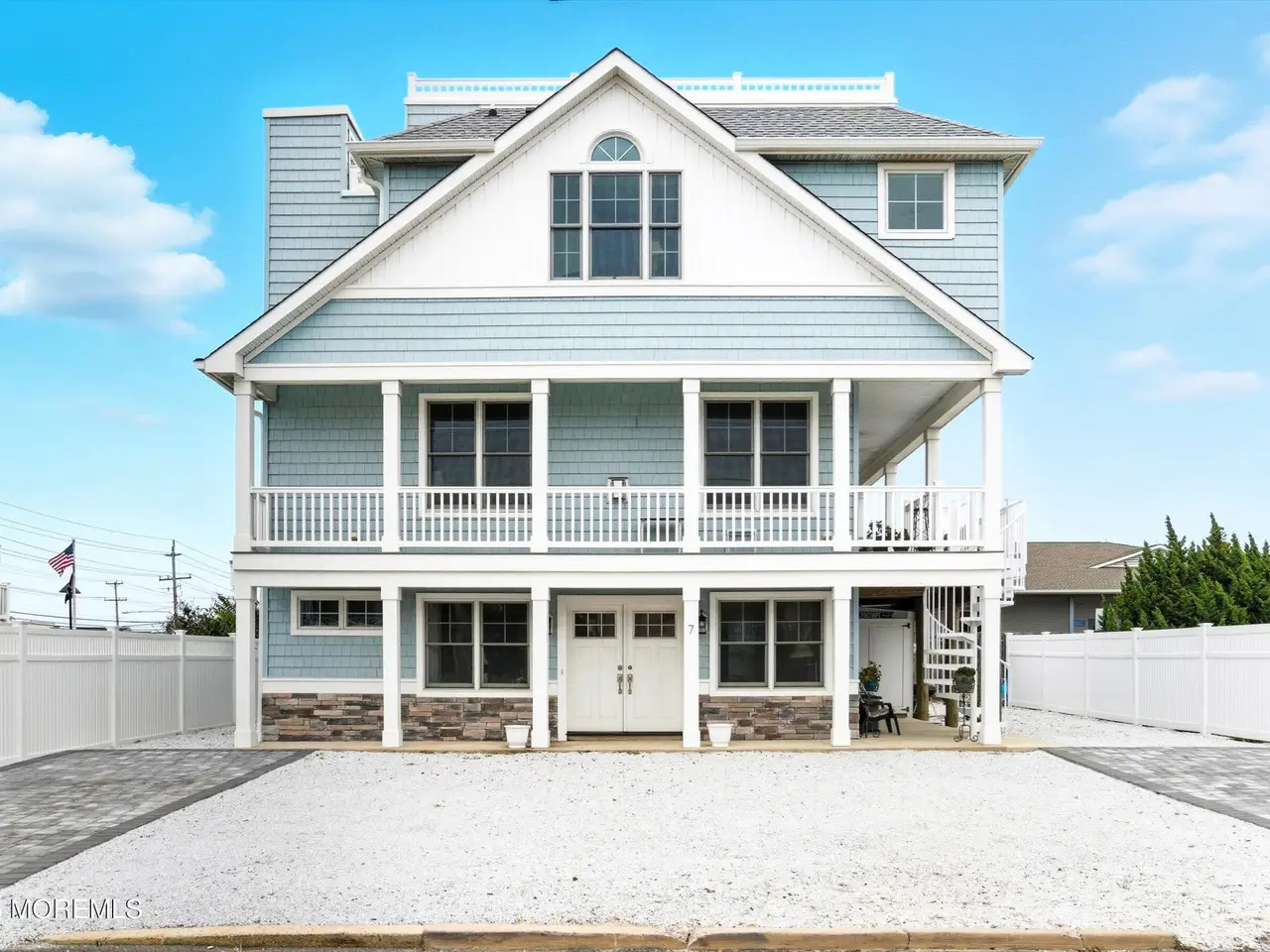 Modern Coastal Retreat in a Sought-After Shore Location Welcome to your dream beach house! A stunning year young Coastal Contemporary home designed for shore living at its finest. Featuring Bermuda Blue Certain Teed Cedar Shake Siding with crisp white trim and charming architectural details, this home captures the timeless elegance of a Nantucket-inspired retreat while offering all the modern comforts you expect. Just one block from the ocean and thoughtfully designed with high-end finishes and a relaxed, beach-inspired aesthetic. Offered fully furnished and perfectly staged, this home is move-in ready for immediate enjoyment. The first level welcomes you with two front entrances leading to a versatile space, ideal for a gym, home office, or recreation area, complete with a full bathro On the second level, the heart of the home unfolds in a bright open-concept kitchen and living area that flows seamlessly to the wrap-around covered porch, perfect for entertaining or enjoying the ocean breeze. A spiral staircase connects the main level to the private upper deck, adding a touch of coastal charm. Every detail, from the elegant finishes to the coastal color palette, enhances the serene shore vibe. The upper level features a spacious ensuite primary bedroom, offering a private retreat, along with two additional bedrooms that share an adjoining bath ideal for guests or family. Finally, ascend to the top deck where panoramic ocean and bay views await the perfect spot to watch sunrises and sunsets in stunning color. Combining luxury, comfort, and coastal charm, this home embodies the best of Jersey Shore living just steps from the sand, shops, and dining. Be sure to watch the video to capture the true essence of this magnificent home!