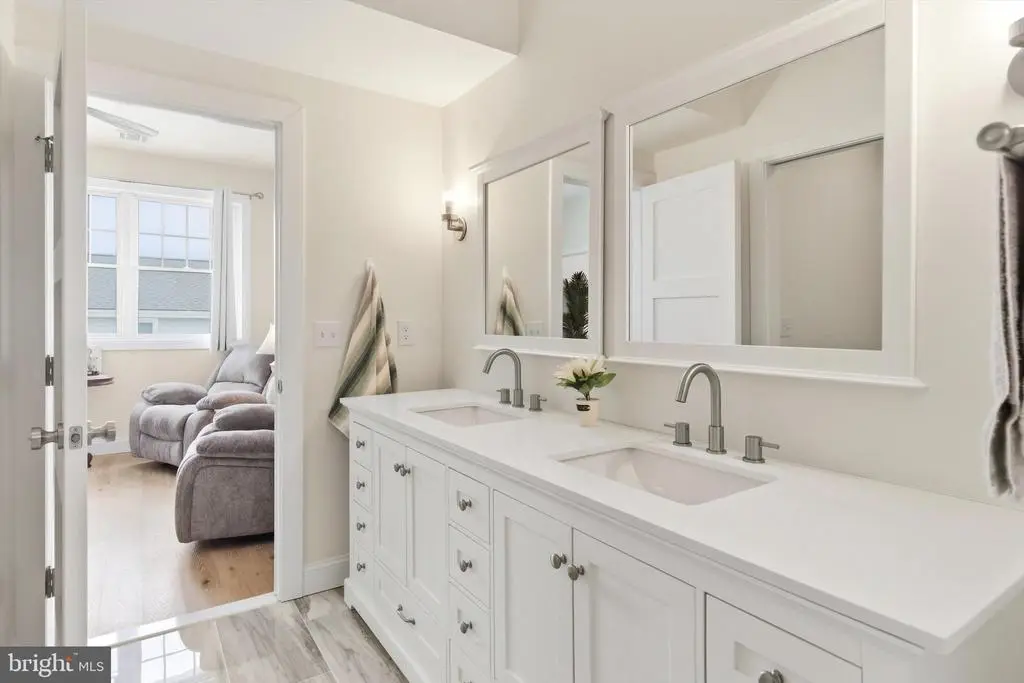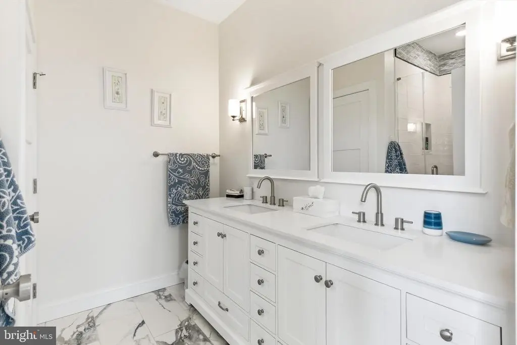 Modern Coastal Retreat in a Sought-After Shore Location Welcome to your dream beach house! A stunning year young Coastal Contemporary home designed for shore living at its finest. Featuring Bermuda Blue Certain Teed Cedar Shake Siding with crisp white trim and charming architectural details, this home captures the timeless elegance of a Nantucket-inspired retreat while offering all the modern comforts you expect. Just one block from the ocean and thoughtfully designed with high-end finishes and a relaxed, beach-inspired aesthetic. Offered fully furnished and perfectly staged, this home is move-in ready for immediate enjoyment. The first level welcomes you with two front entrances leading to a versatile space, ideal for a gym, home office, or recreation area, complete with a full bathroom. On the second level, the heart of the home unfolds in a bright open-concept kitchen and living area that flows seamlessly to the wrap-around covered porch, perfect for entertaining or enjoying the ocean breeze. A spiral staircase connects the main level to the private upper deck, adding a touch of coastal charm. Every detail, from the elegant finishes to the coastal color palette, enhances the serene shore vibe. The upper level features a spacious ensuite primary bedroom, offering a private retreat, along with two additional bedrooms that share an adjoining bath ideal for guests or family. Finally, ascend to the top deck where panoramic ocean and bay views await the perfect spot to watch sunrises and sunsets in stunning color. Combining luxury, comfort, and coastal charm, this home embodies the best of Jersey Shore living just steps from the sand, shops, and dining. Be sure to watch the video to capture the true essence of this magnificent home!