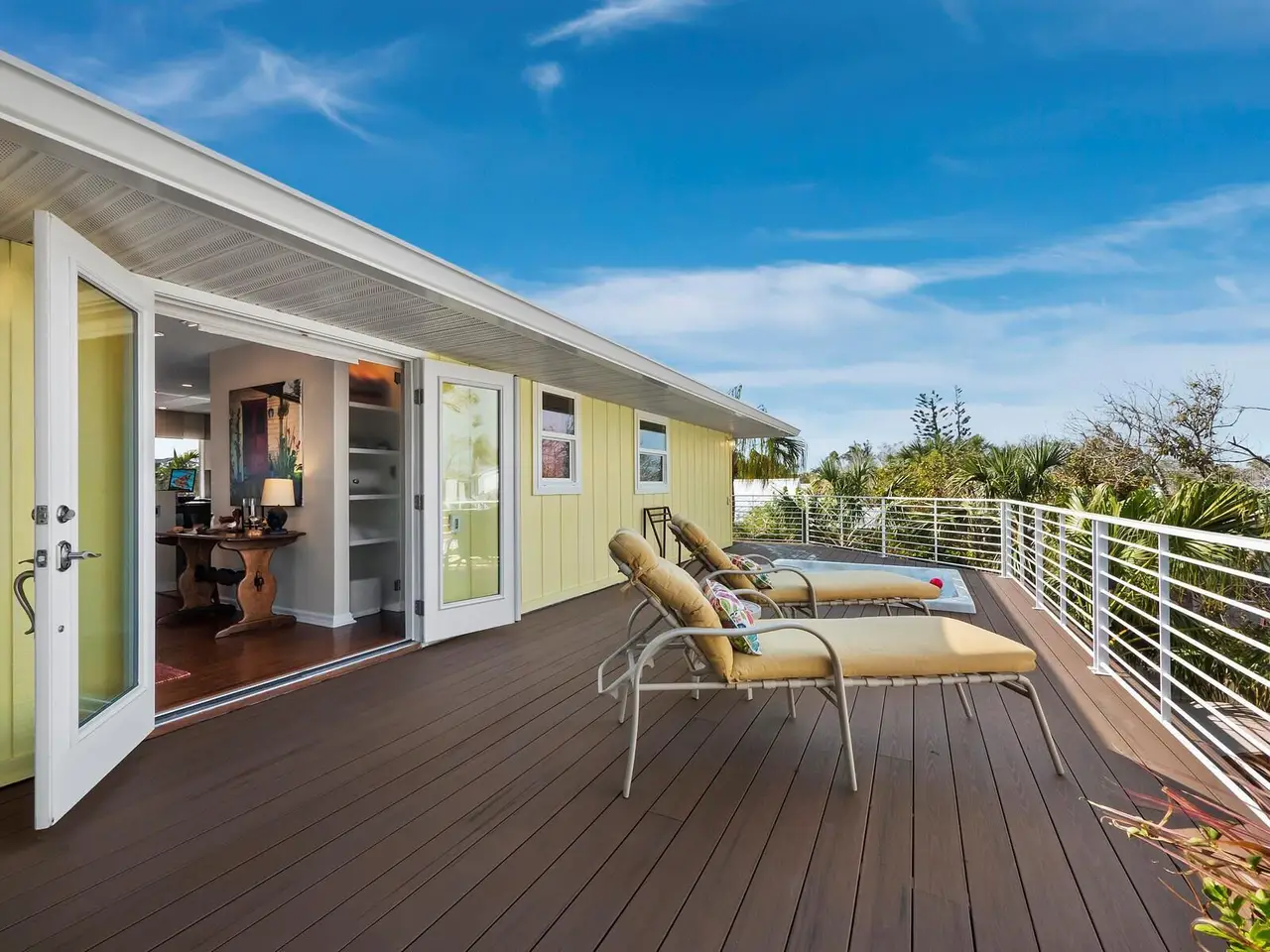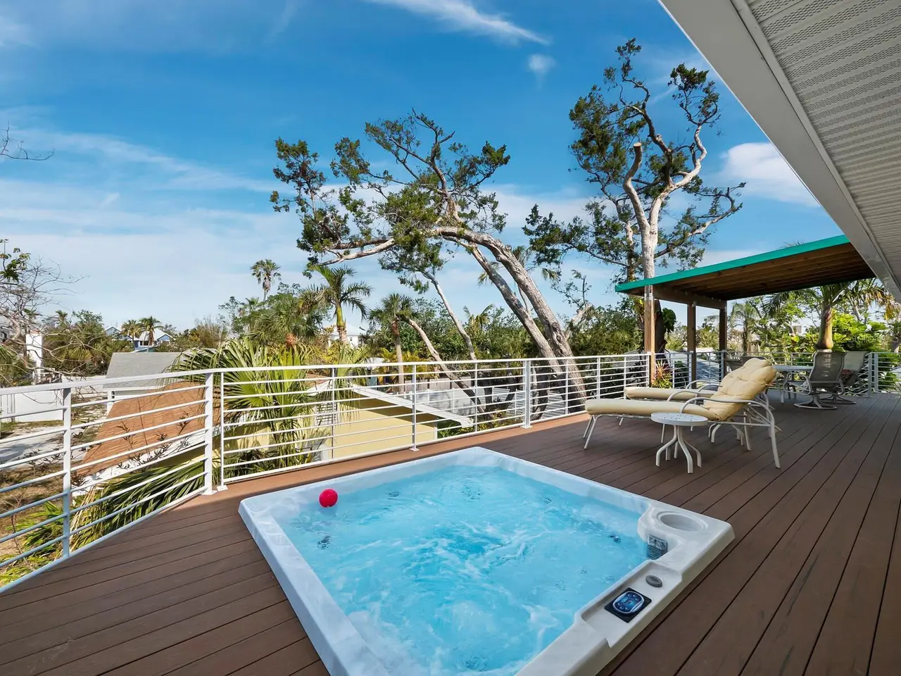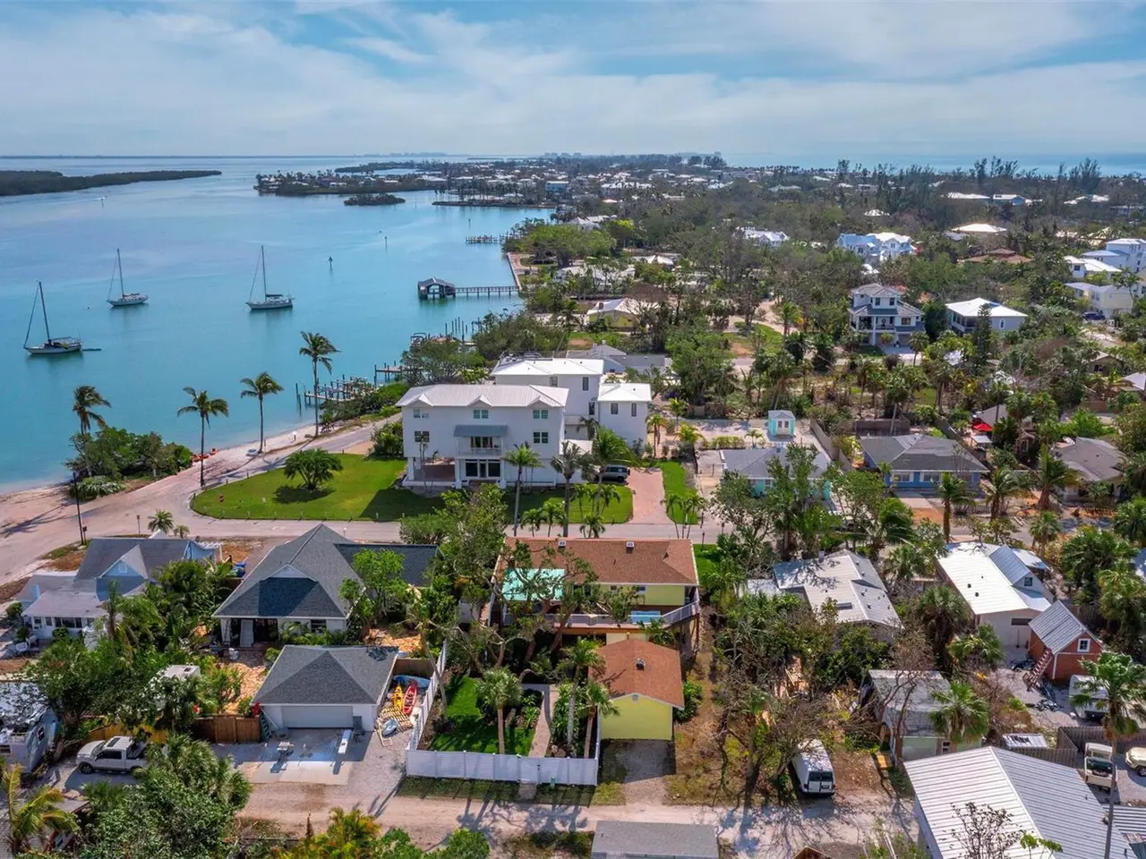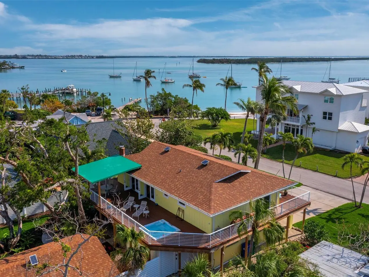 HUGH PRICE REDUCTION!!!Welcome to historic Longbeach Village, the first neighborhood, established on Longboat Key in 1885. As you enter The Village you will notice a variety of architectural home styles from the 1930s to the present day reflecting the diversity of the folks who live here. This wonderful home has stunning water views of Sarasota Bay, The Village harbor with its small public beach, the town dock, and the boat ramp all of which serve as community gathering spots to launch your boat, kayaks, canoes, and view sunrises, sunsets, dolphins, manatees, and aquatic birds. Pelicans love this placid harbor. Capture and immerse yourself in these magical surroundings from the spacious elevated second level front deck. The open concept great room with the three sets of French doors and seven windows is flooded with natural light. The kitchen offers bay views and will be the envy of amateur as well as gourmet cooks. Here you will enjoy a Sub-Zero refrigerator, two drawer Sub Zero freezer, Wolf 5 burner range, large Wolf oven, Miele steam oven, Tanzanian granite counter tops, custom German cabinets, large and deep storage drawers, workstation, and travertine floors. The great room includes an abundance of recessed lighting and a free-standing wood burning fireplace on a raised hearth as well as a dining area with a distinctive wood table, benches, and chairs. The primary bedroom has water views, access to the wrap around deck through sliding glass doors, and a large walk-in closet, en-suite bathroom with striking wood vanity and marble-like glass sink and dual rainfall shower heads. The powder room off the great room has high end fixtures. The guest bedroom has twin beds, a ceiling fan and rolling shades to keep the light out. The adjoining room could function as an office, art studio, or an extra bedroom. The bathroom has a shower stall and a walk-in closet. The oversized two car garage has hurricane reinforced doors, windows, a work bench, ample shelving throughout and peg boards for tools. A composite “wood� deck that is impervious to rot and insects, surrounds the entire house creating massive outdoor living space. The back deck, overlooking a beautifully landscaped yard, has a heated hot tub, a dining area which has a new awning, and a staircase leading to the backyard, guest house/studio, and new two-person barrel sauna in 2023. The guest house/studio was totally renovated by current owners in 2015 with new Hardi Board siding and insulation. It could also serve as a recreation room with pool table etc. All windows throughout the structures are hurricane compliant. Meticulous and impeccable pride in ownership can be found in every detail throughout! From this lovely home you can walk to the beach, five restaurants, and Whitney Beach shopping center. The Centre Shops with dining, boutiques, hair salon, UPS store are about three miles south. Bradenton Beach, with its multiple attractions, is less than 1 mile north. Famous St. Armands Circle is eleven miles south. The Villagers meet once a month from October to April for socializing and gathering updates on LBK activities. Offered furnished, completely outfitted, and move in ready excluding original artwork and some personal items.