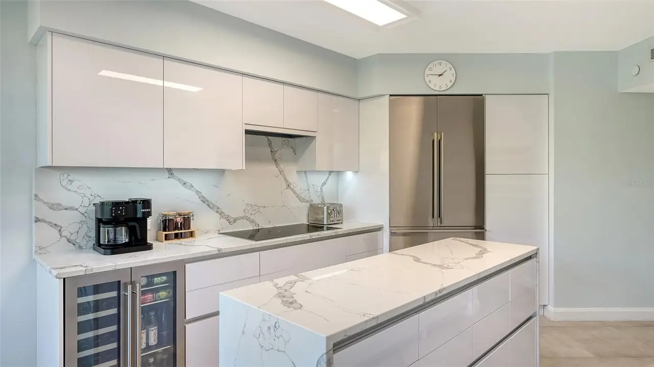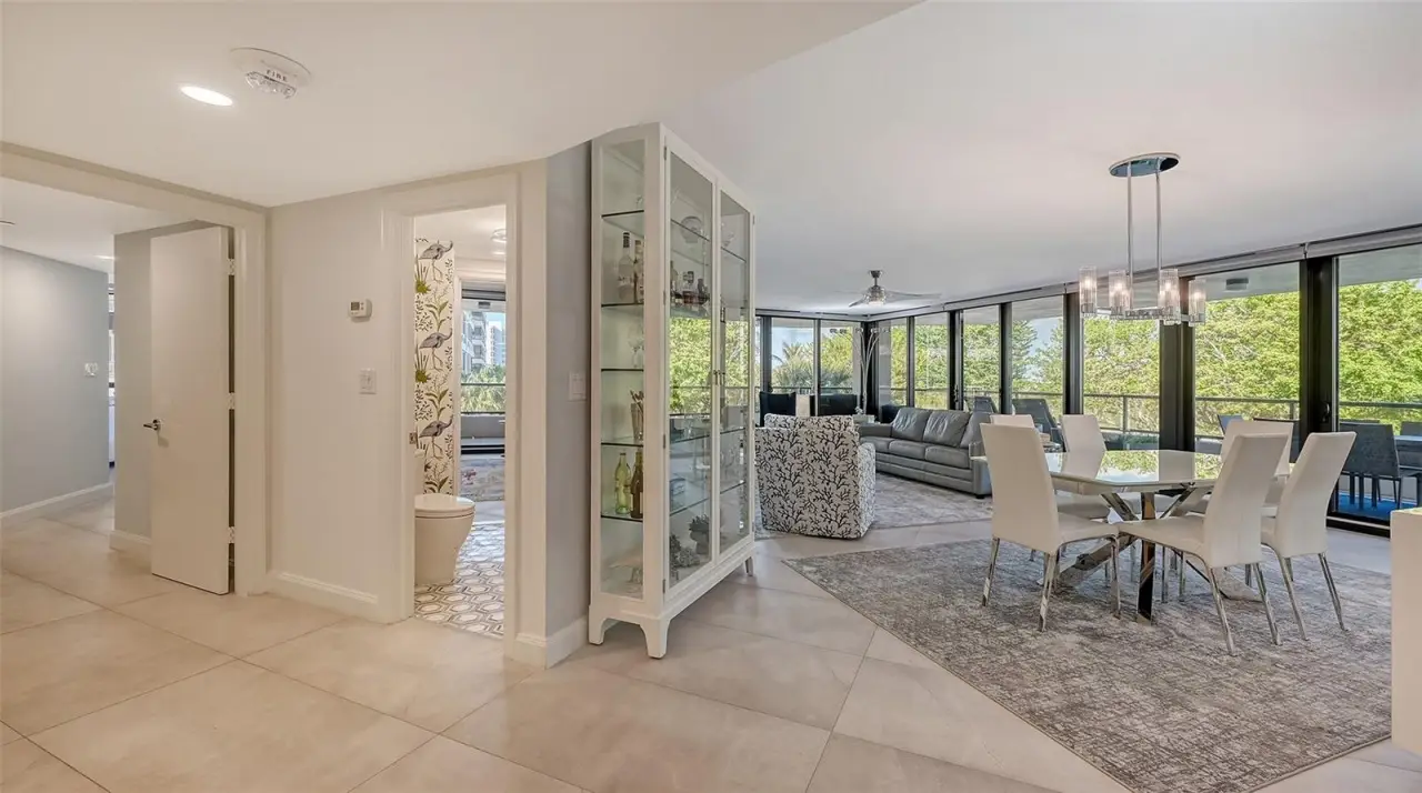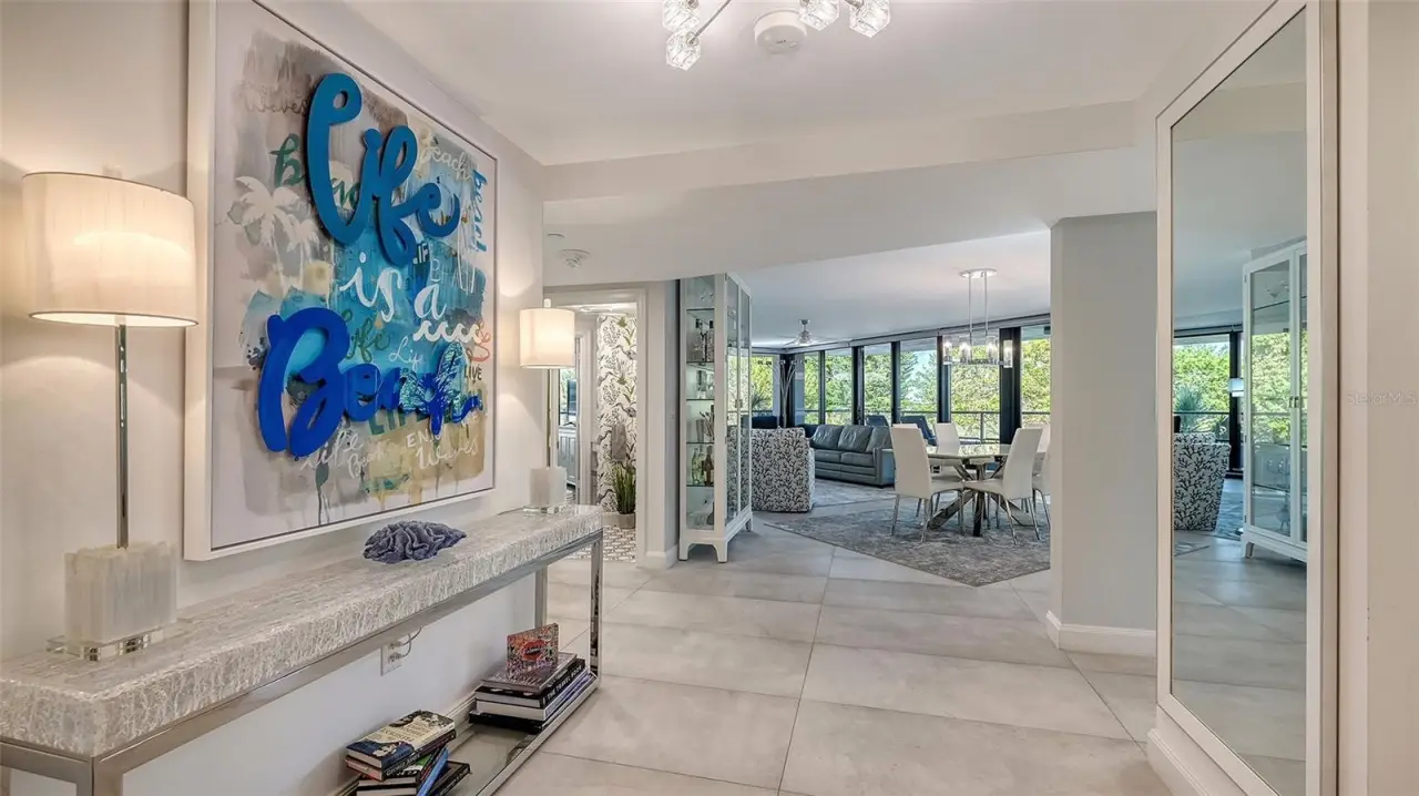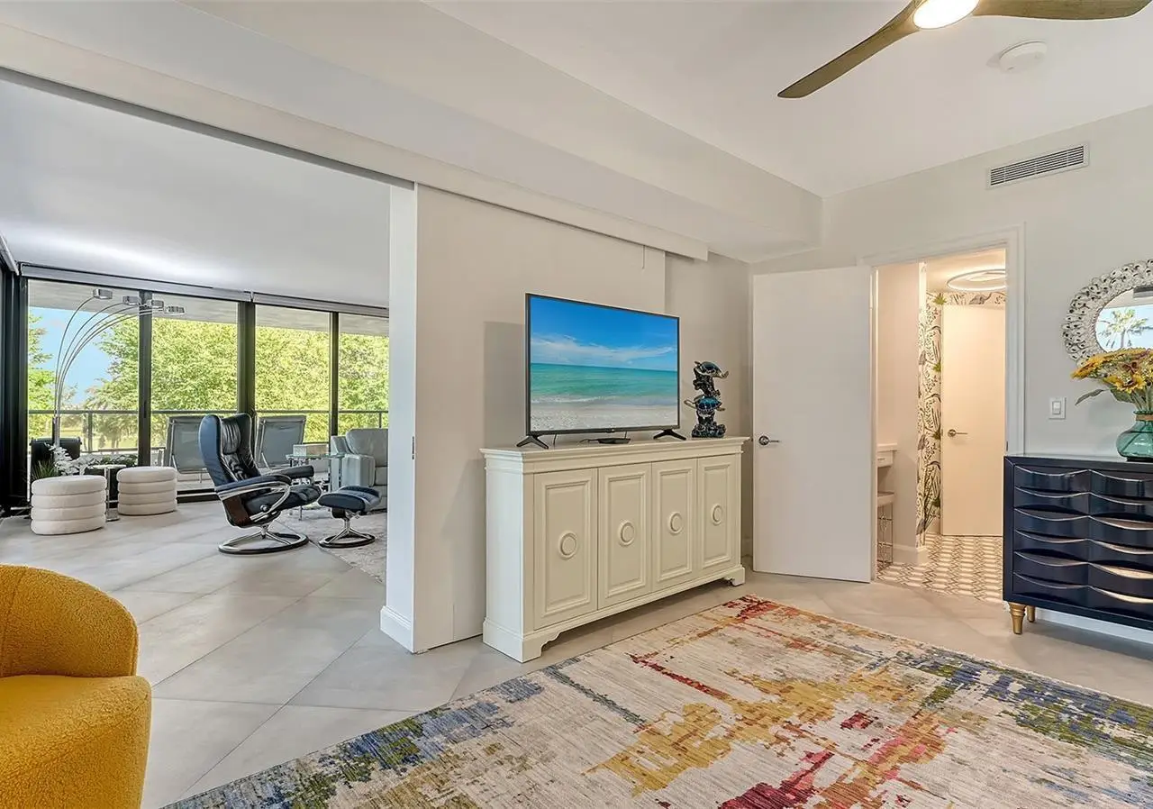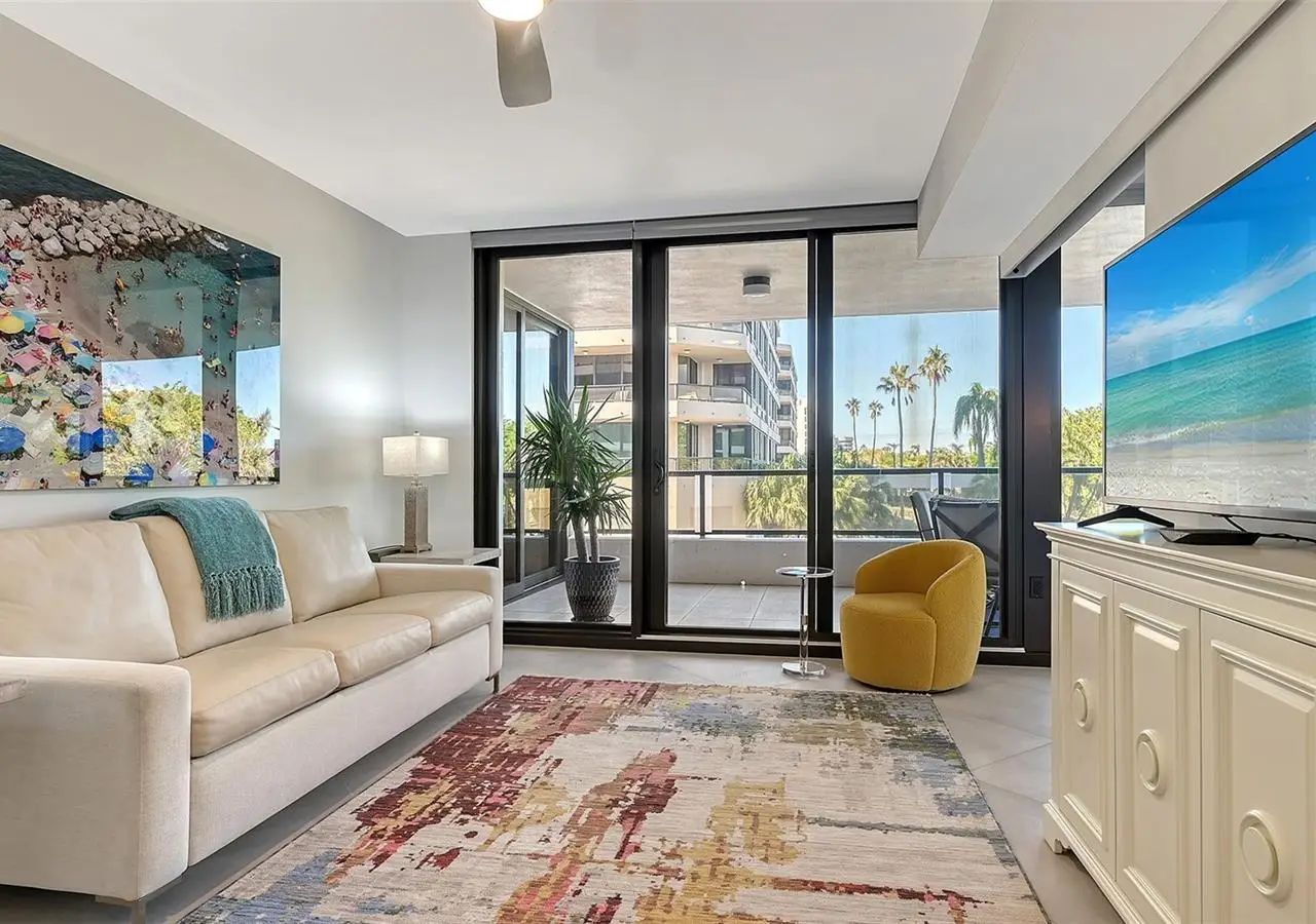 Experience the pinnacle of Gulf Coast living at The Sanctuary, nestled behind the gates of the prestigious Longboat Key Club and Resort on Longboat Key. This exquisitely remodeled three bedroom, three bath property offers a one-of-a-kind living experience with contemporary flair. Enjoy breathtaking, panoramic views of the Longboat Key Club golf course and the Gulf of Mexico from the expansive wrap-around terrace complete with updated tile and PGT impact sliding doors for added protection. The interior of this luxurious residence features neutral, large format porcelain tile floors throughout exuding a sleek, modern aesthetic. Solar screen window coverings are featured in the kitchen, living room, and 3rd bedroom while the primary and main guest bedroom enjoy the elegance of top-down, bottom-up remote controlled custom Roman shades. The expansive great room serves as the heart of the home, offering breathtaking views of the golf course and sunsets every evening. It features a striking 72-inch linear electric fireplace accompanied by a flat-screen TV mounted on a beautiful ledgestone accent wall. The room seamlessly incorporates a spacious dining and entertaining space to host large family get togethers to intimate parties! The chef's kitchen is a culinary dream featuring an integrated dinette area for casual dining and seamlessly blending style with functionality. It's equipped with high-end Monogram appliances, including a French door refrigerator with an internal water dispenser and a versatile freezer/refrigerator drawer. The Monogram oven boasts air fryer capabilities while the Advantium oven offers a range of cooking functions including microwave and convection options providing ultimate flexibility. Additional premium appliances include a Bosch dishwasher for quiet efficiency, a multi-temperature wine cooler to store your collection, and a JennAir induction cooktop for precise cooking control. This kitchen is designed to cater to both everyday meals and gourmet creations. The primary bedroom is a serene, spa-like retreat featuring stunning views of the Gulf and direct access to the expansive patio providing a seamless connection to the outdoors. The adjoining primary bathroom is designed for relaxation and luxury with custom two faucet, trough sink vanity, a separate 'dressing vanity area, a deep soaking tub, and floor-to-ceiling azure tile surrounding both the tub and the shower. This elegant design creates a soothing, indulgent environment perfect for unwinding and enjoying the tranquil atmosphere. The large custom walk-in closet has an abundance of storage & space. The second bedroom is equally stunning, offering picturesque views of the golf course. The ensuite high-end bath features dual vanities and a spacious walk-in shower adorned with wave-shaped tiles perfectly complementing the chic, beach-inspired design. The third bedroom is enjoyed also as a den. The clever seamless pocket doors create smart privacy & easy access to the 3rd bathroom for the ensuite experience but can quickly be transformed into a cozy bedroom offering both short and long-term guests a comfortable retreat. This unit has a separate garage entry and 2 'Townie' bikes to convey. Relax in the luxury and privacy of 24/7 gated security, heated pool/spa with cabanas, beach chaises and umbrellas, Fitness center, 4 Har-Tru tennis courts, Resident only clubhouse for social events or fun card games, it's all here... Perfection in Paradise, move-in ready.